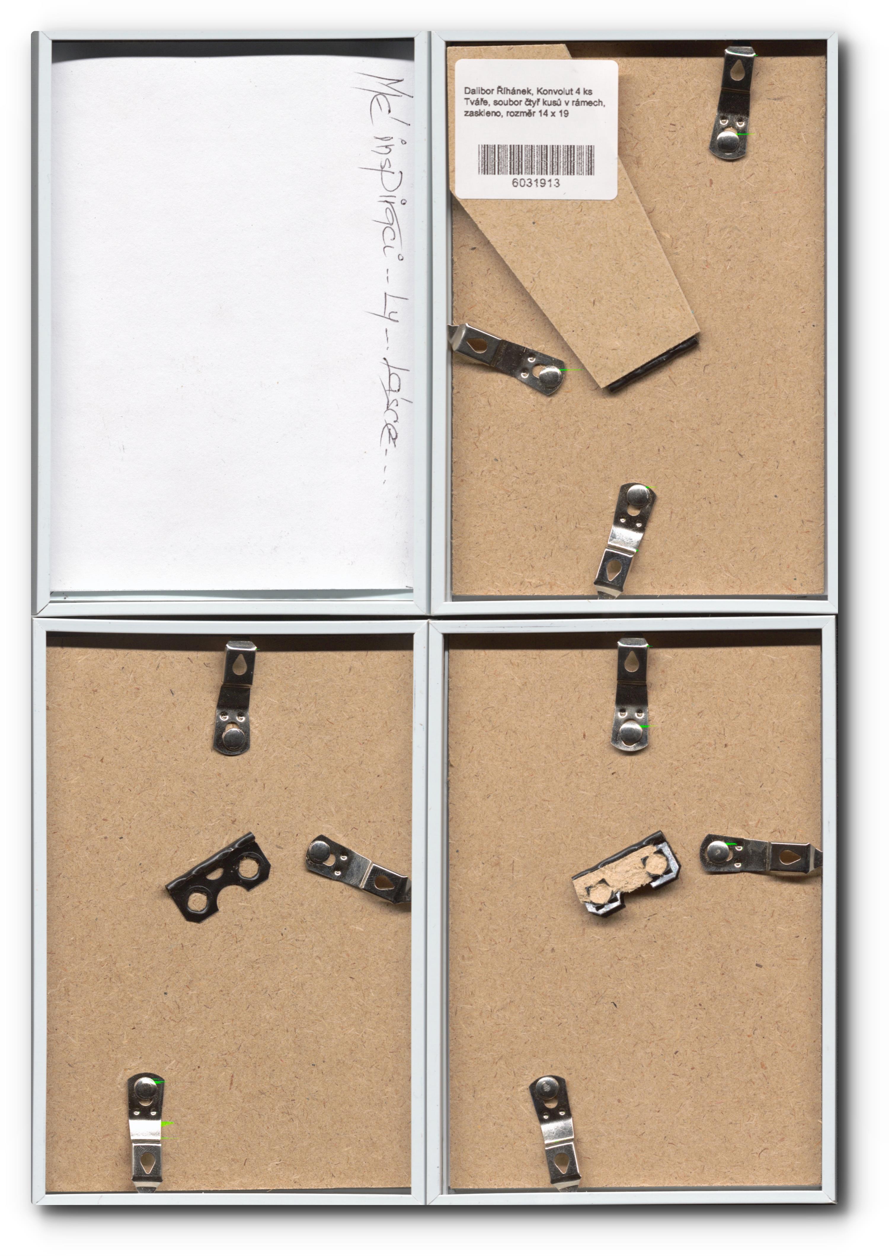 soubor čtyř kusů v rámech, zaskleno