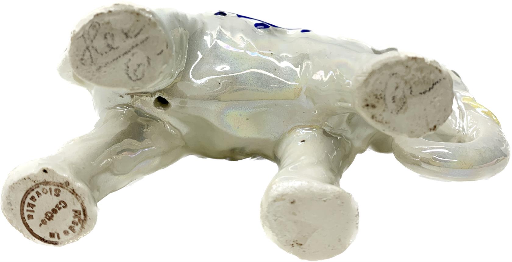 Značeno vespod, porcelán s perleťovou glazurou.