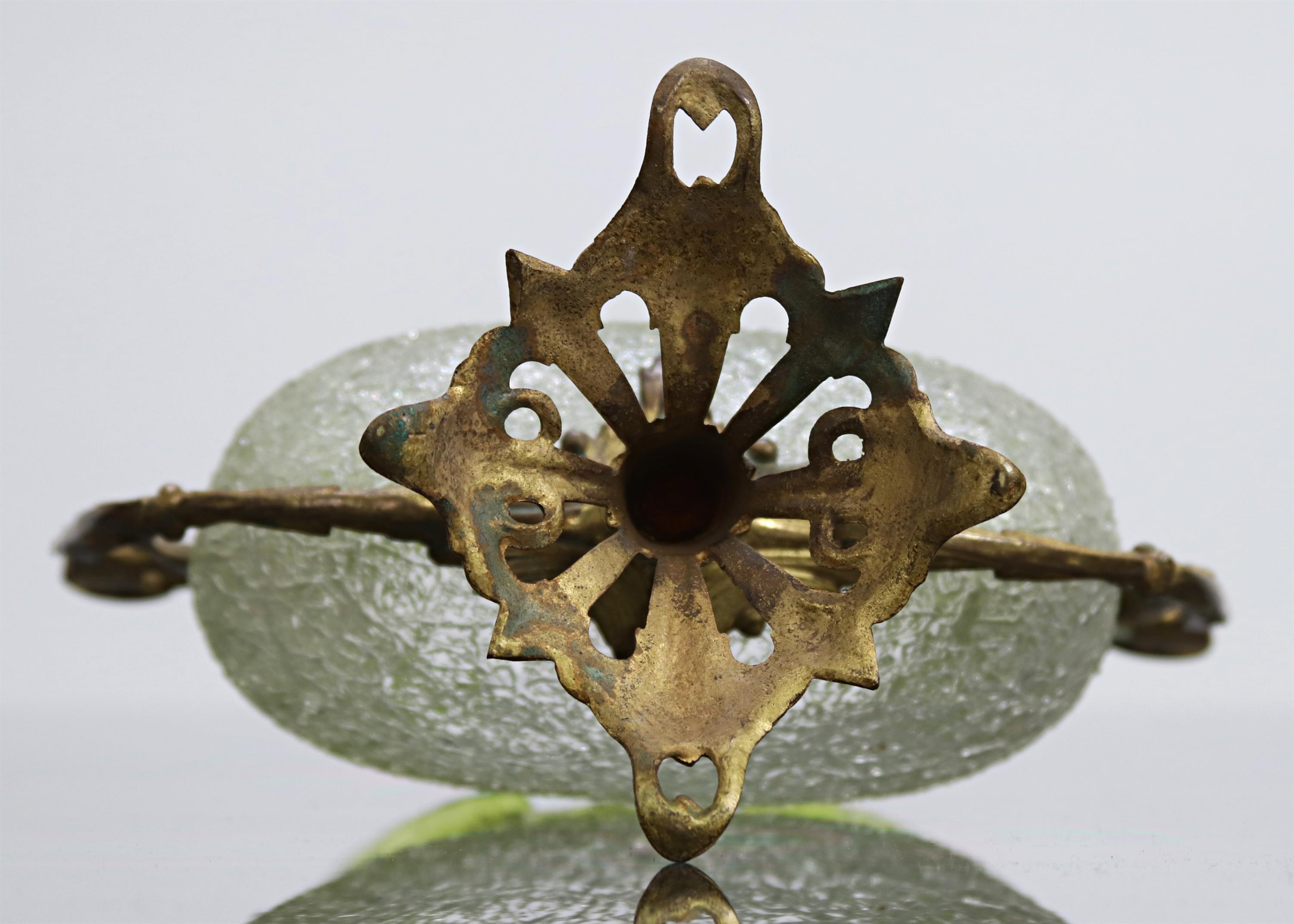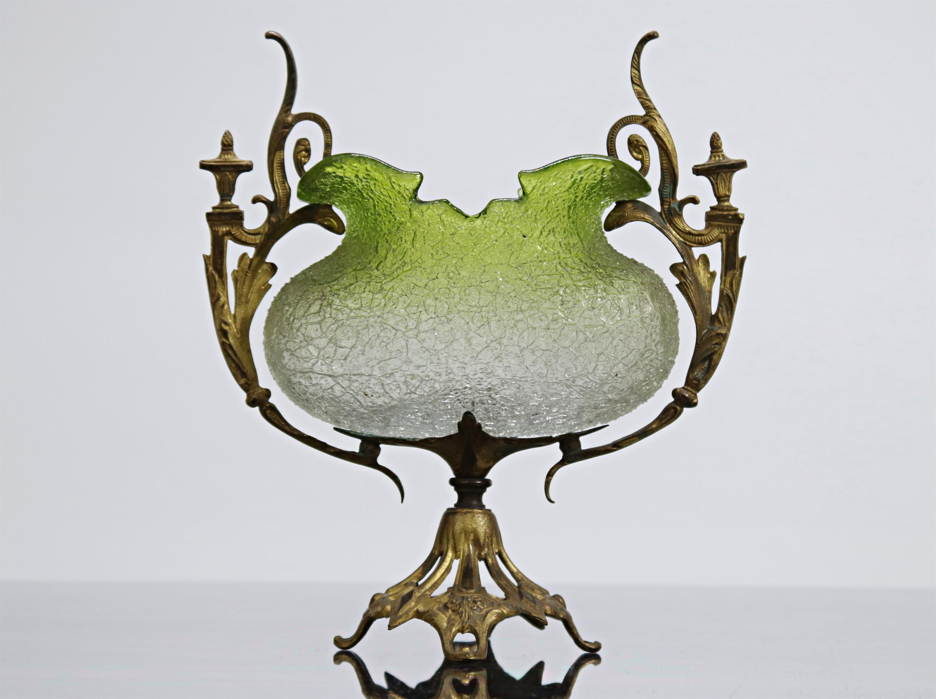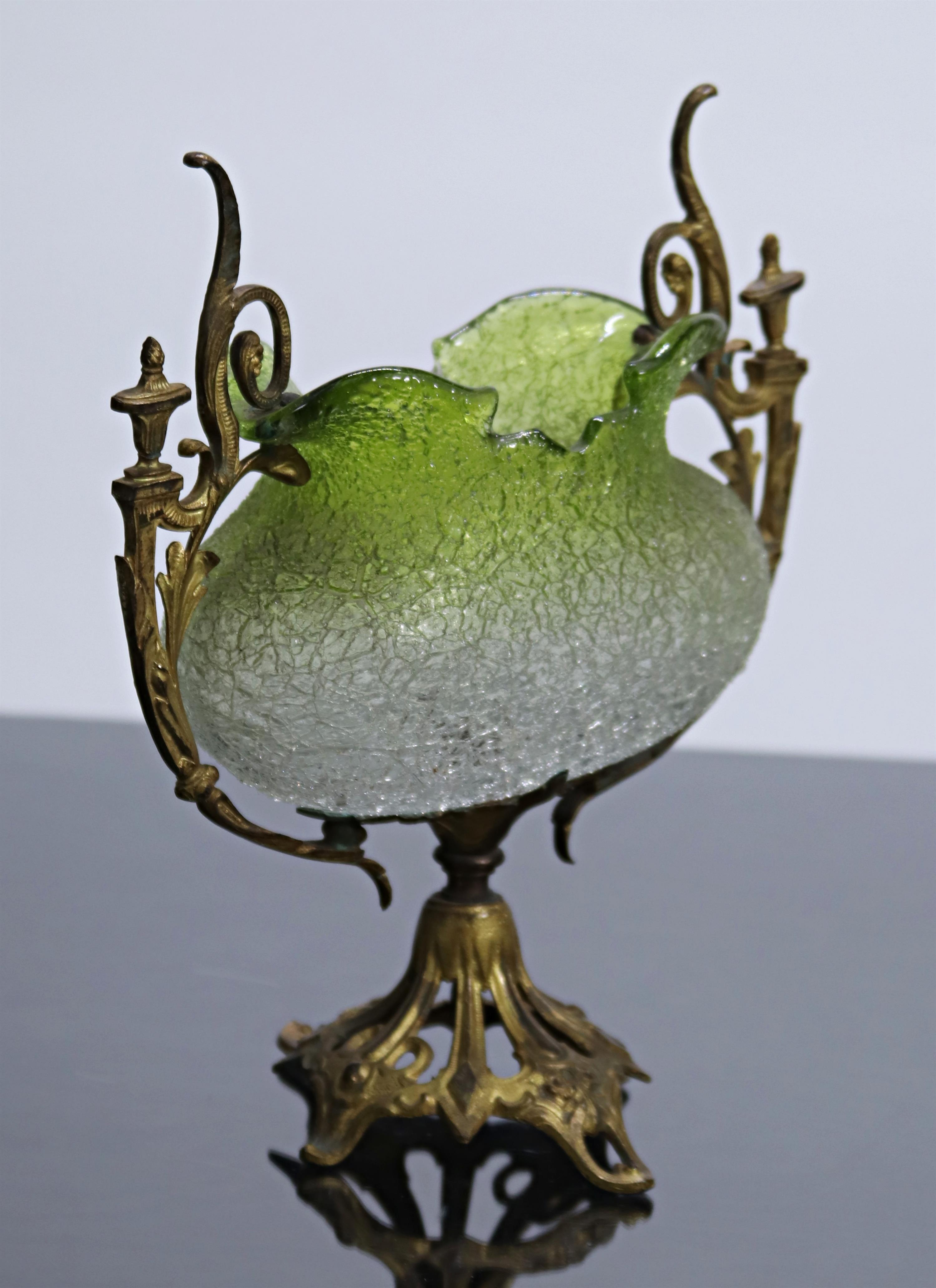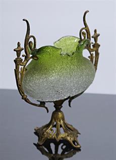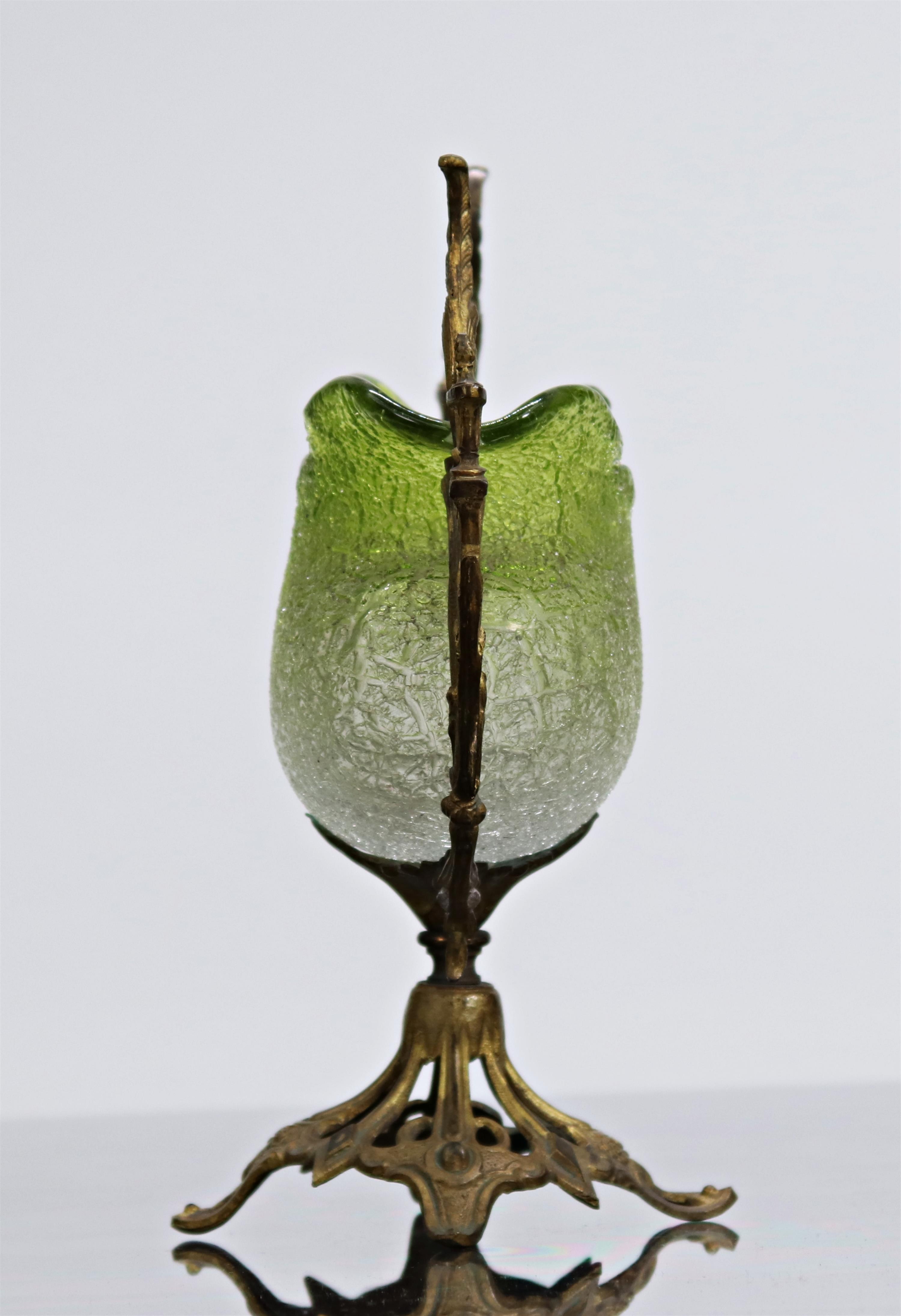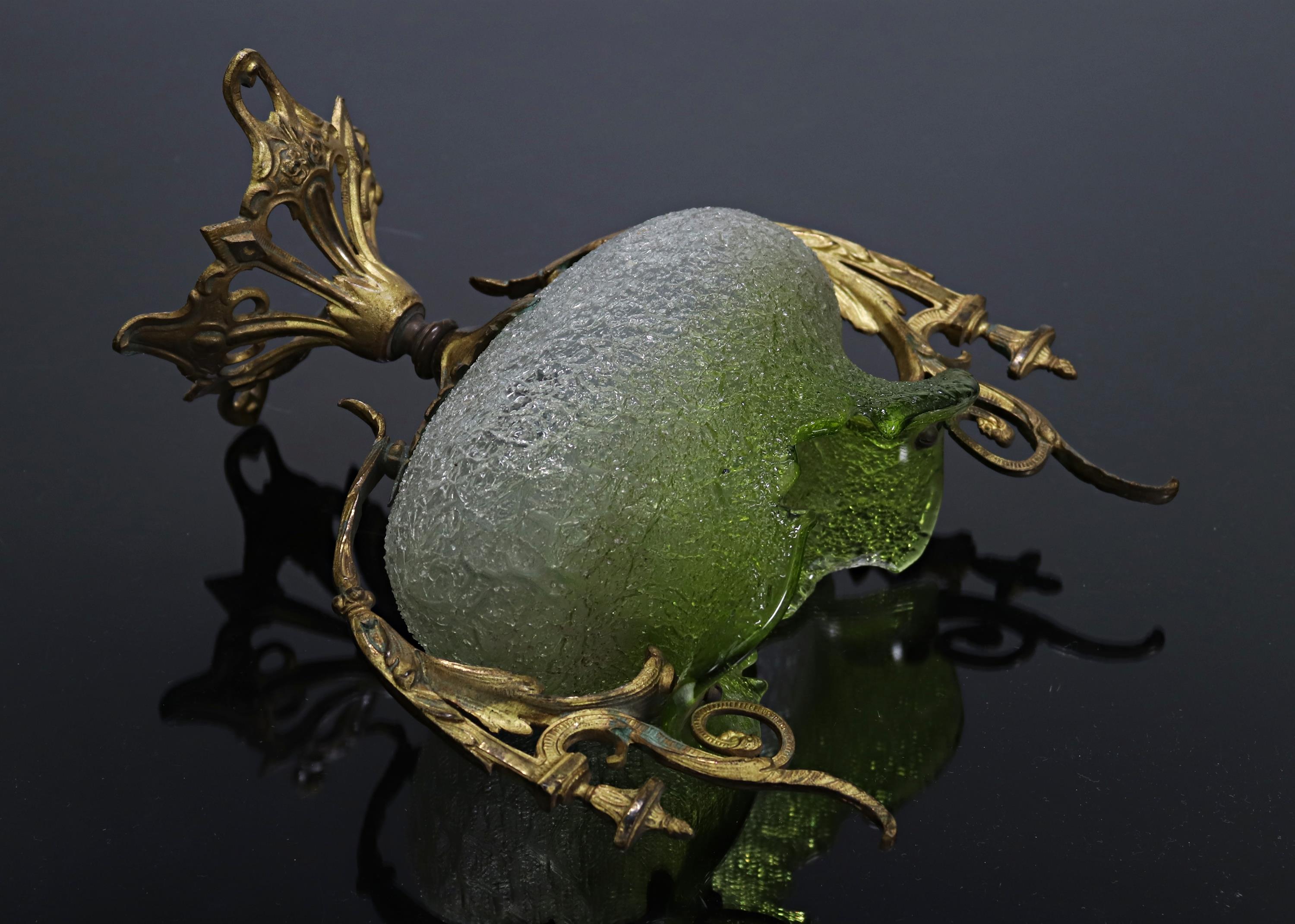 Zelené sbíhavé sklo, bronzová dekorovaná montáž s patkou