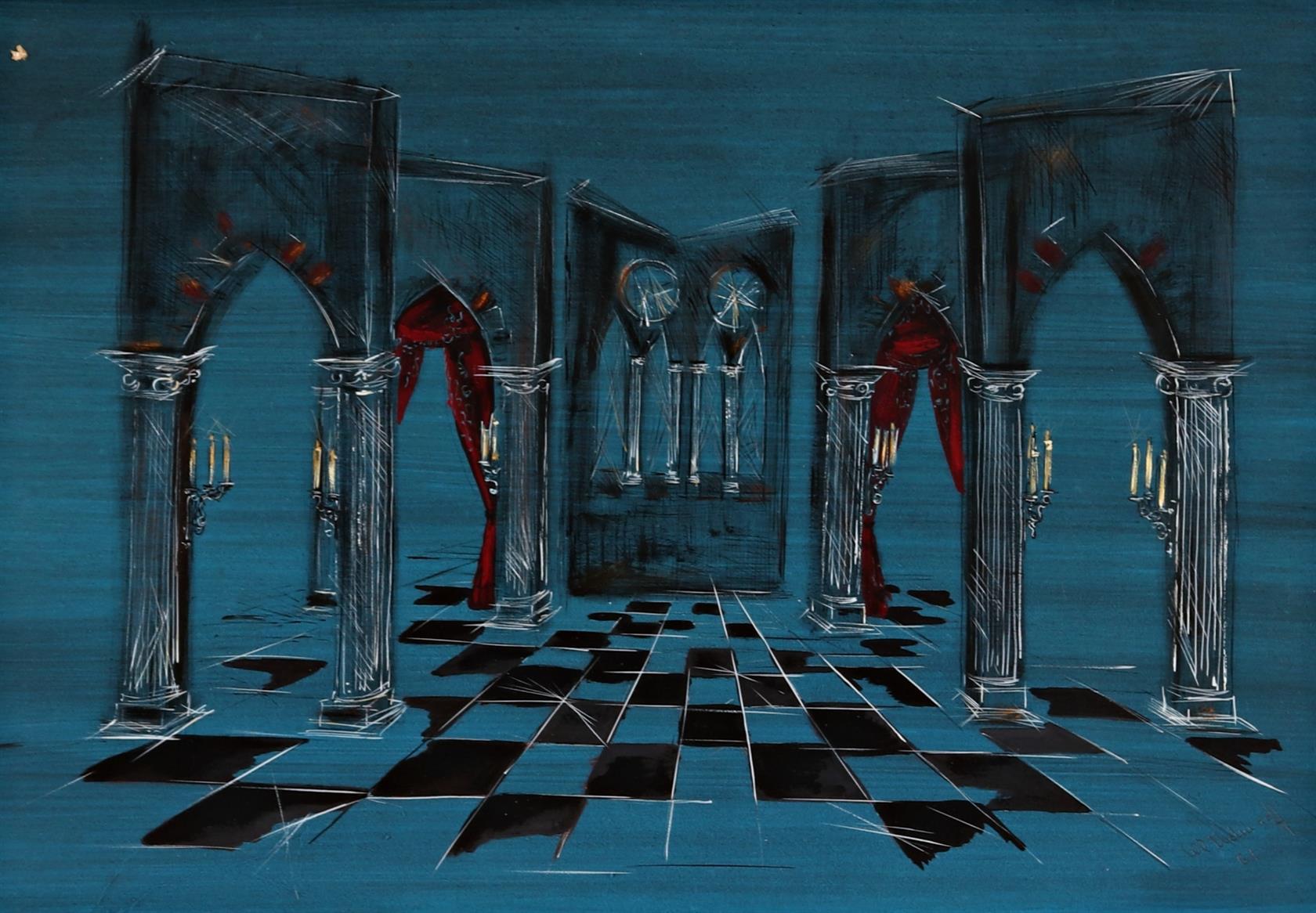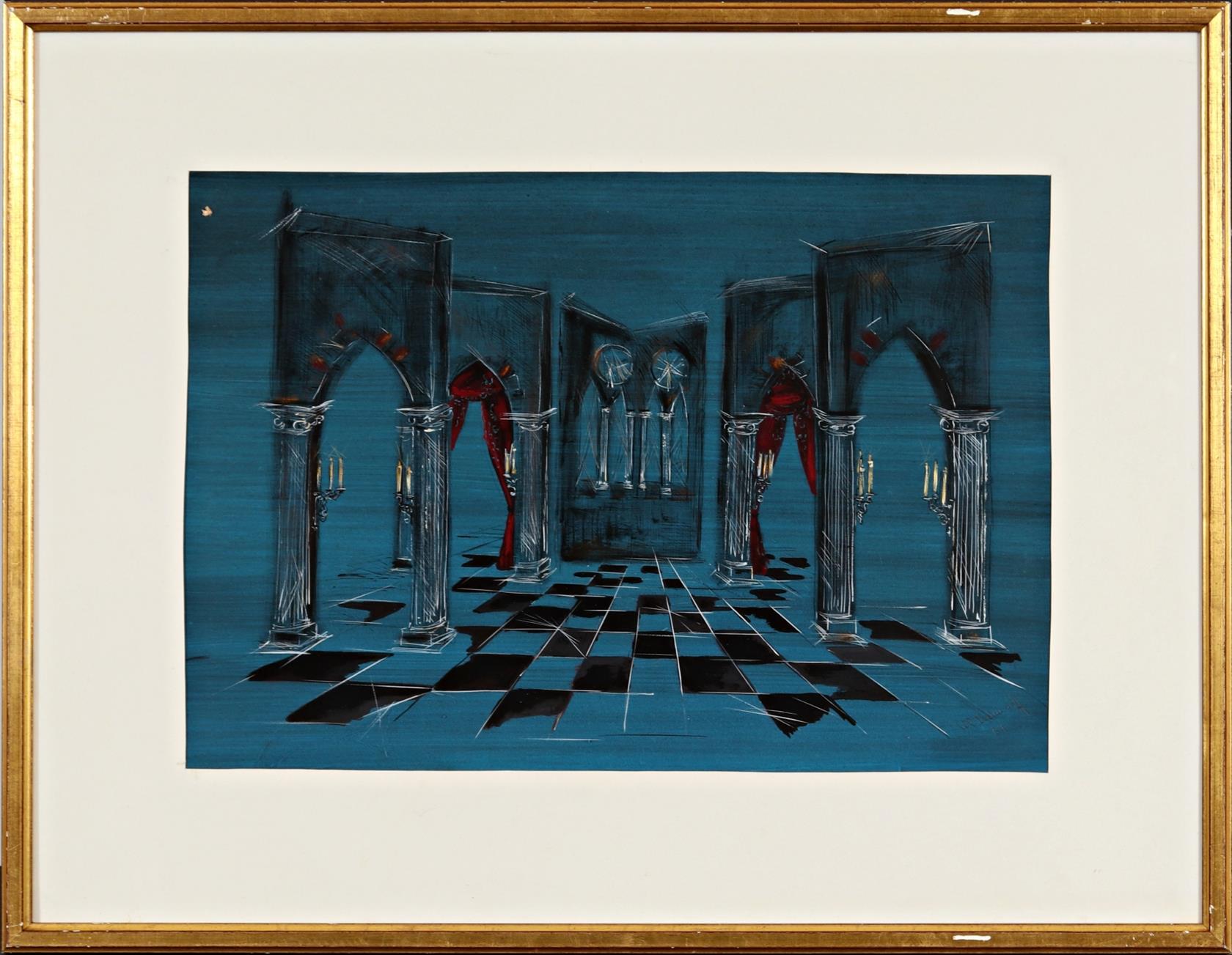 Signováno a datováno vpravo dole, návrh na divadelní inscenaci, paspartováno, rámováno, zaskleno