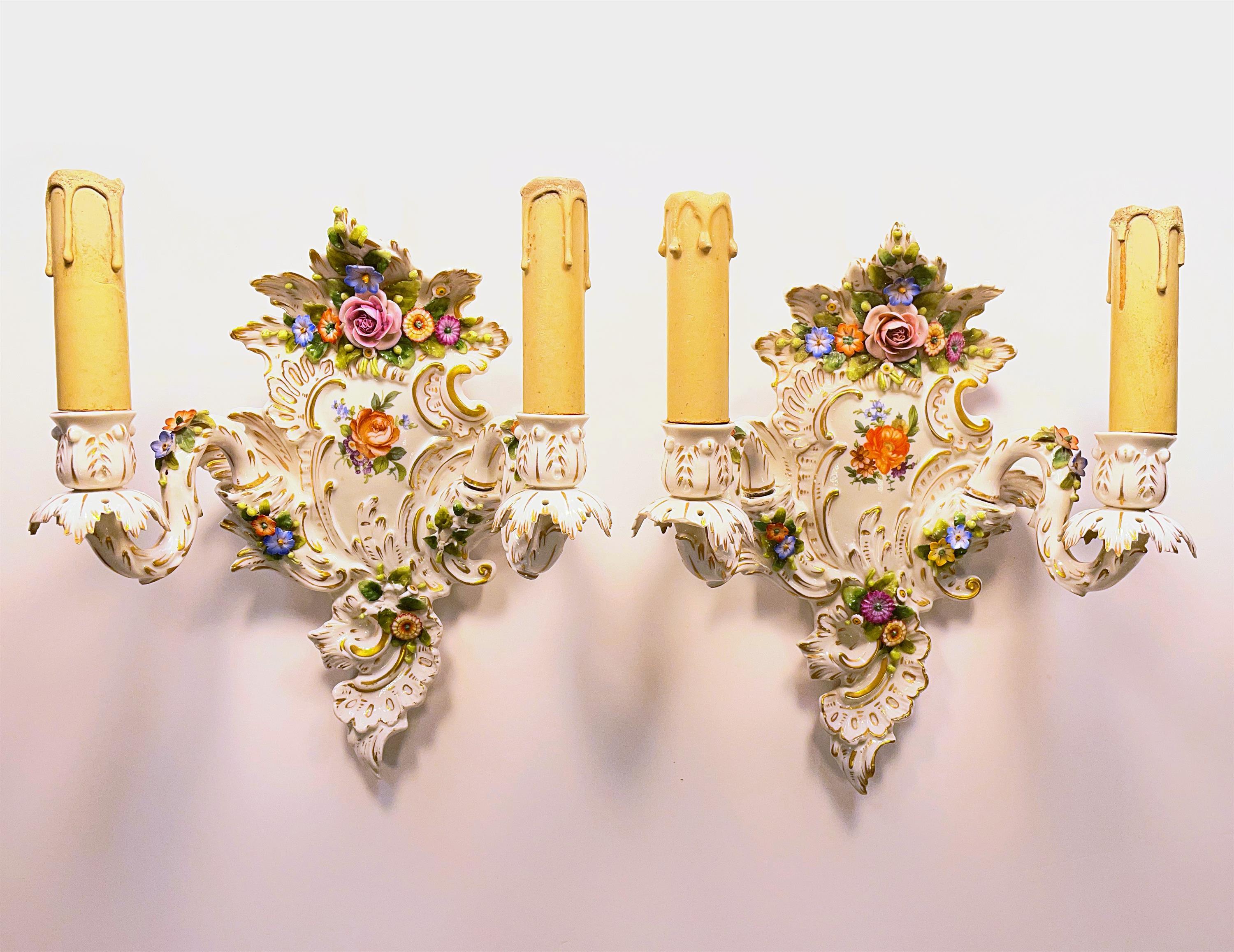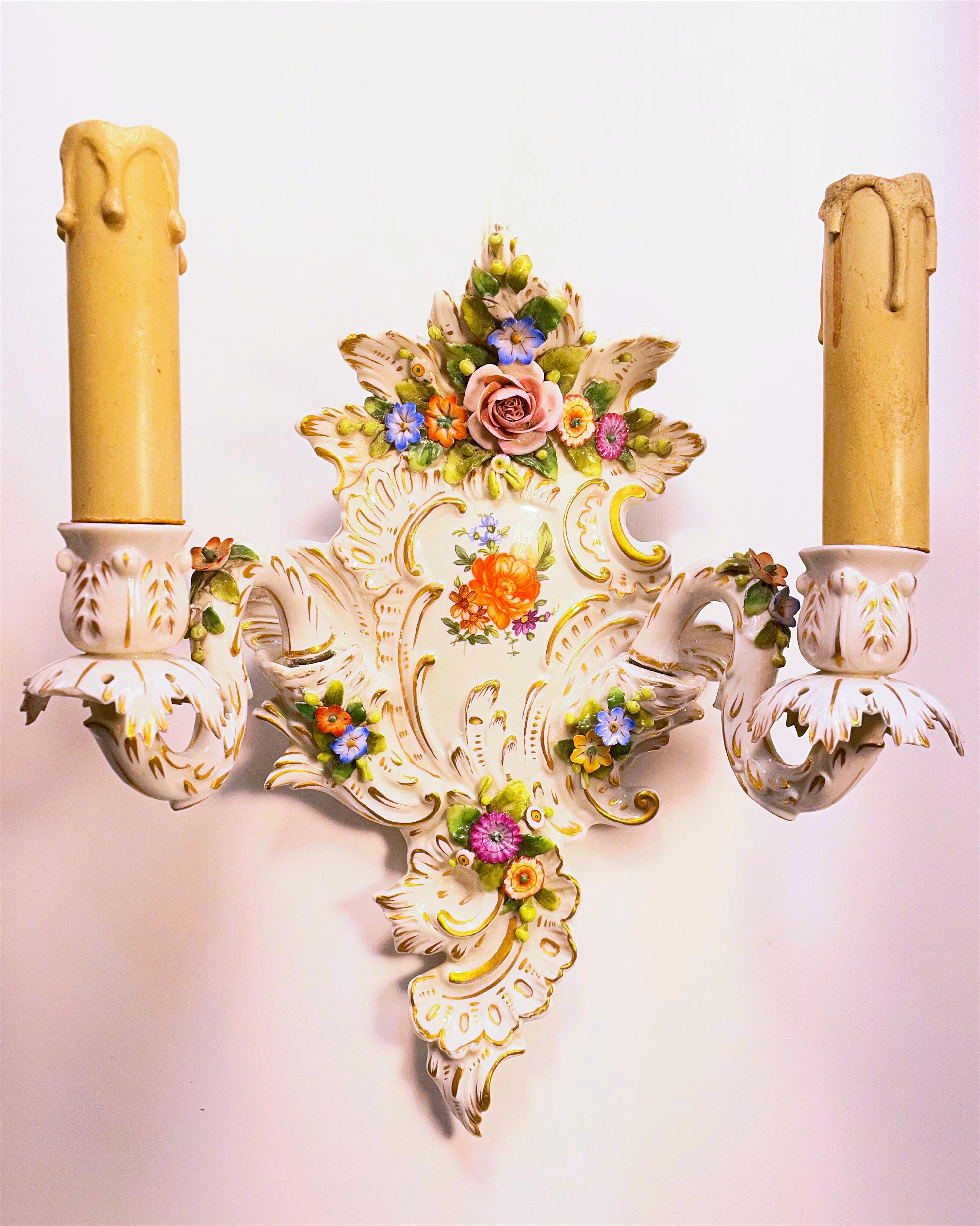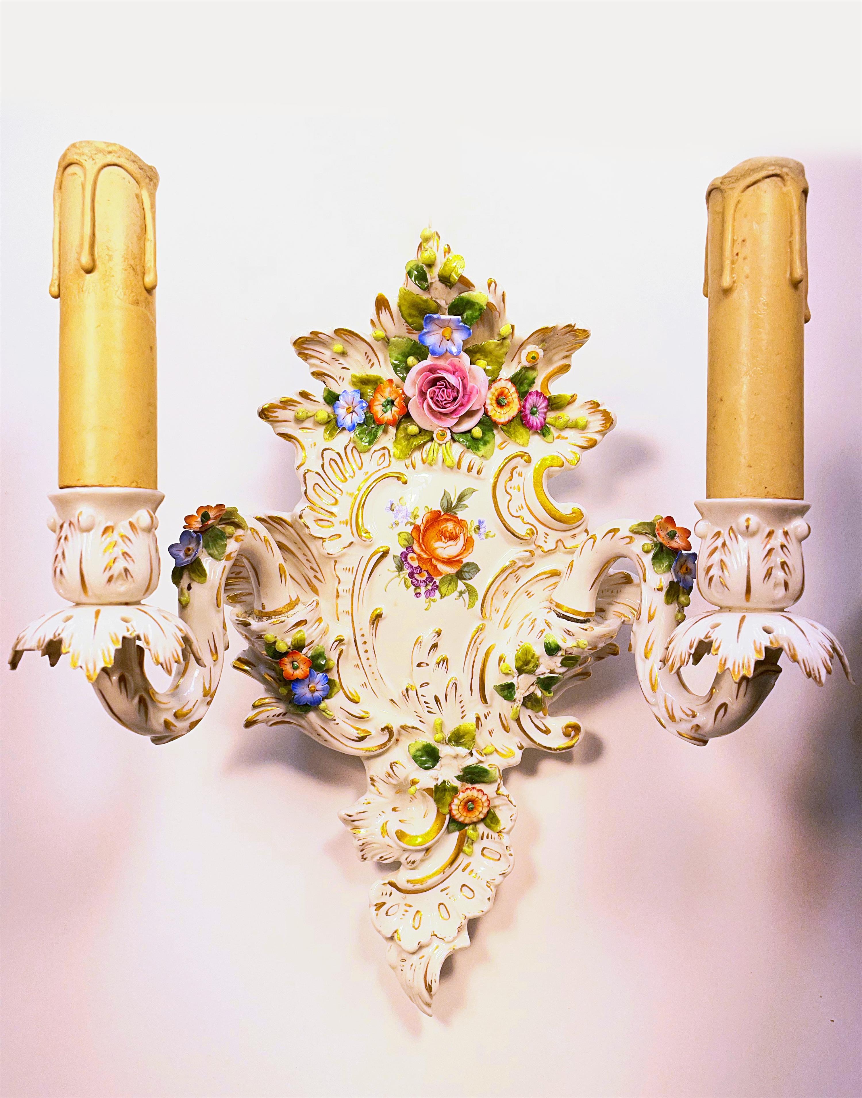 vídeňská nastěnná porcelánová světla, značeno zezadu, glazováno