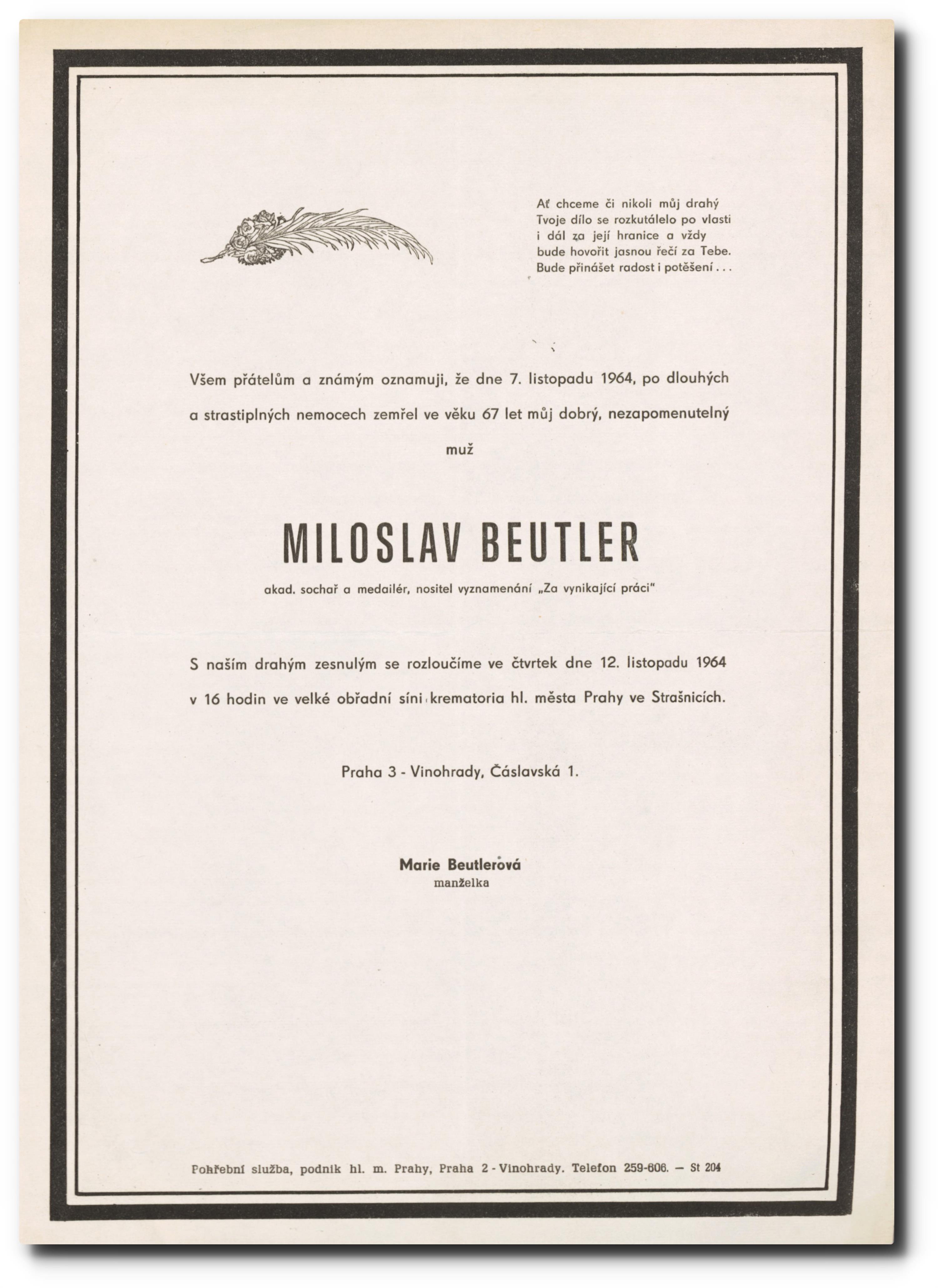 Originální smuteční oznámení.