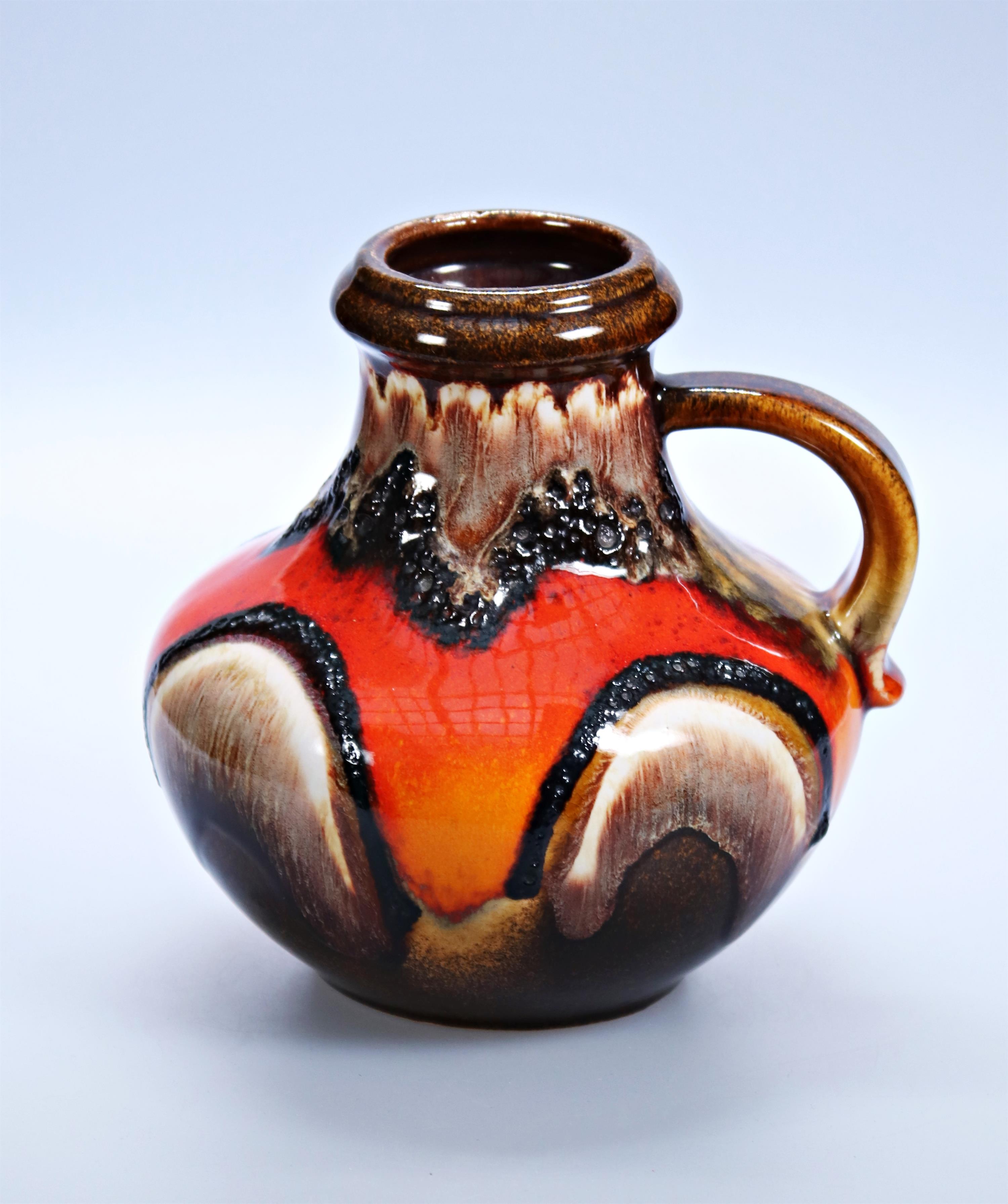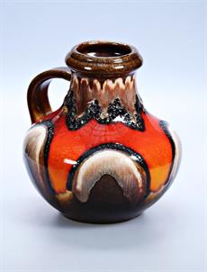 183. Keramická váza s uchem, hnědo červená glazura