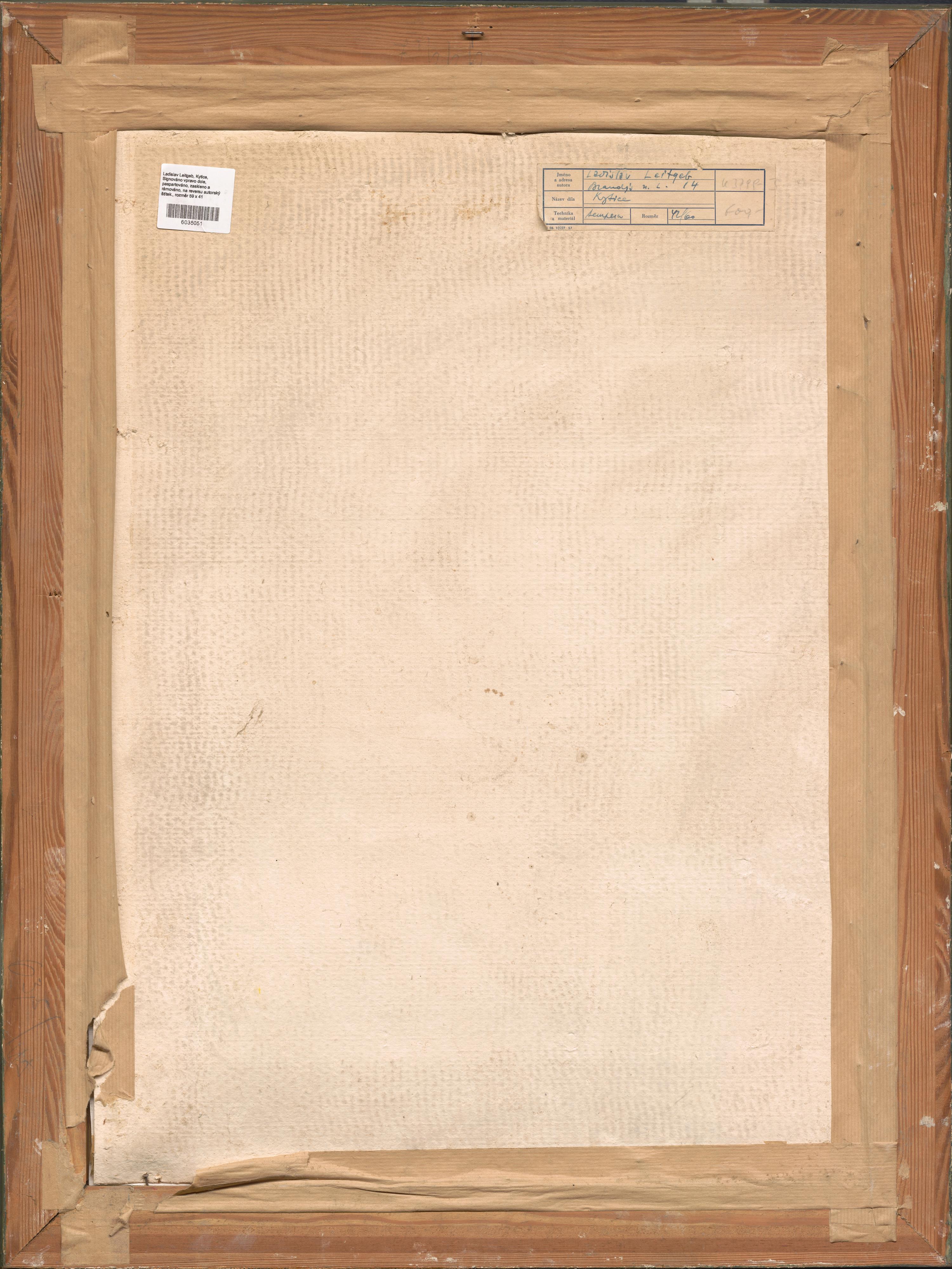 Signováno vpravo dole, paspartováno, zaskleno a rámováno, na reversu autorský štítek.