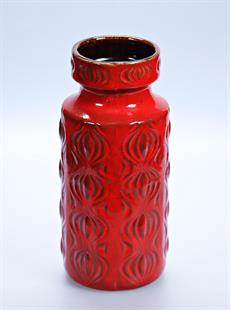 193. Keramická červená váza zdobená svislými ornamenty