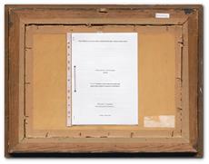 znalecký posudok od PhDr. Mariána Kvasničky přiložen. Nesignováno, na reversu fragment autorského štítku, rámováno.