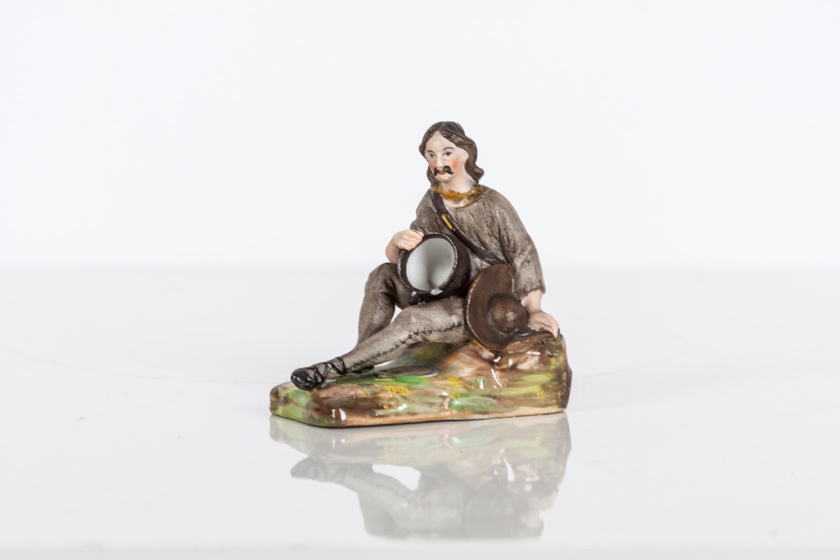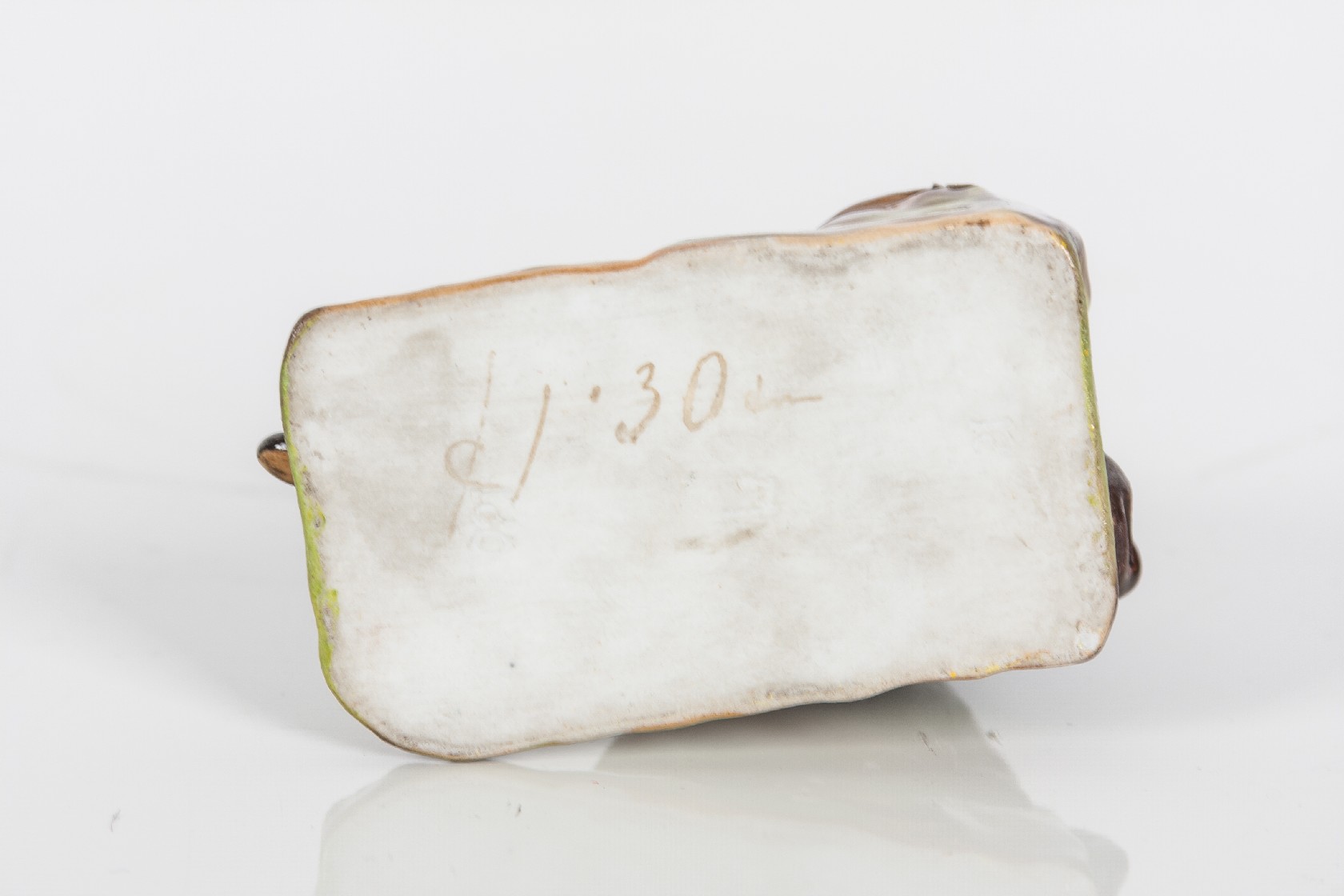 Porcelánová plastika barevně glazovaná. Zespodu vtlačená značka Loket.