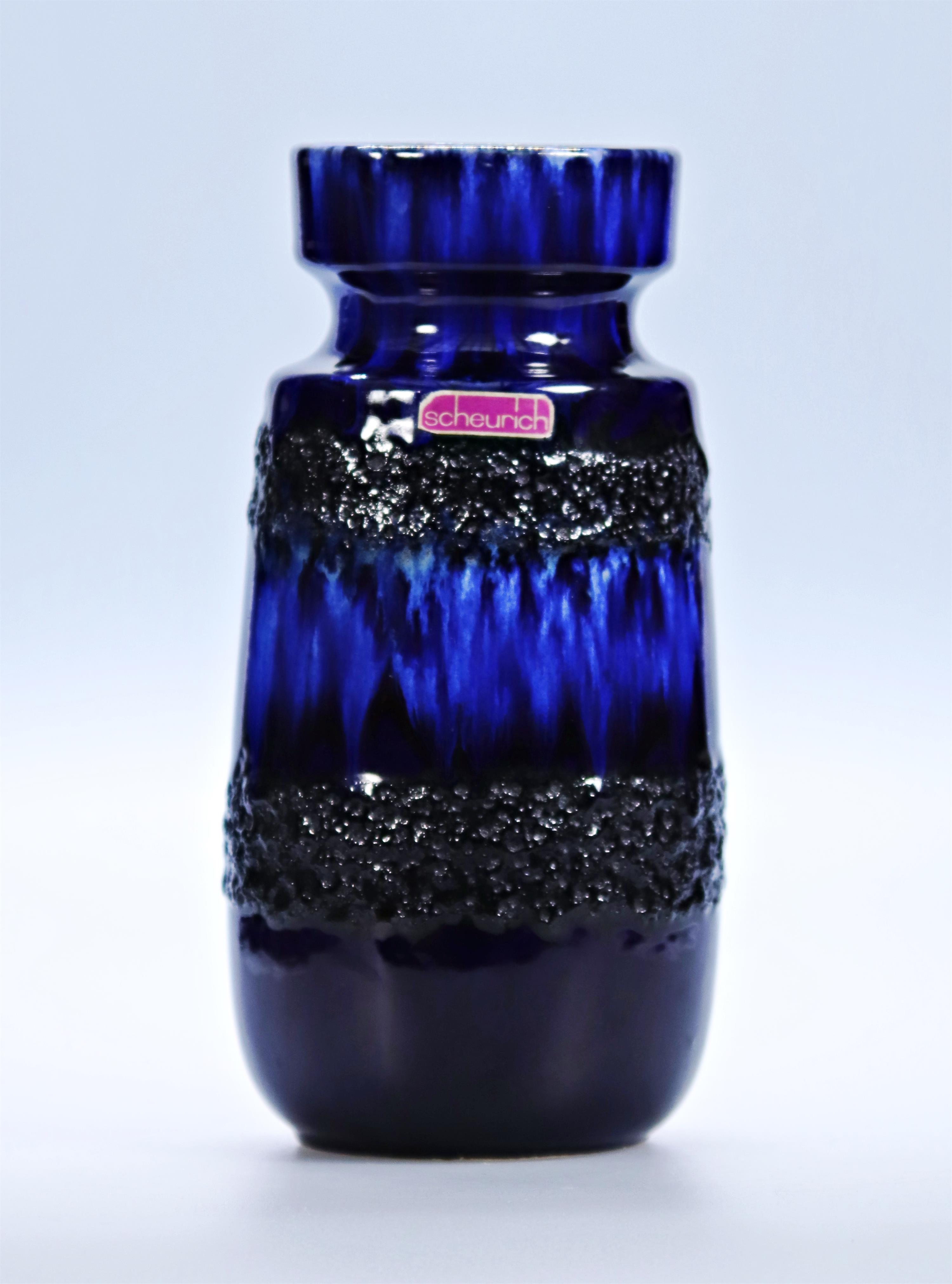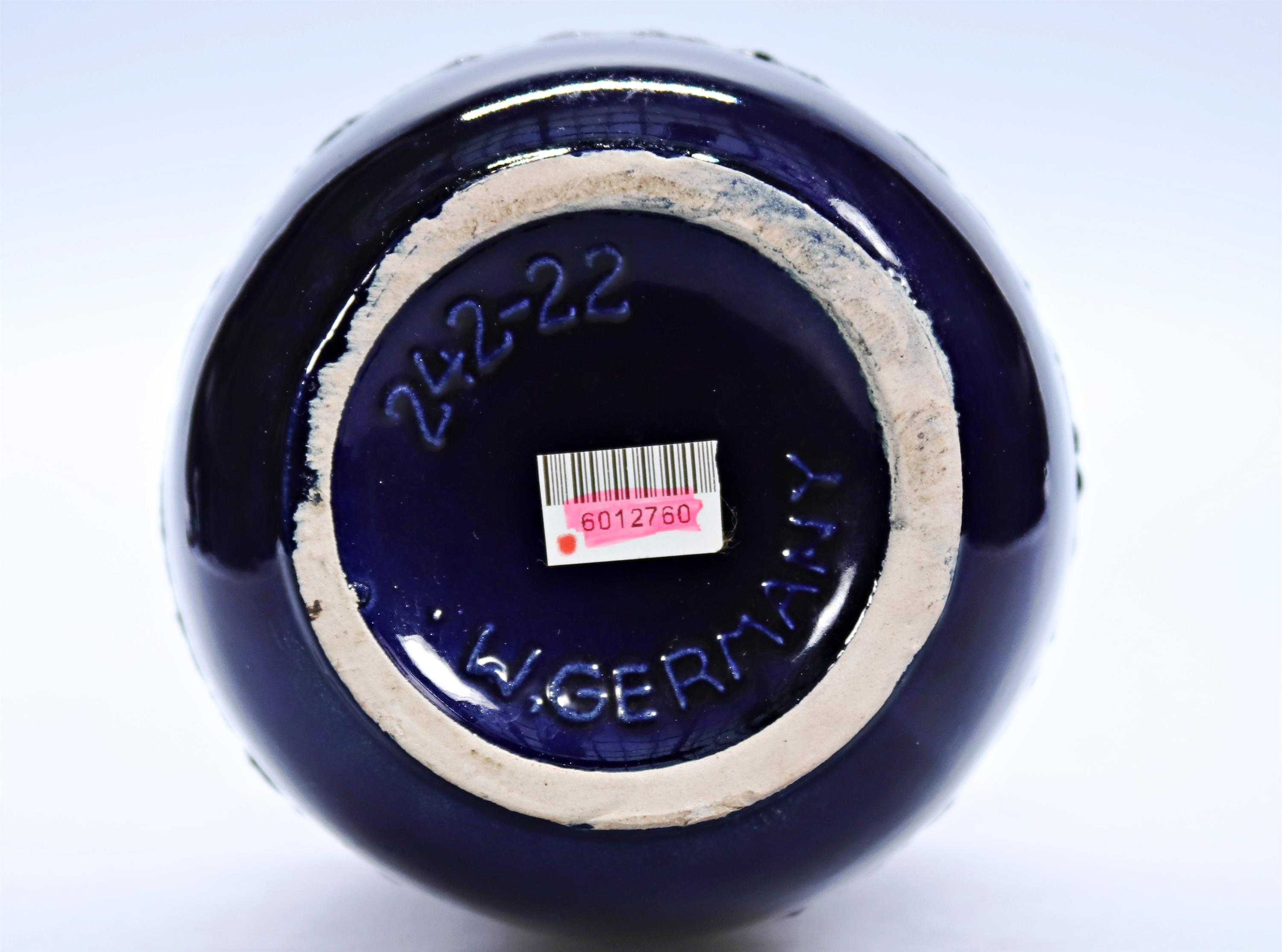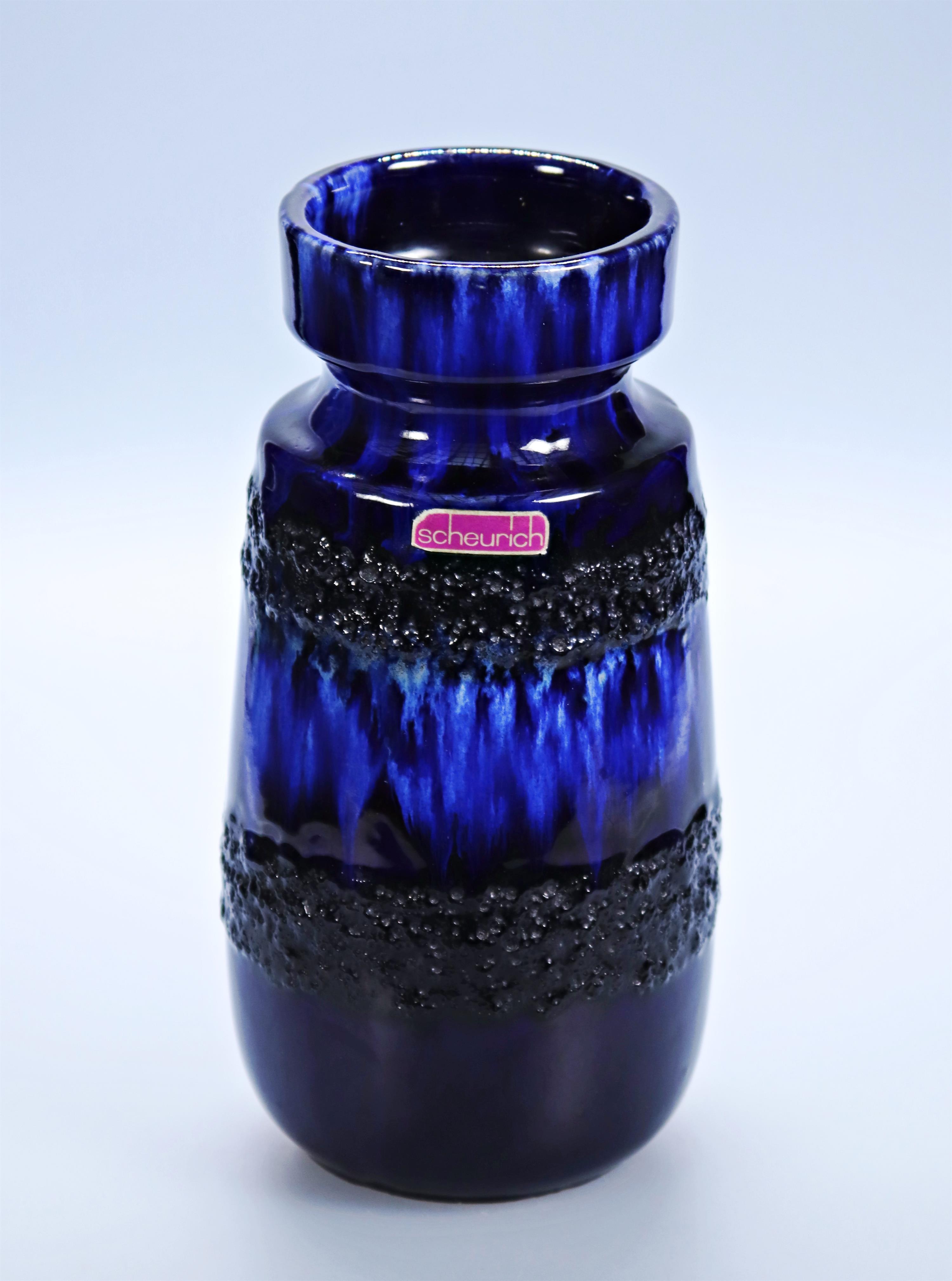 198. Keramická modrá váza s šedivými předěly