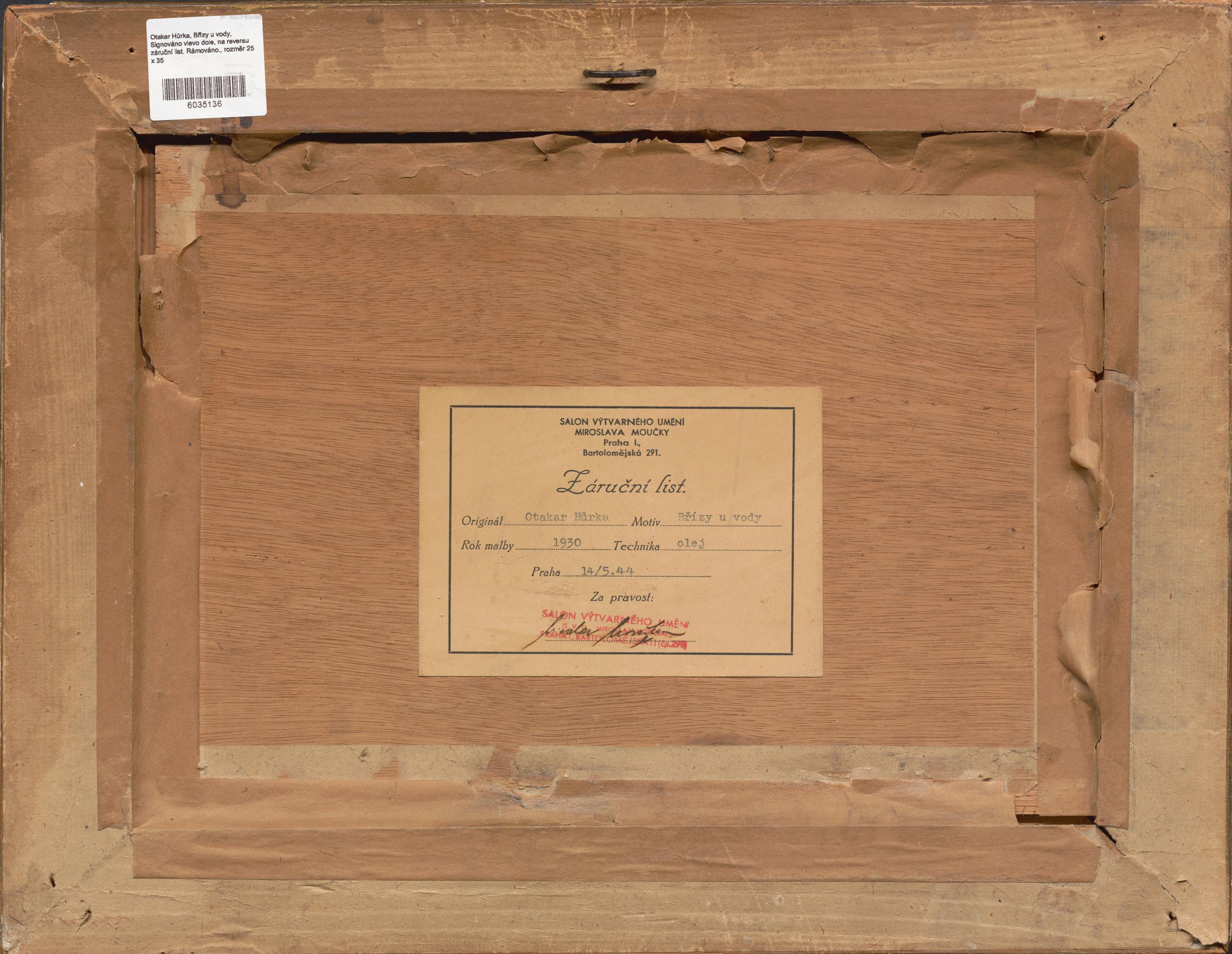 Signováno vlevo dole, na reversu záruční list. Rámováno.