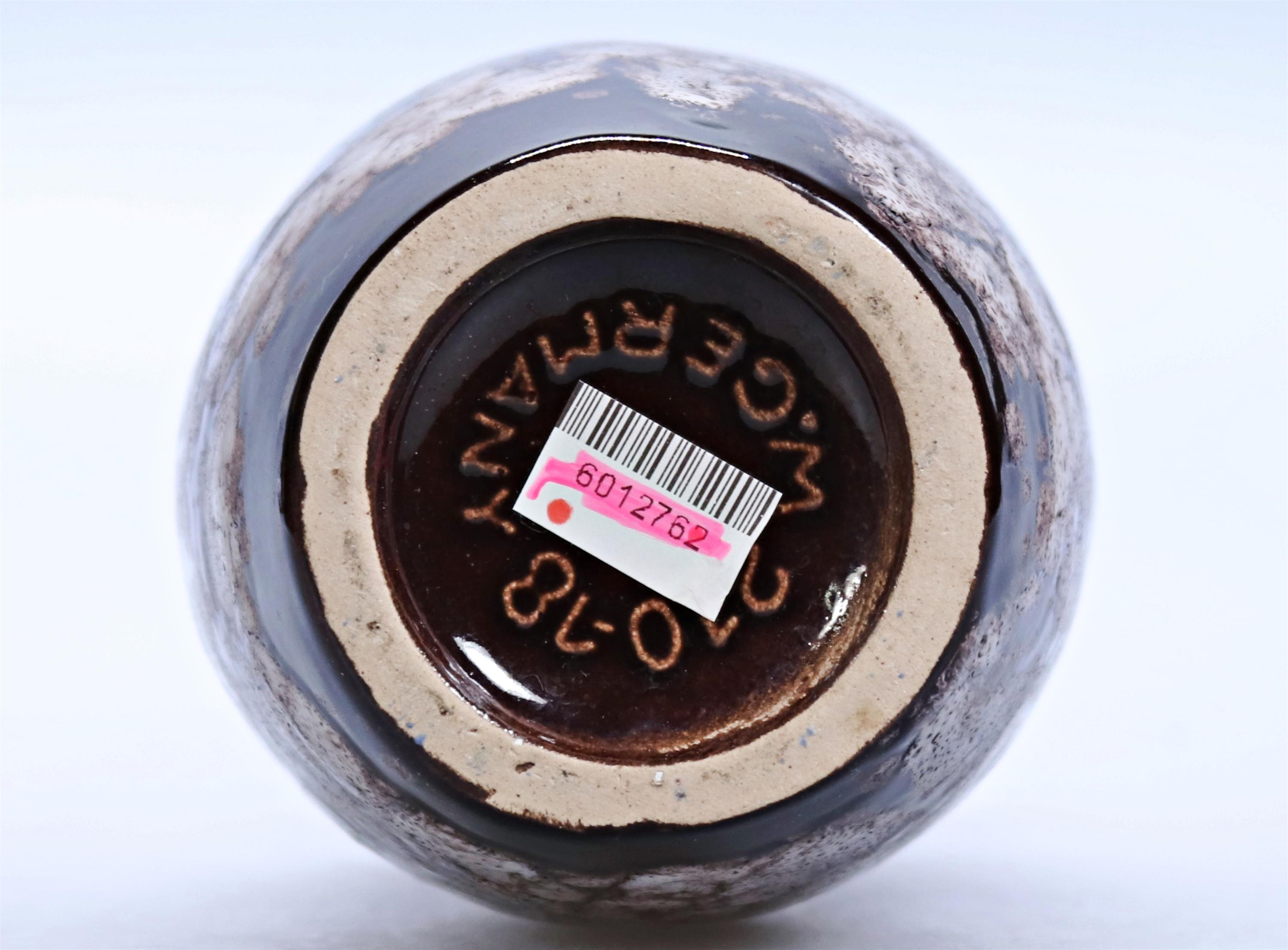 200. Keramická modrá vázička s hnědou glazurou ve spodní části