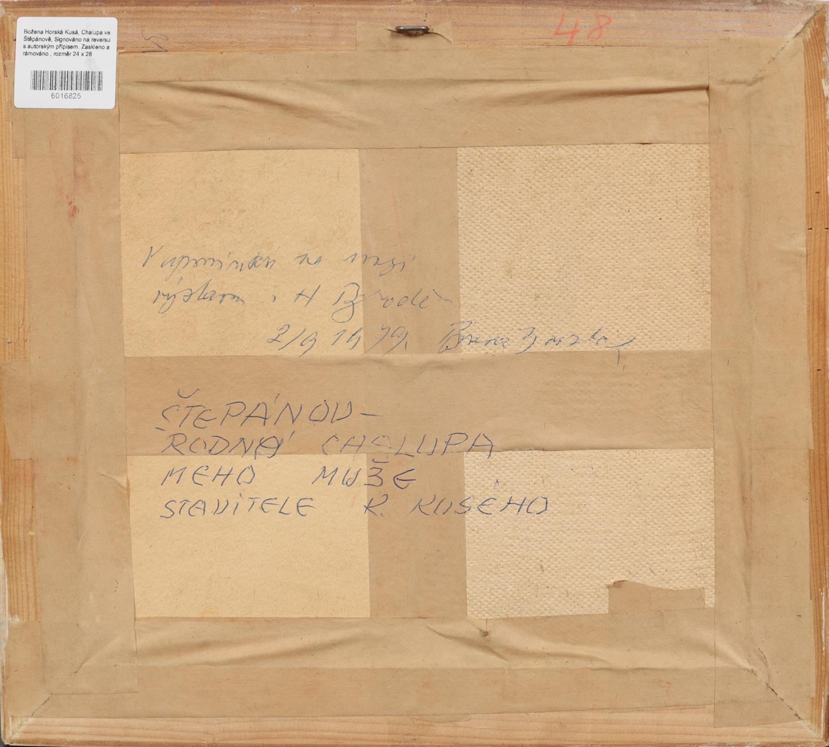 Signováno na reversu s autorským přípisem. Zaskleno a rámováno.