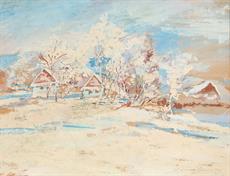 Zimní krajina se stromy a domy