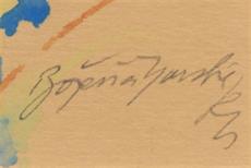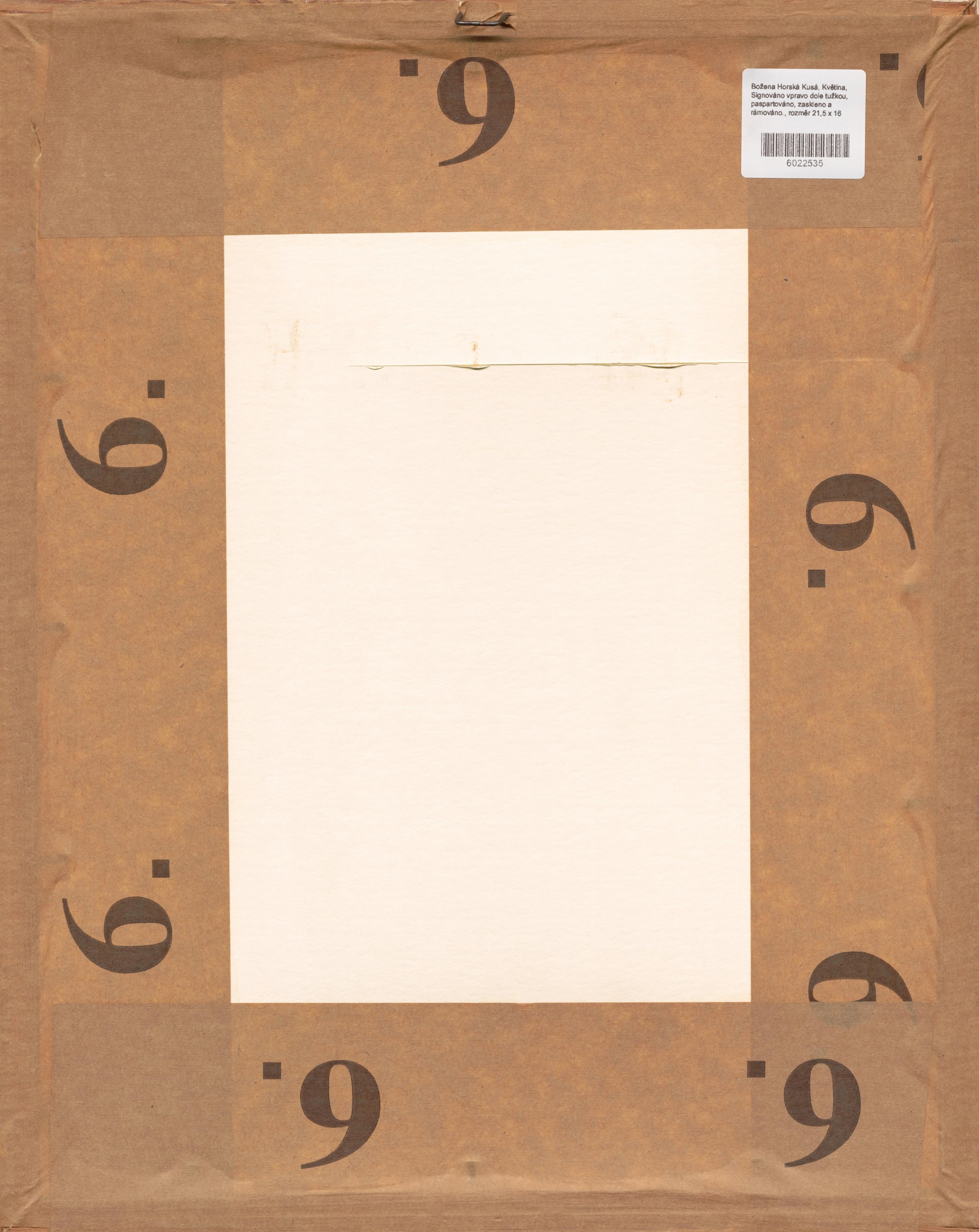 Signováno vpravo dole tužkou, paspartováno, zaskleno a rámováno.