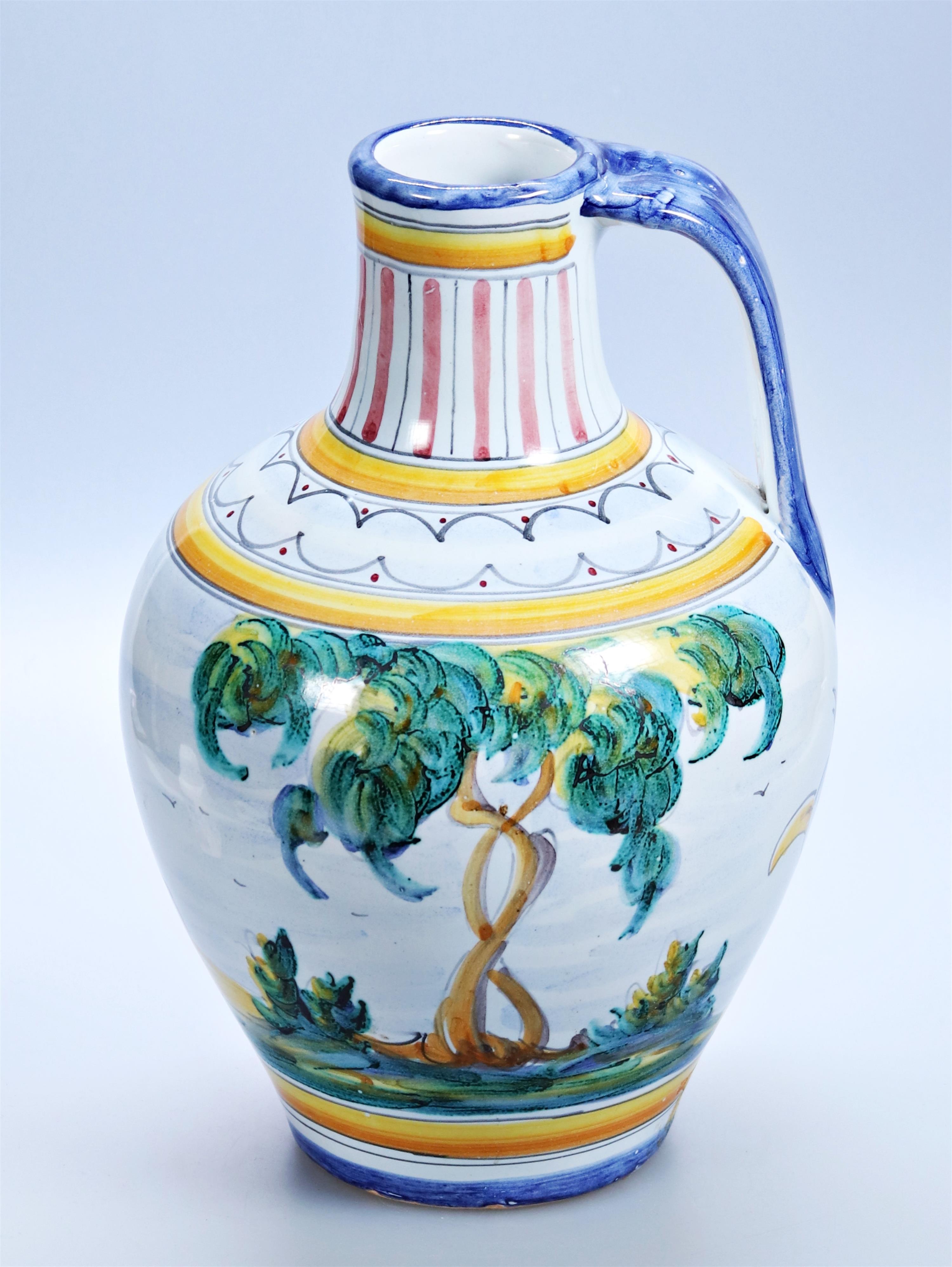 keramický ručně malovaný džbán s přírodními motivy