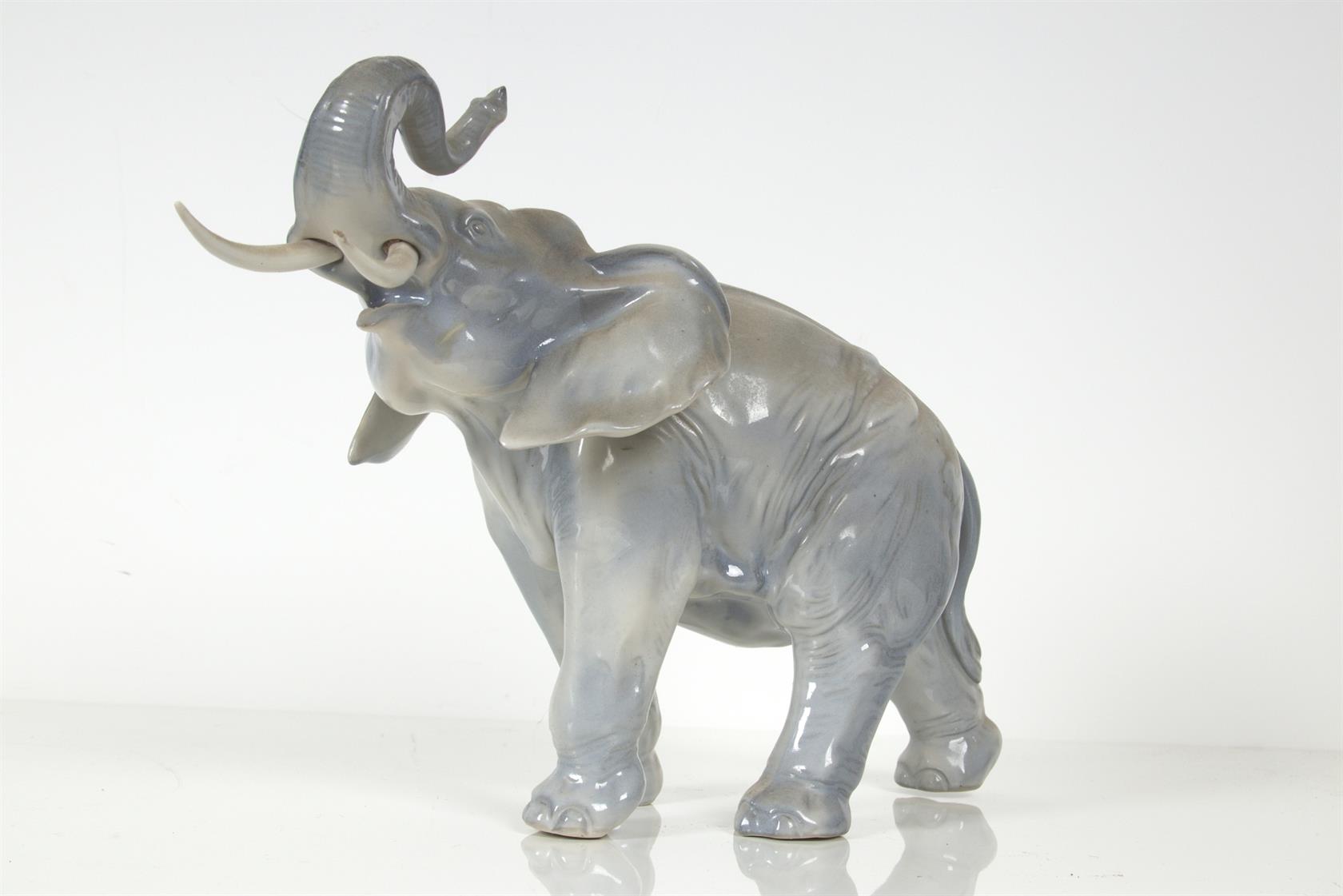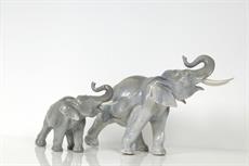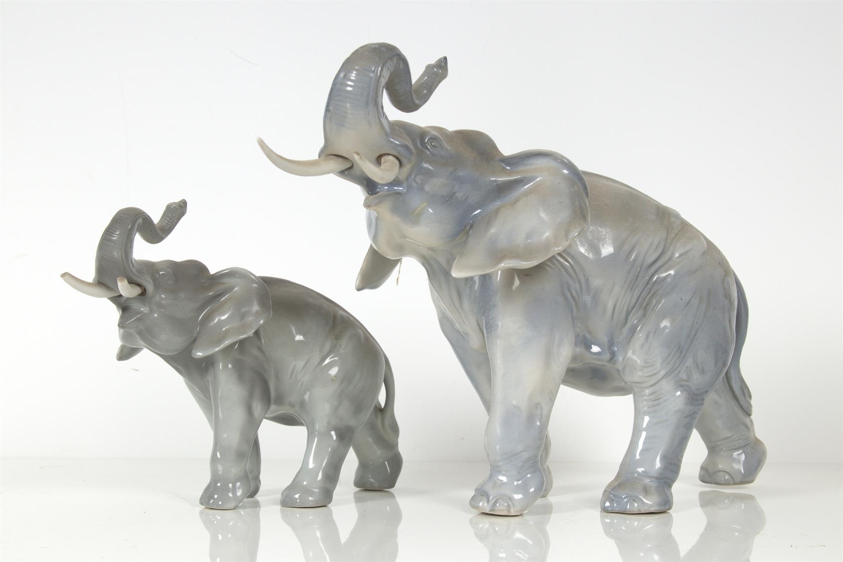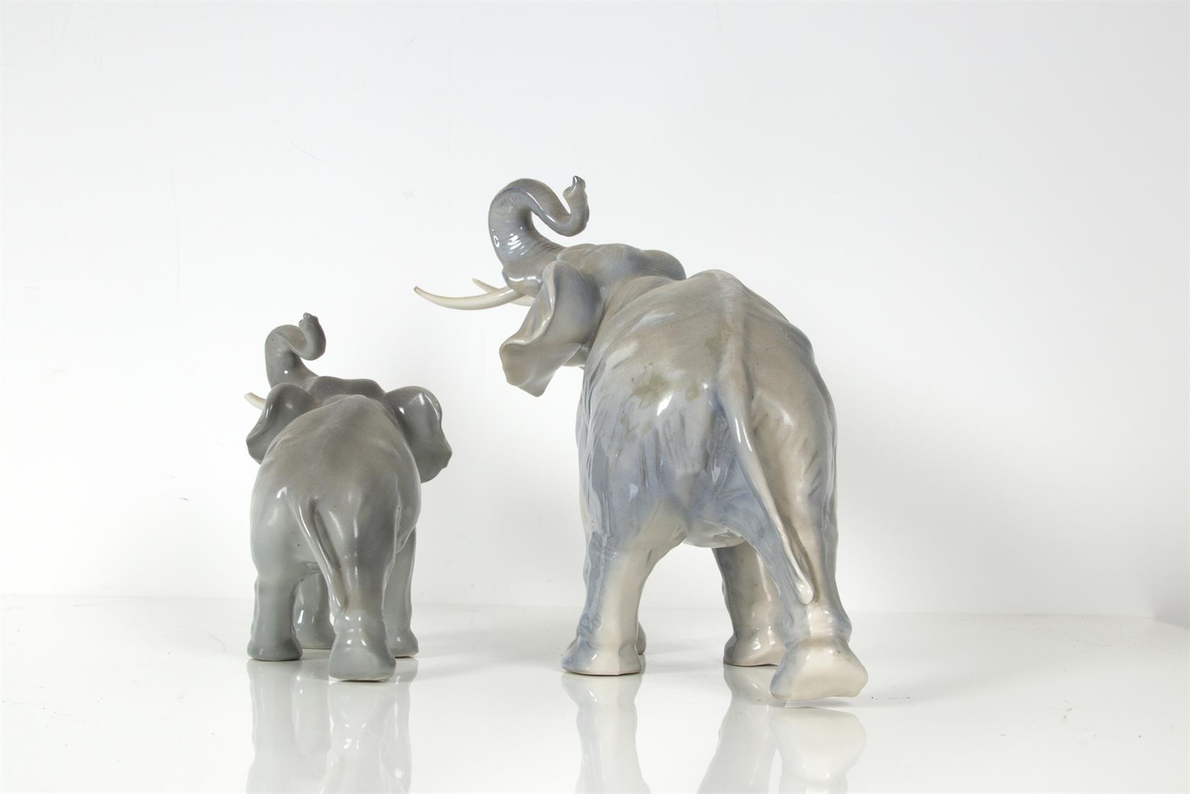 výška většího slona 23 cm, menší 16 cm, kly poškozeny, glazováno