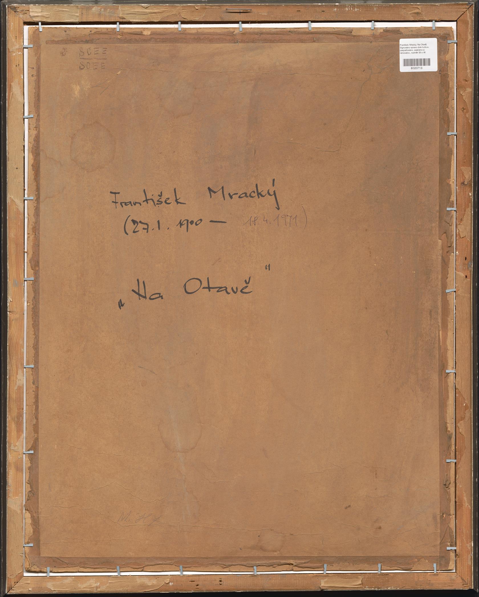 Signováno vpravo dole tužkou, paspartováno, zaskleno a rámováno.