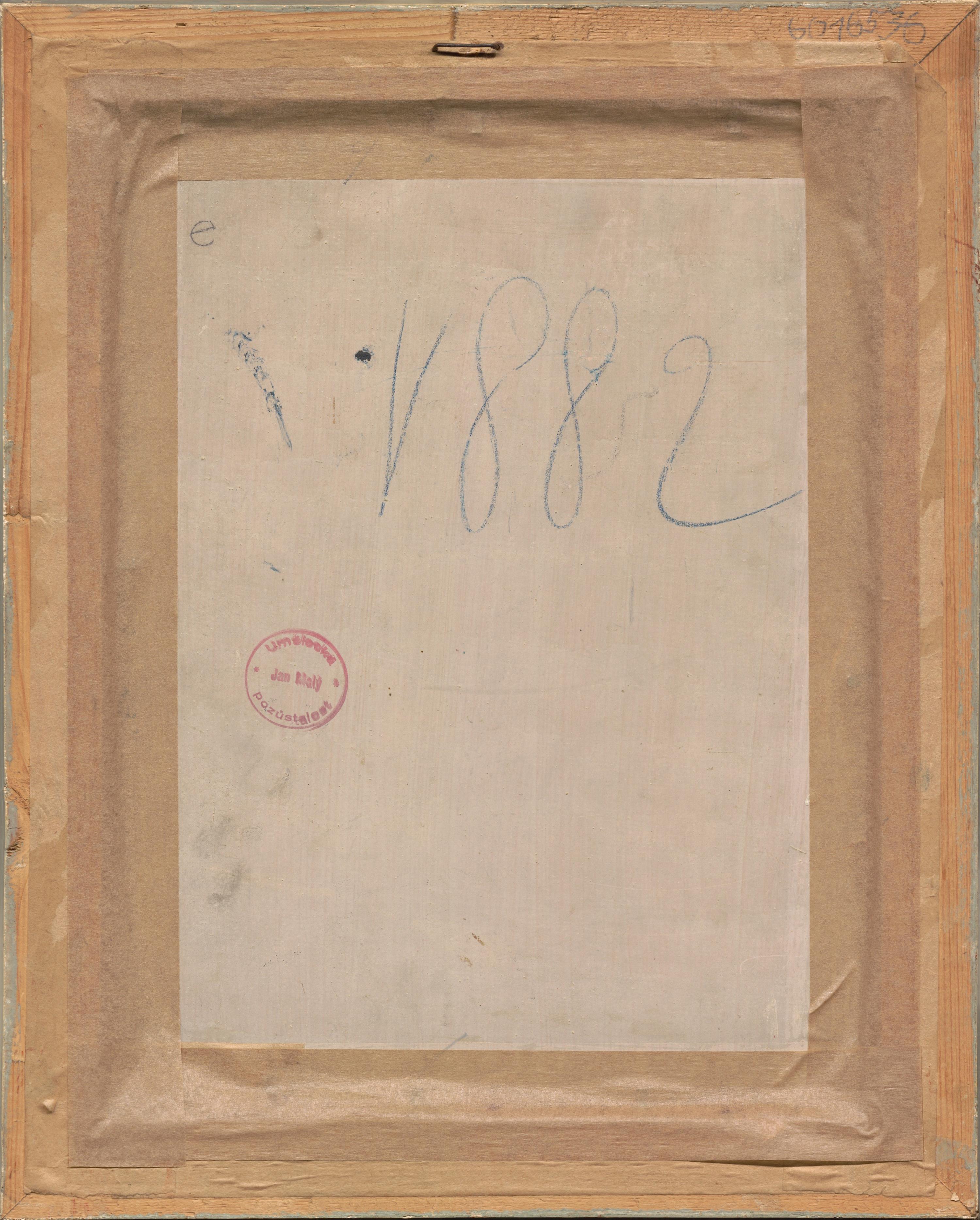 Signováno vpravo dole, rámováno a zaskleno, na reversu pozůstalostní razítko