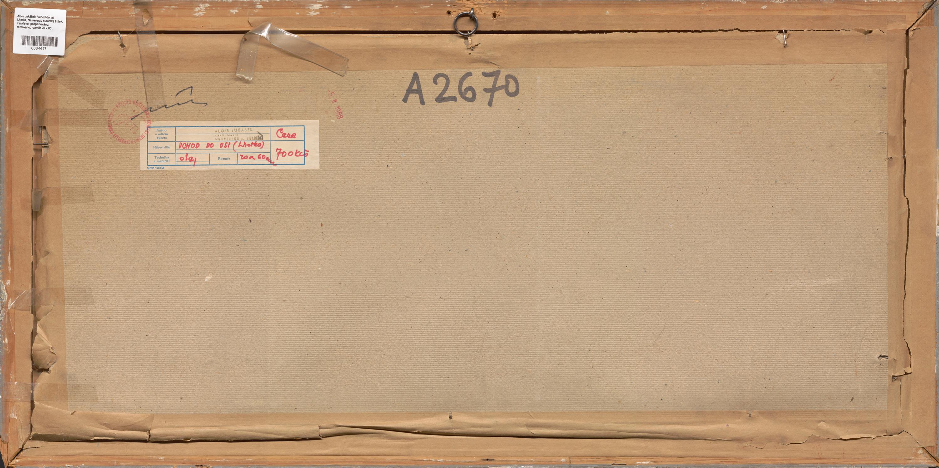 Na reverzu autorský štítek, zaskleno, paspartováno, rámováno