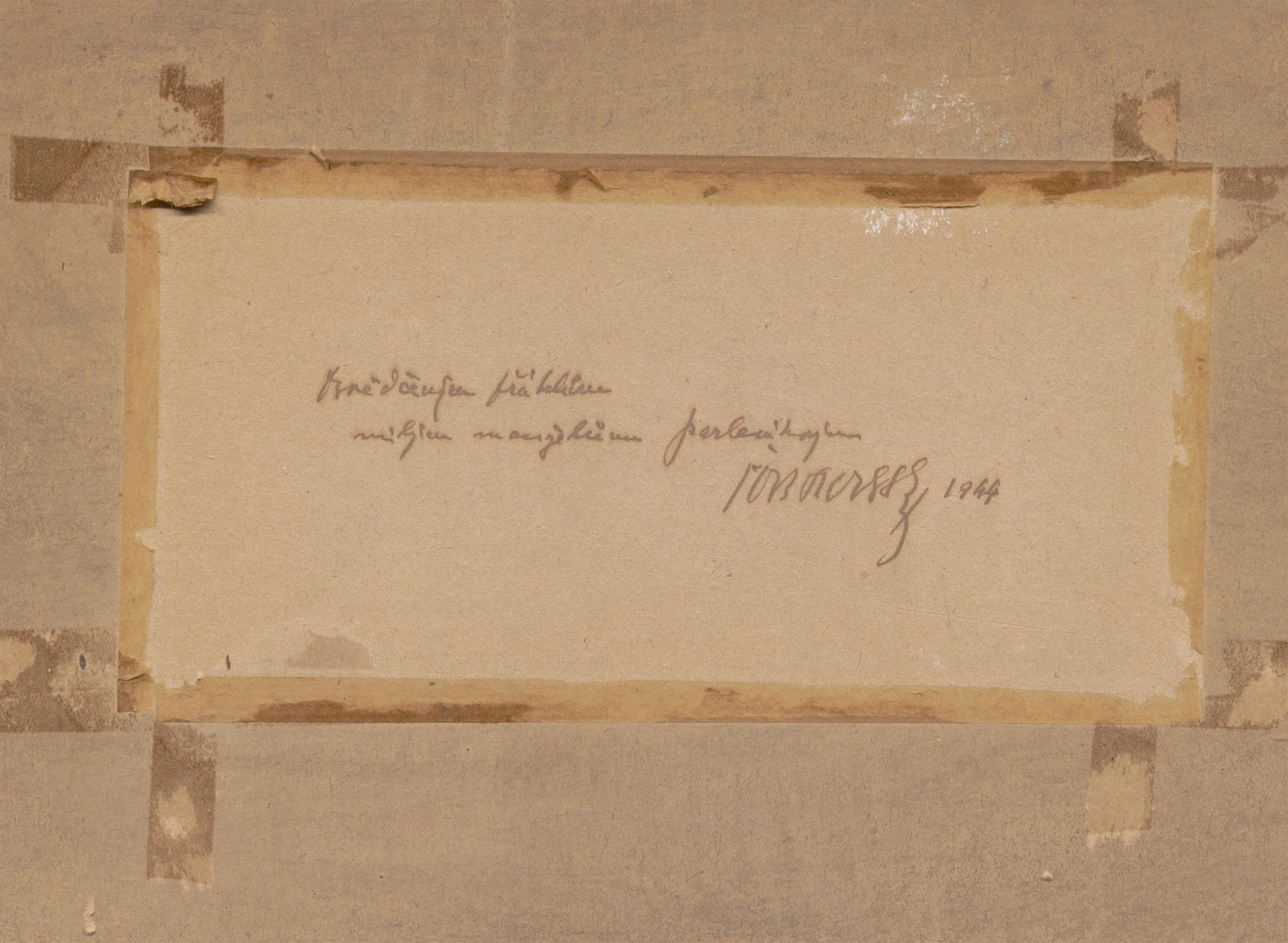 Signováno a datováno vlevo dole, na reversu věnování, rámováno.