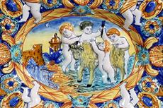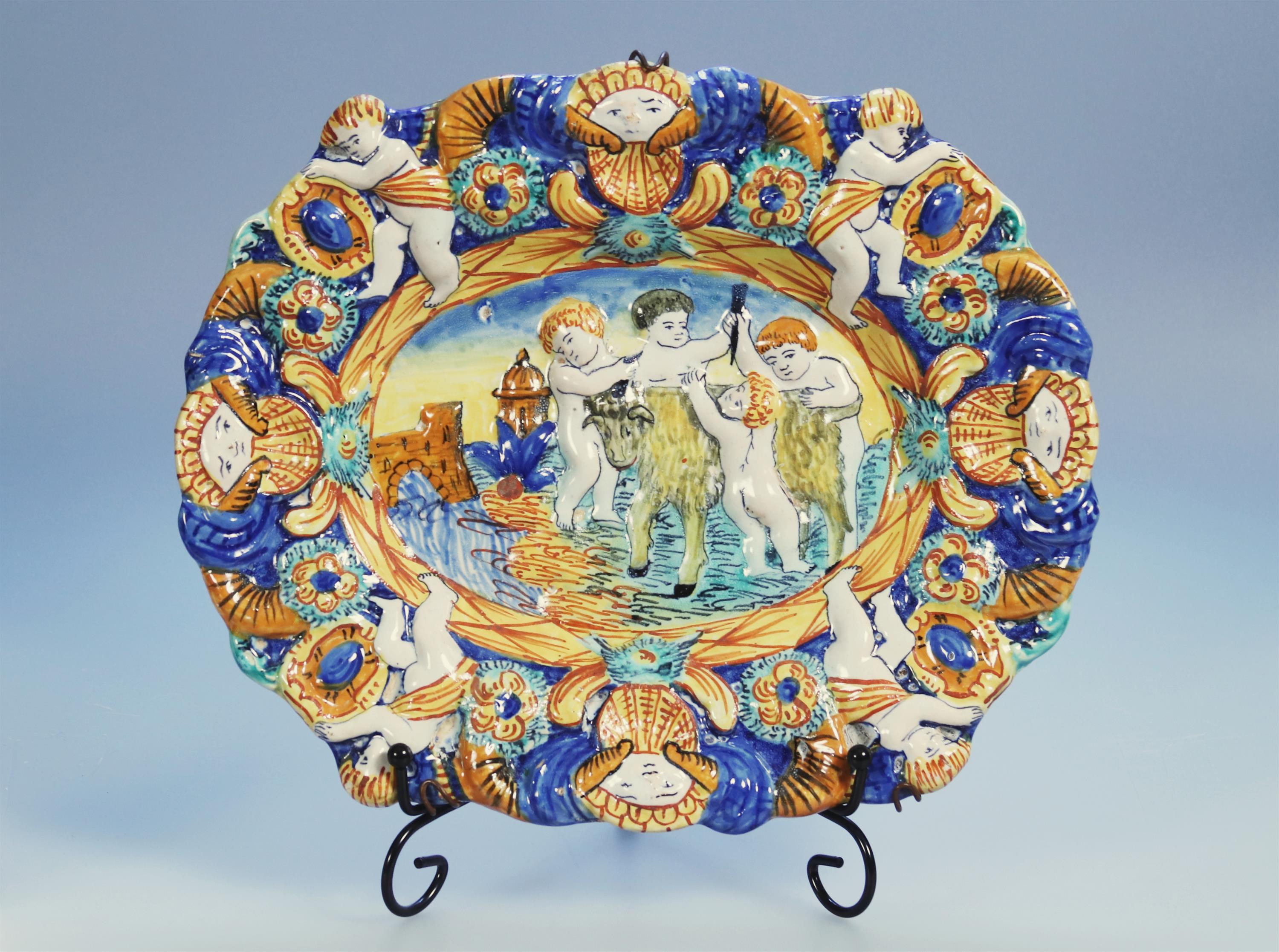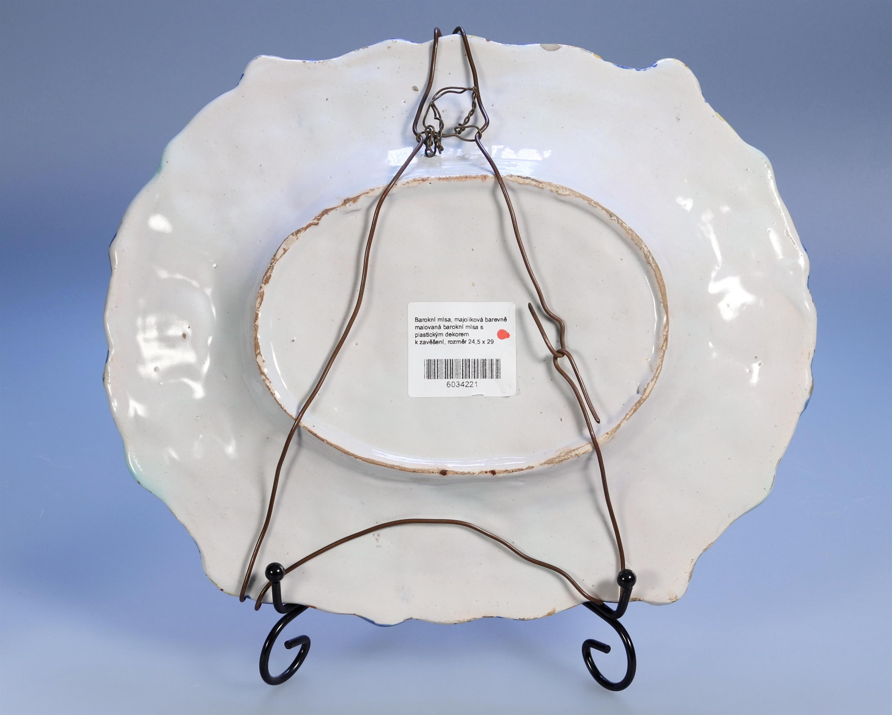 majoliková barevně malovaná barokní mísa s plastickým dekorem