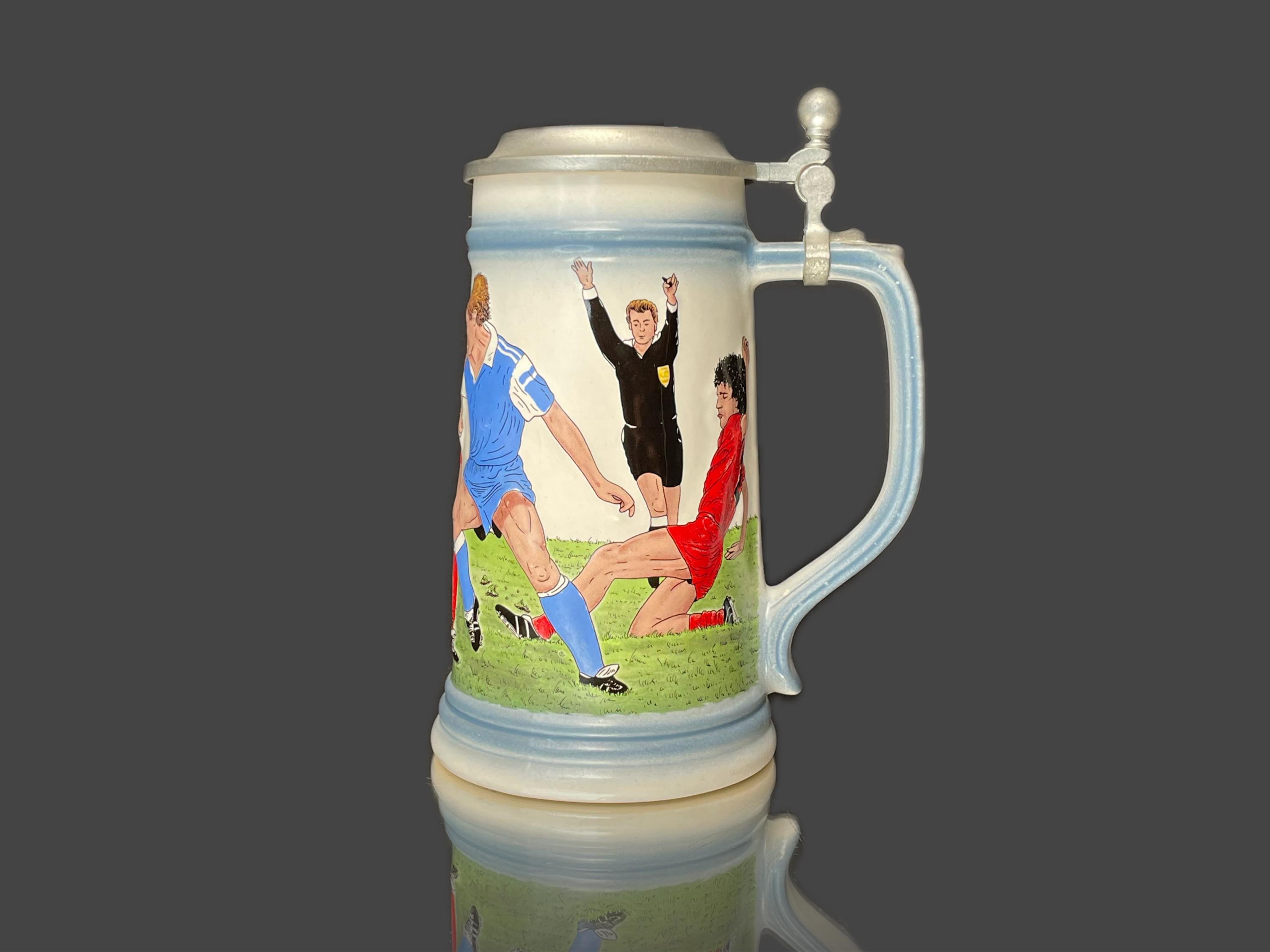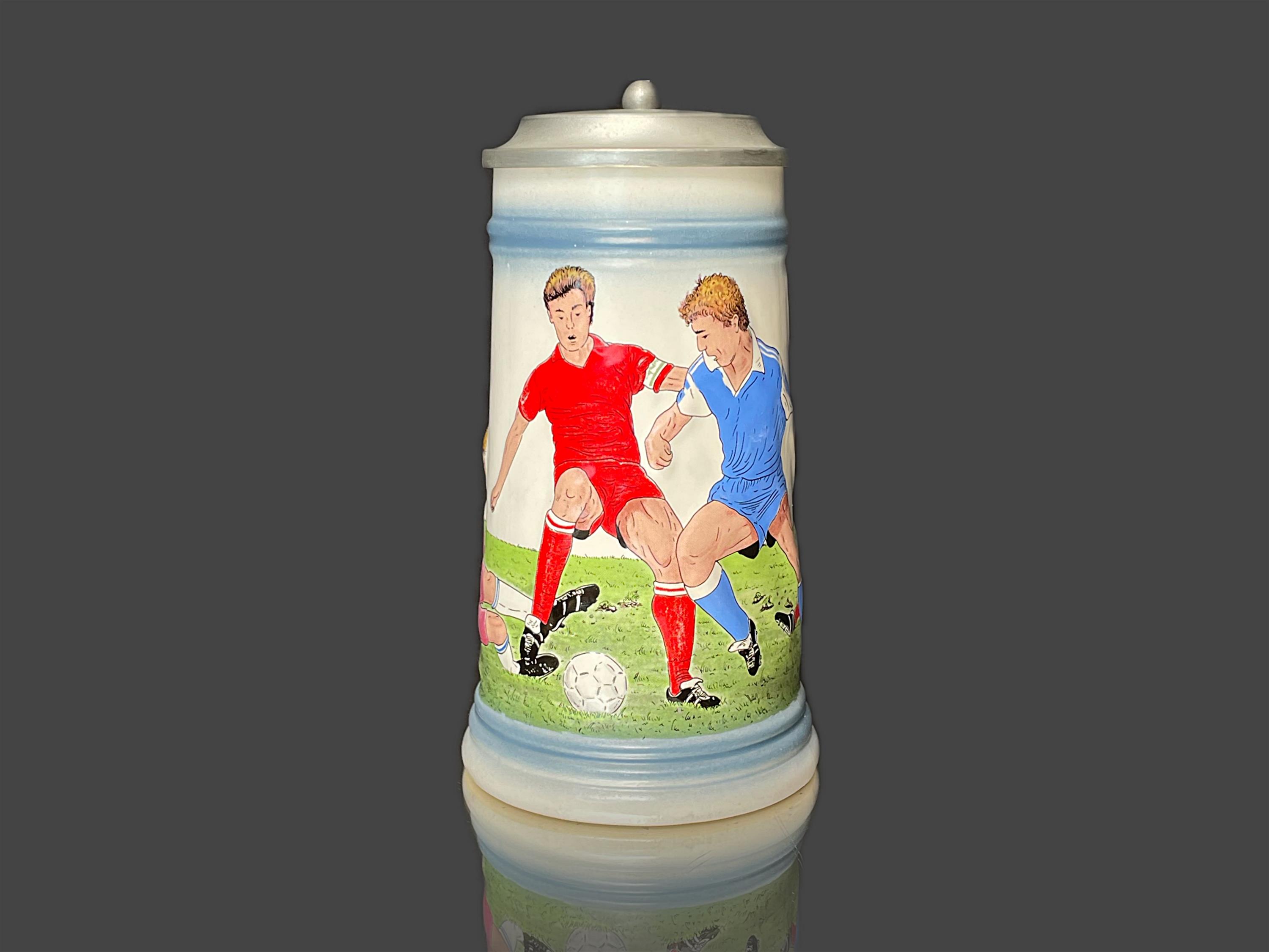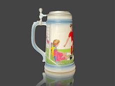 Keramický korbel s cínovým víčkem, značeno, vyrobeno v Německu.