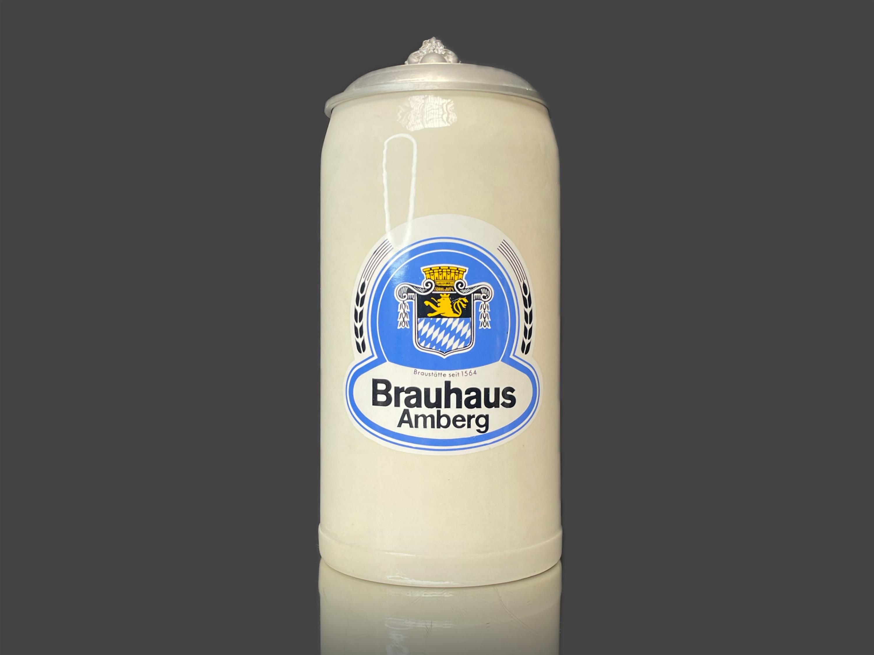 Keramický korbel s cínovým víčkem, značeno.