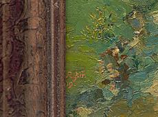 Fragment signatury a datace vlevo dole, rámováno.