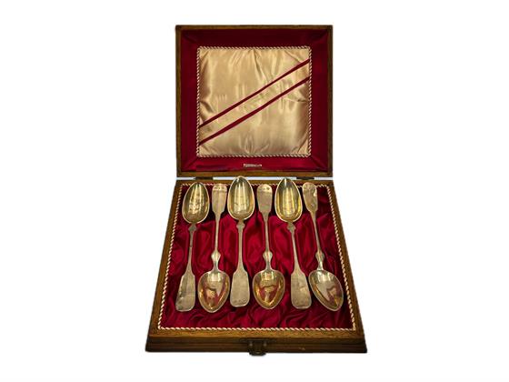 čajové stříbrné lžičky v dřevěné původní etui
