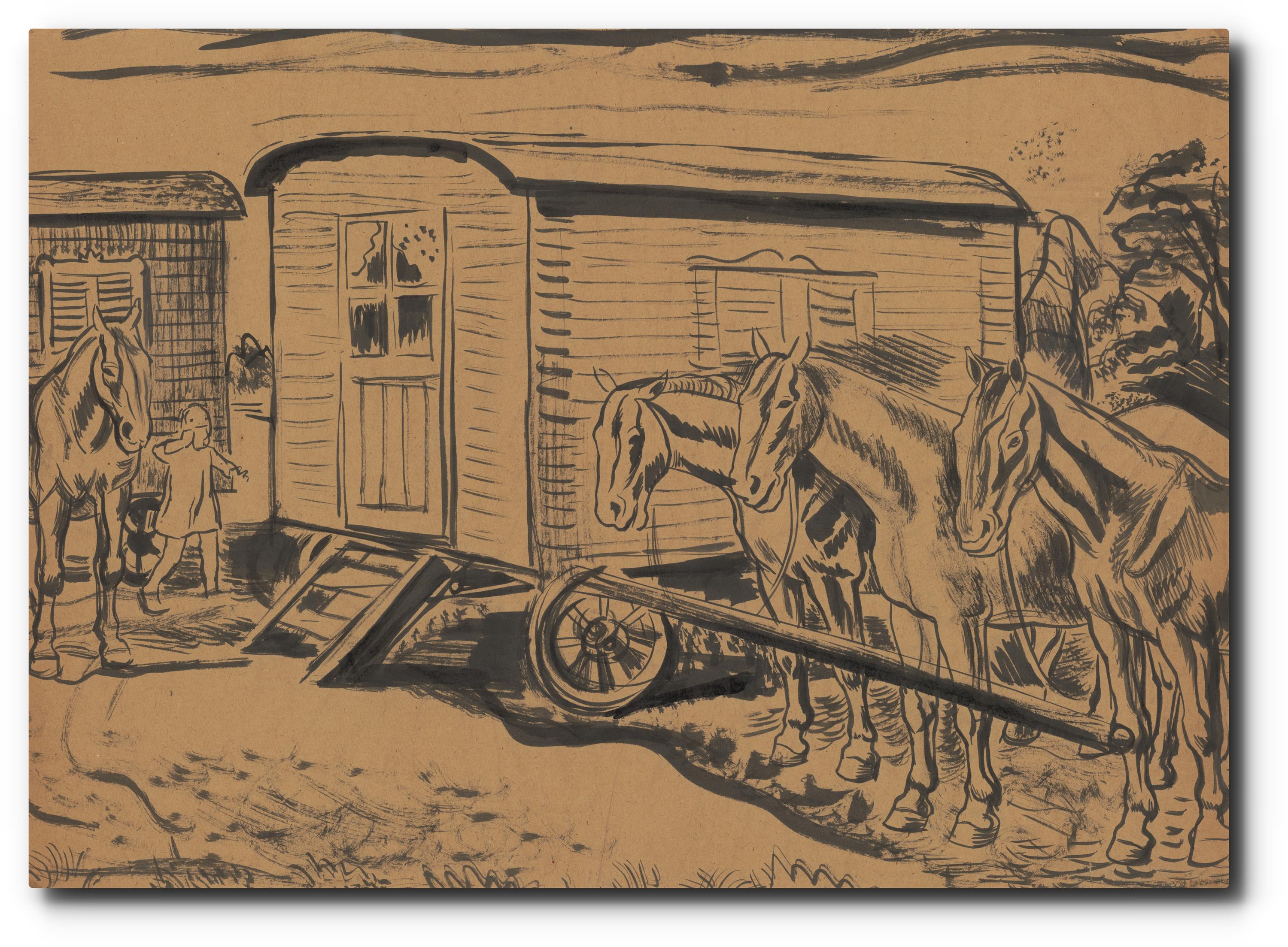 pochází z většího souboru děl autora, zaskleno, paspartováno a rámováno.