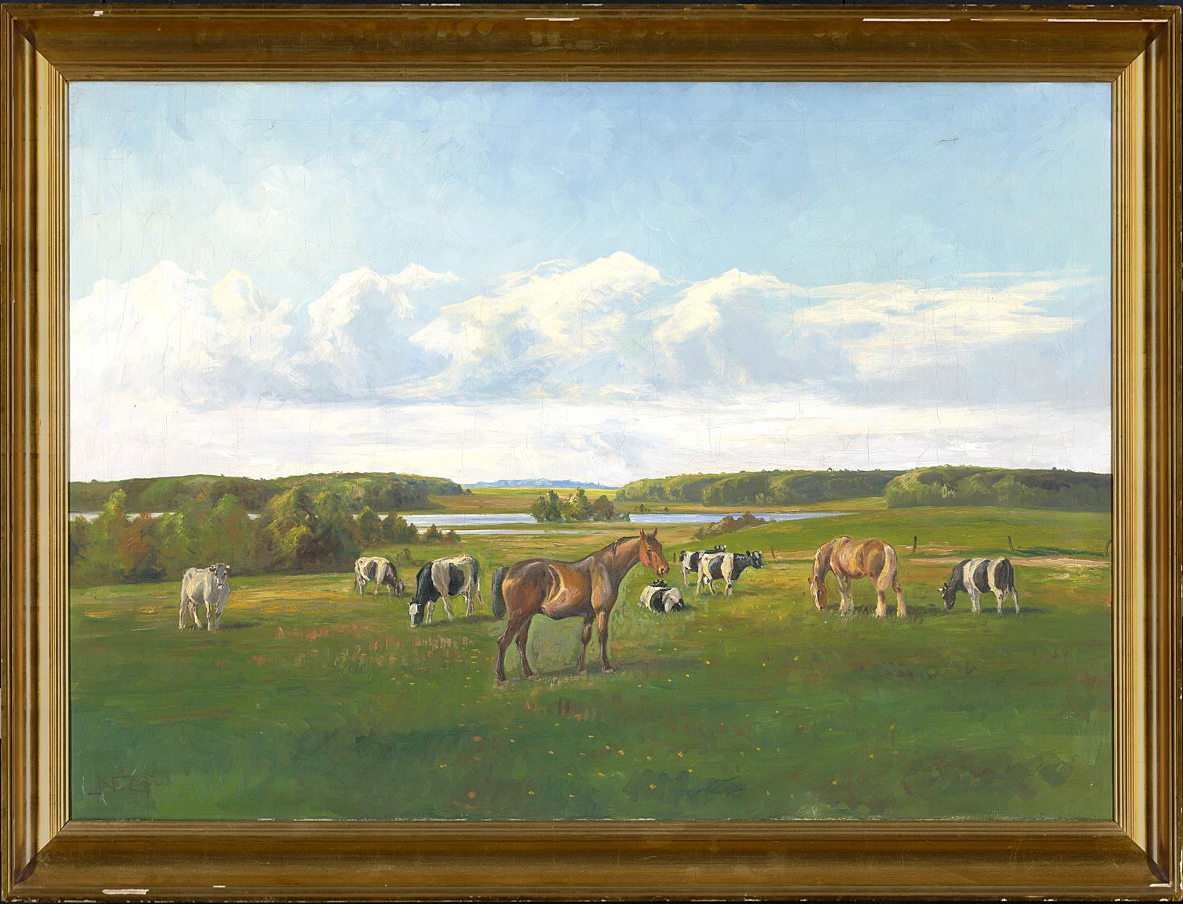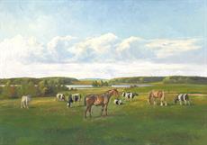 142. Koně a krávy na pastvě - L Formát