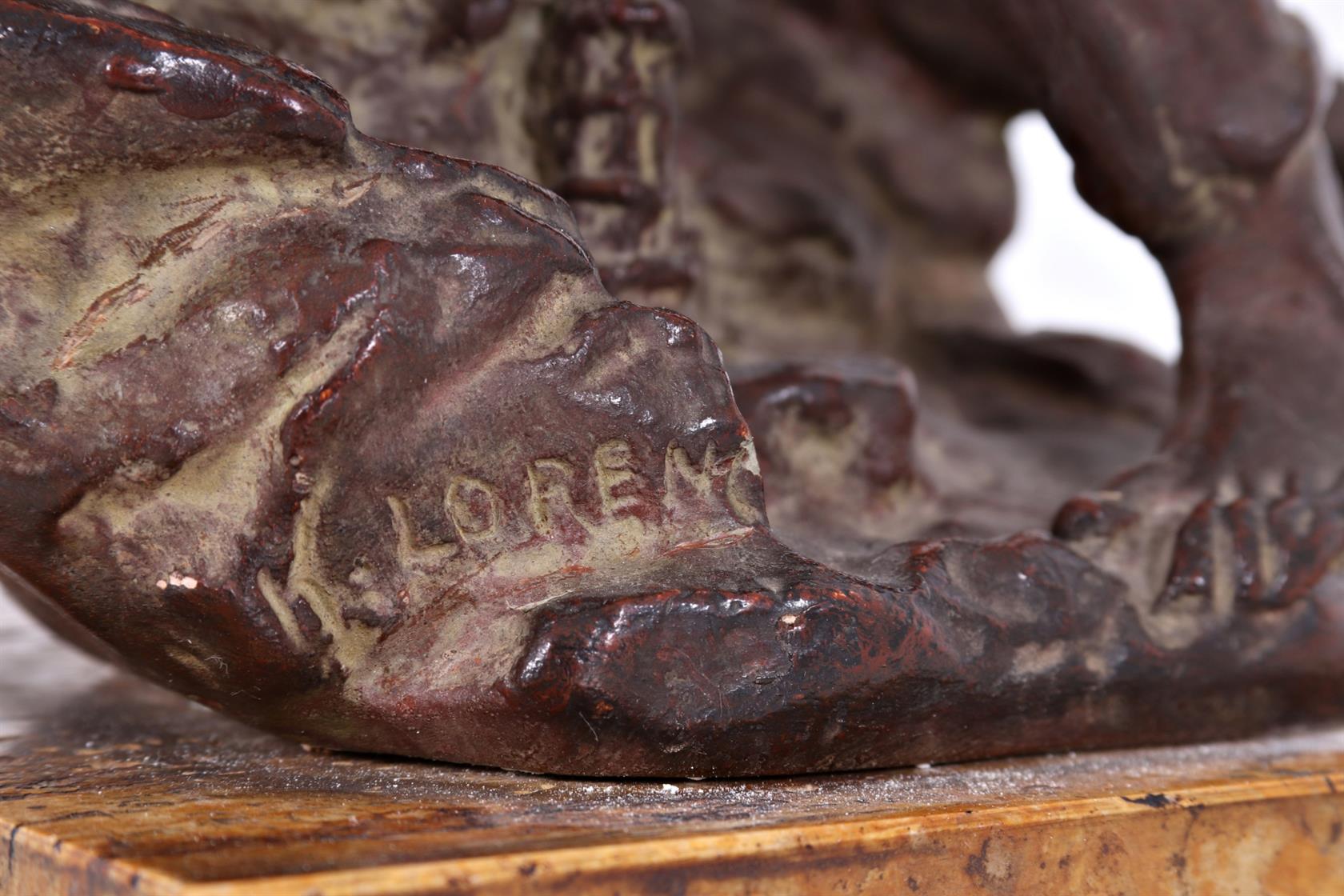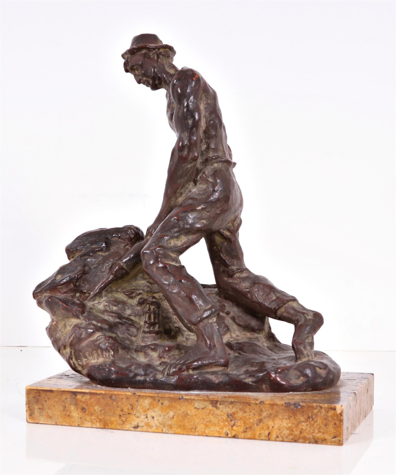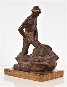 signováno na plintě, klobouk mírně uražen, na kamenném podstavci,
