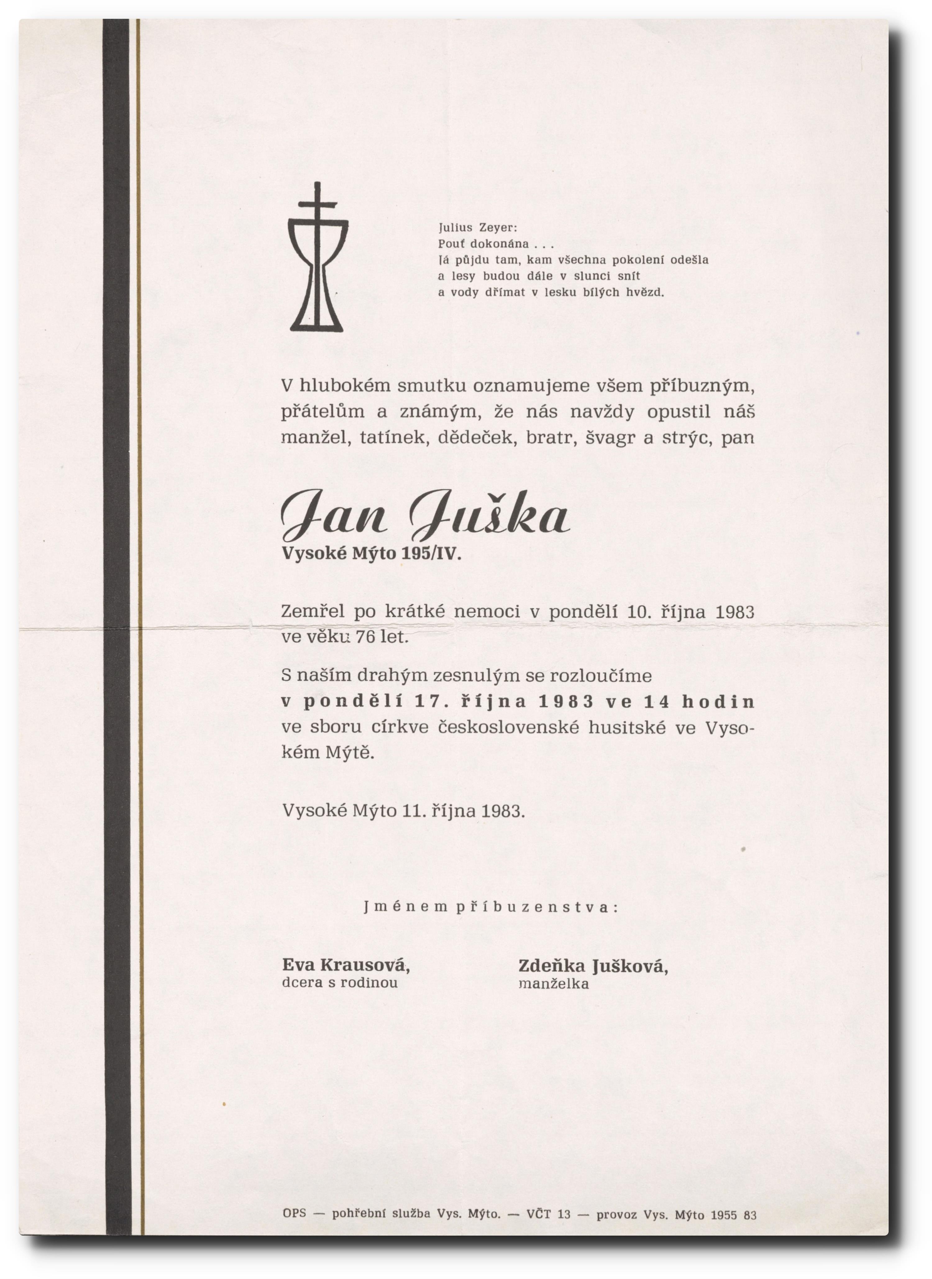 Originální smuteční oznámení.