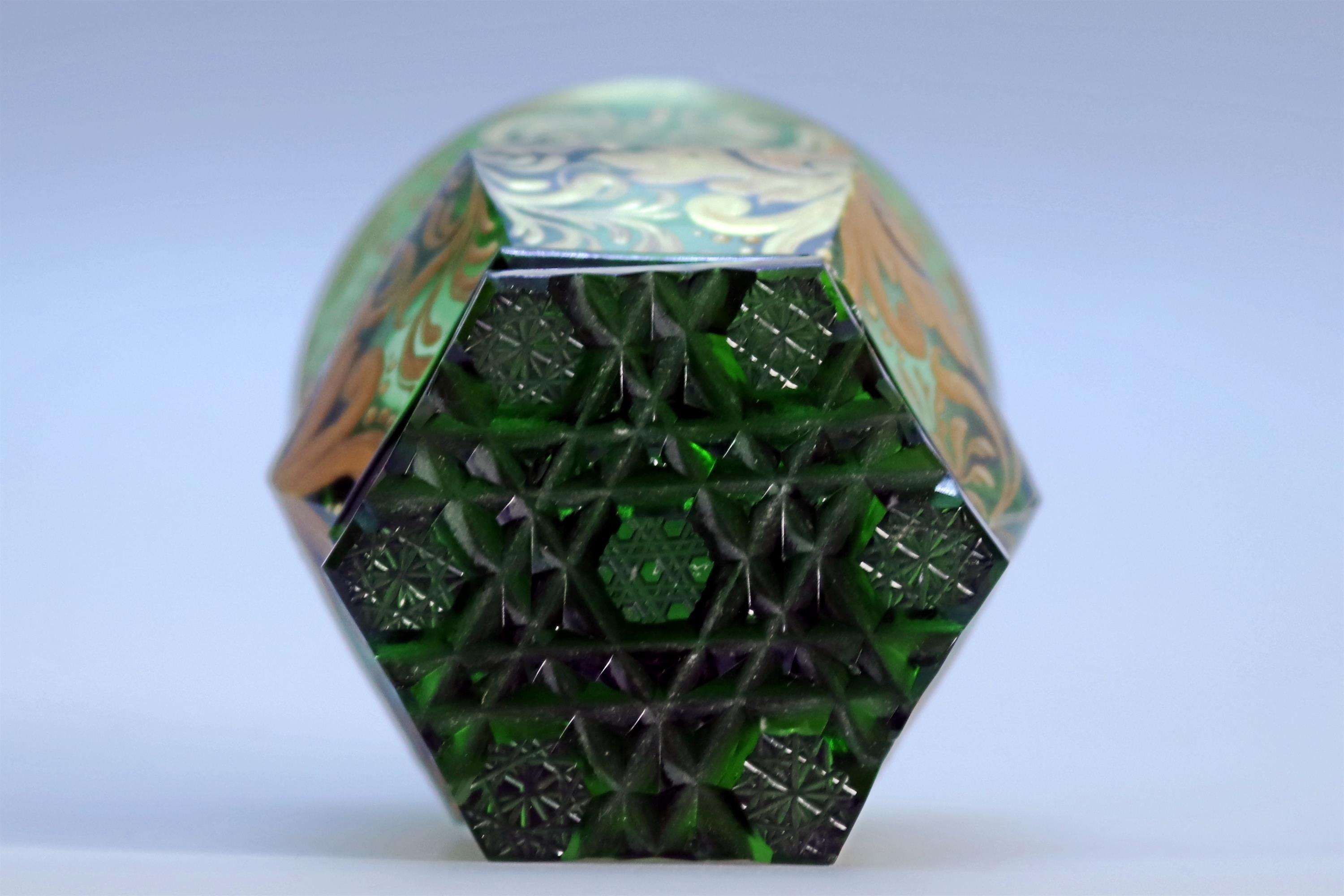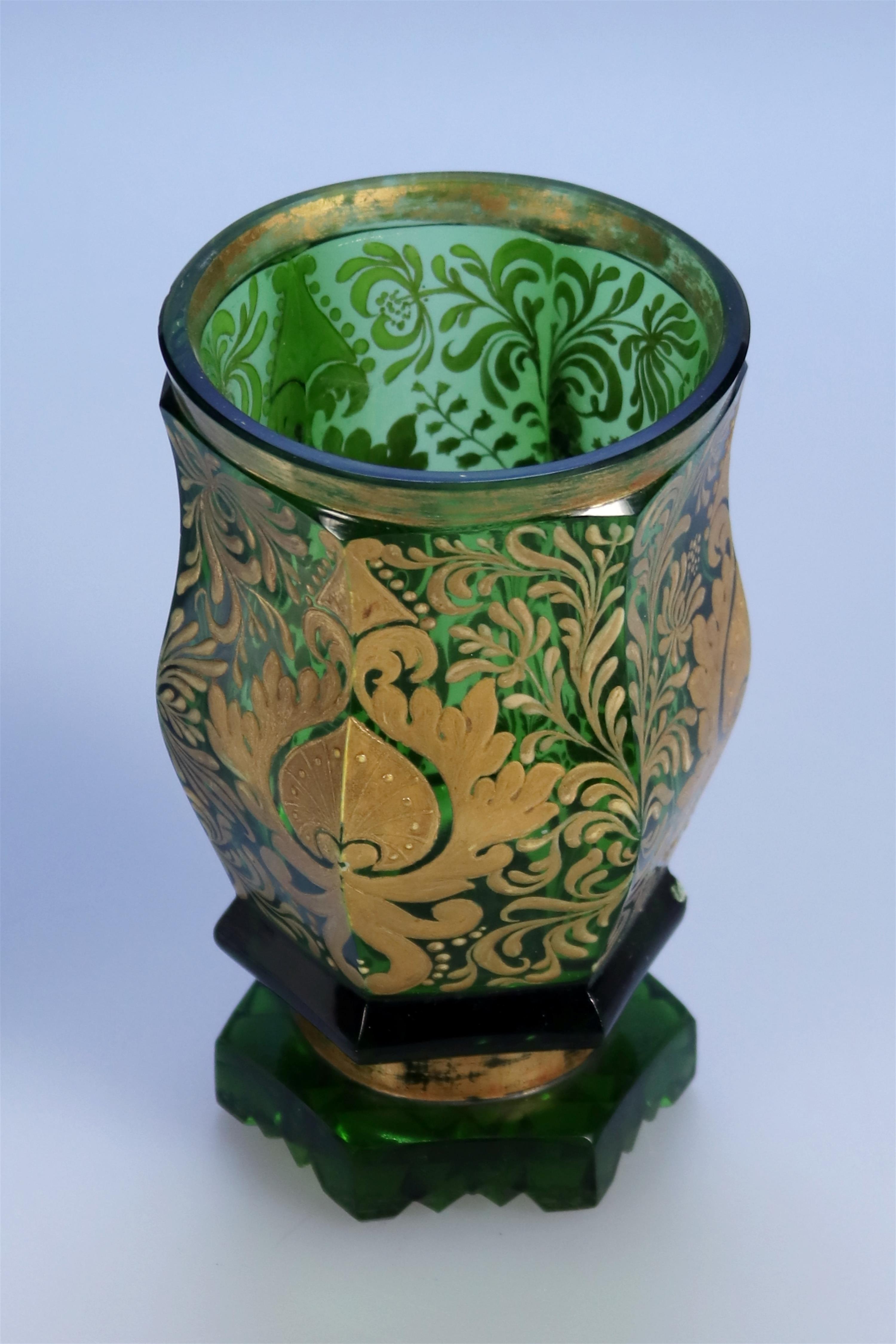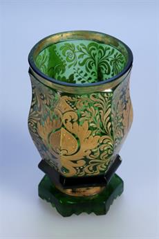 Pohár zdobený zlatou malbou, broušené sklo