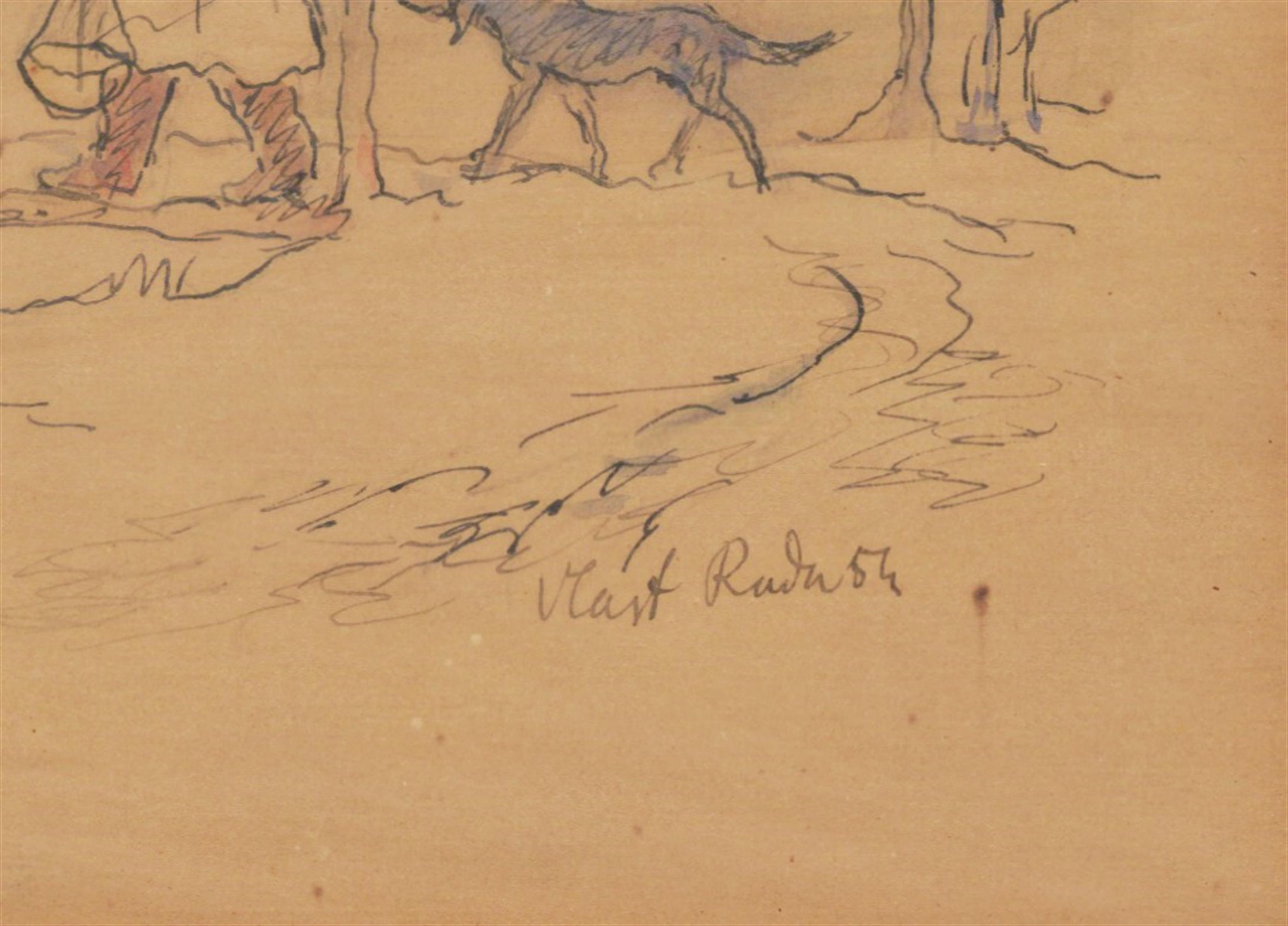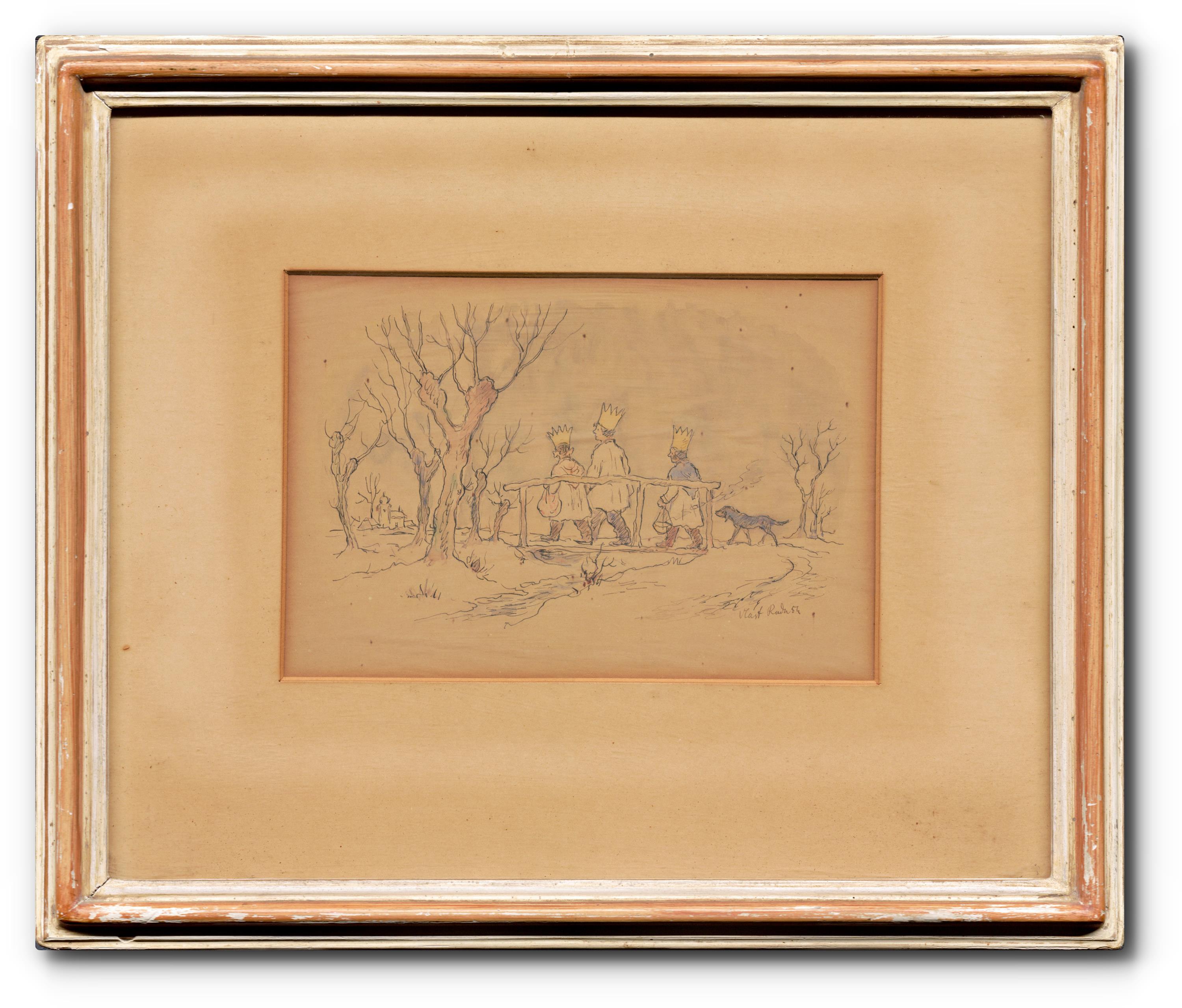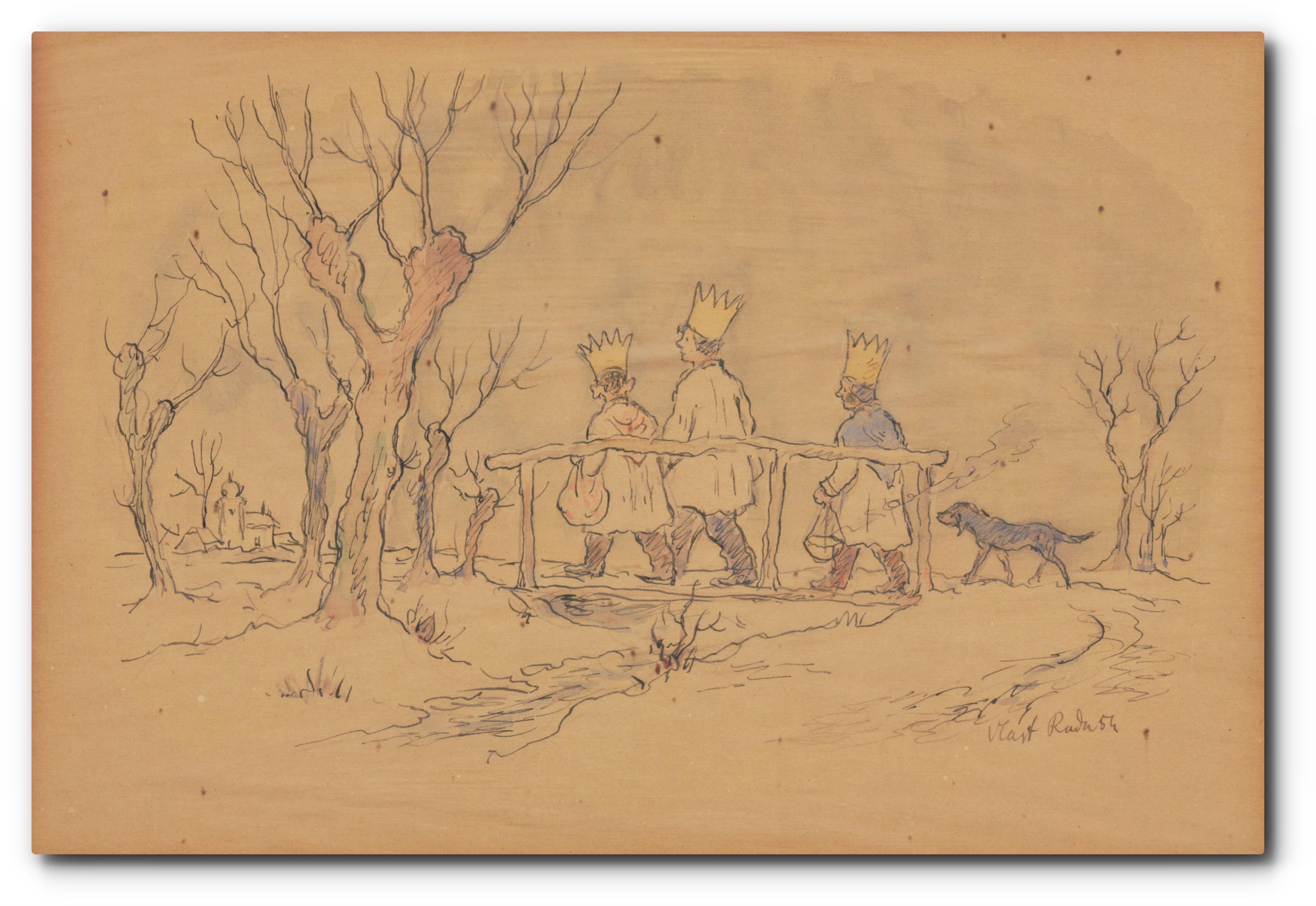 Technika: kombinovaná technika, materiál: perokresba/akvarel, datace: 1954