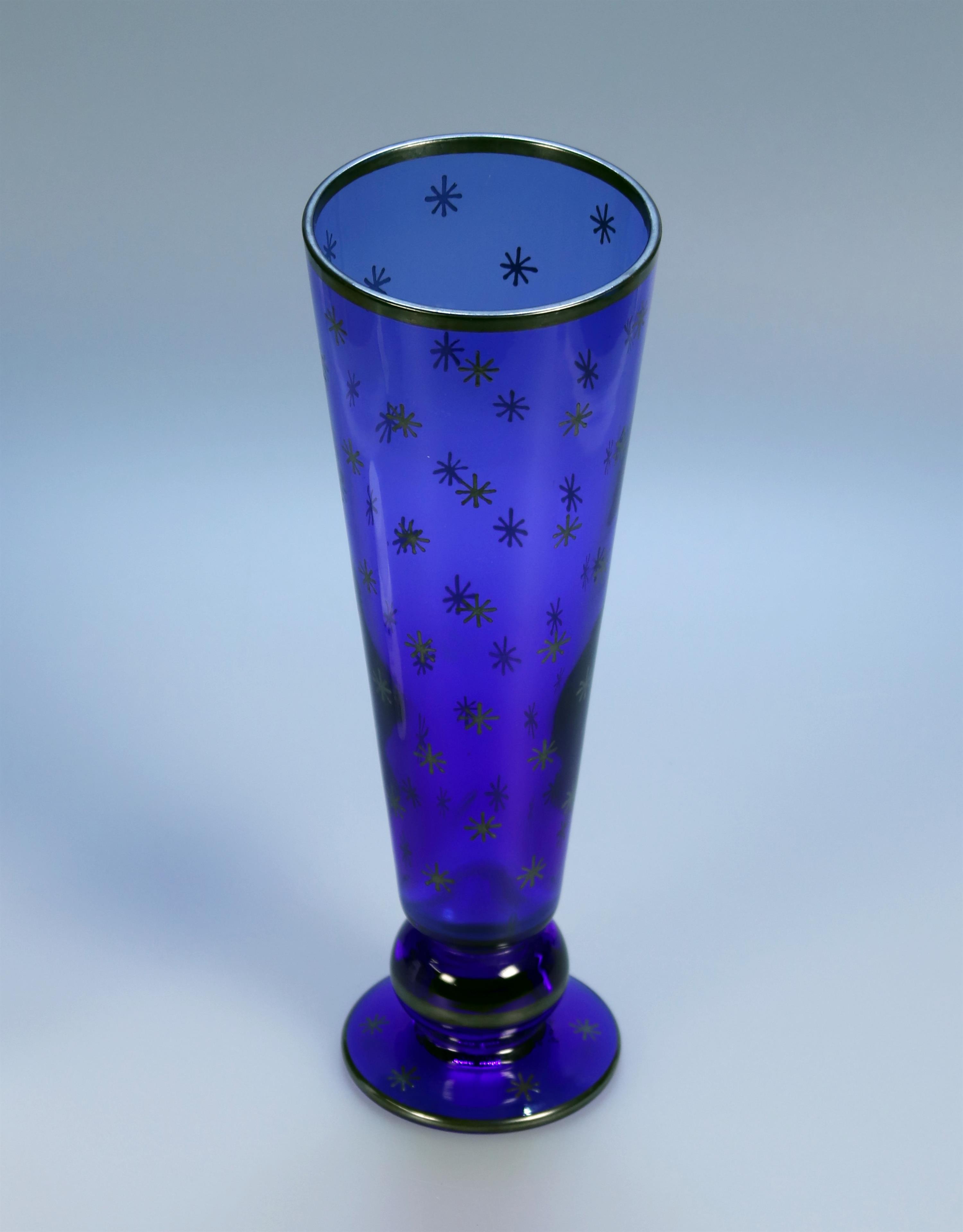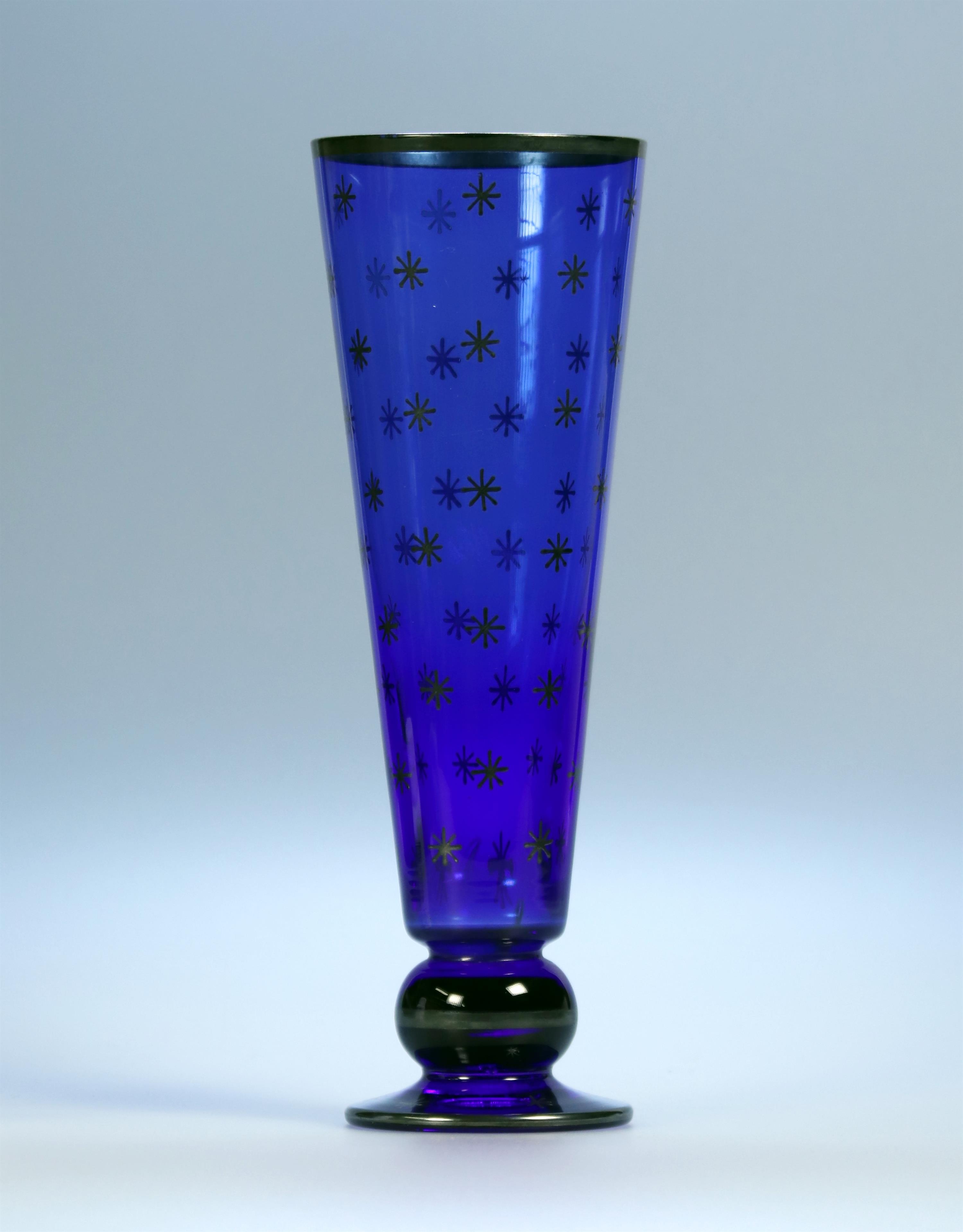 Sklárna Boda, Modré sklo s ozdobou hvězd, signováno zespod