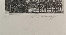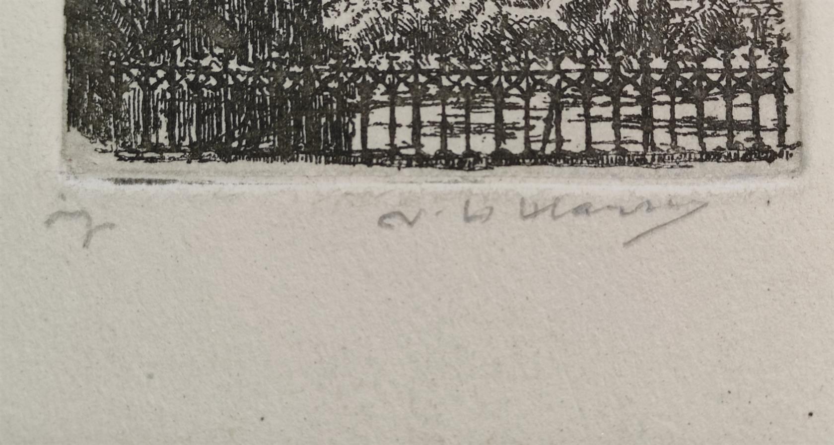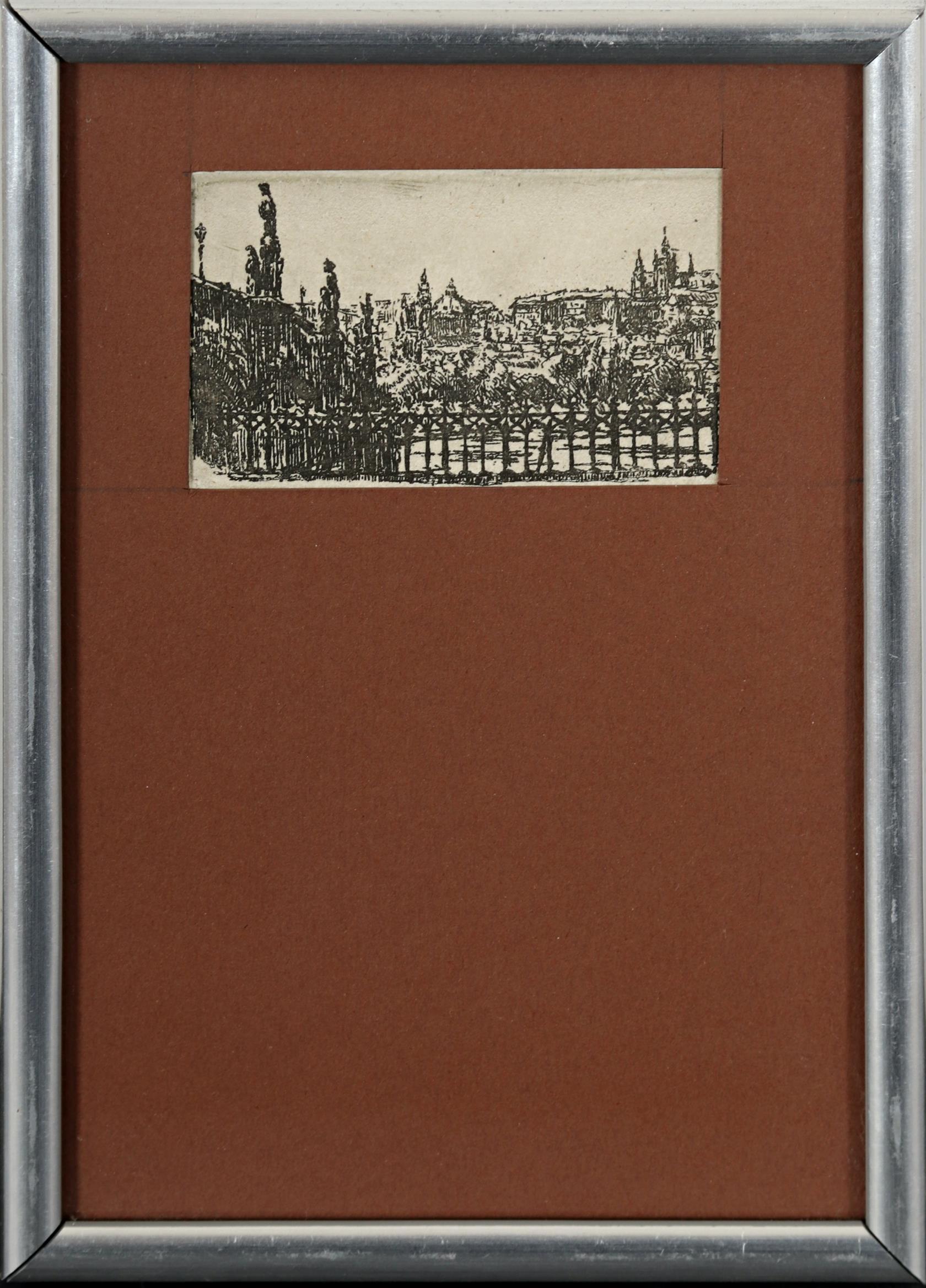 Vlevo dole pod paspartou je tužkou text orig. Signováno vpravo dole pod paspartou, paspartováno, zaskleno, rámováno