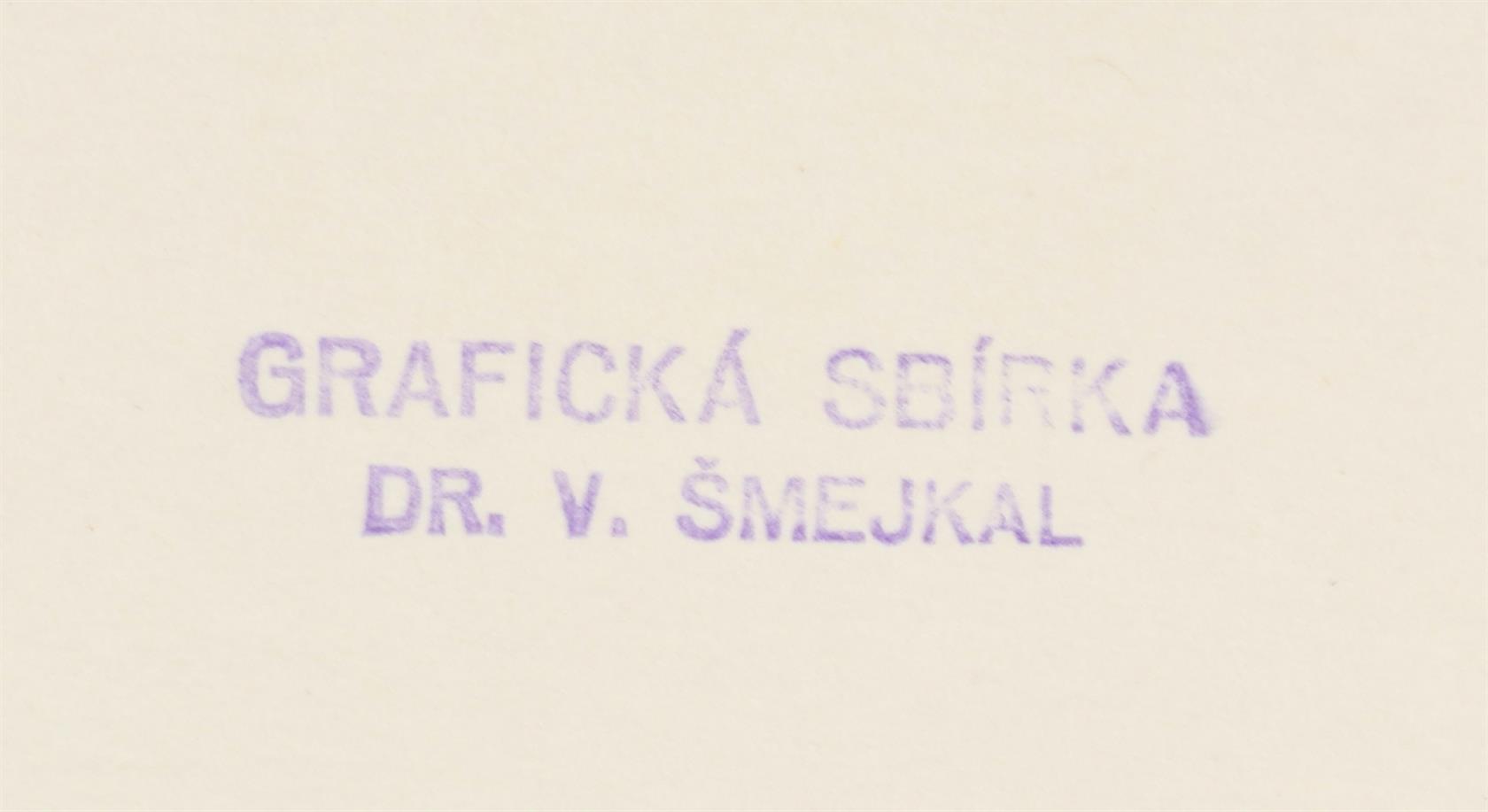 signováno vpravo dole, na reversu razítko: Grafická sbírka Dr. V. Šmejkala, volný list