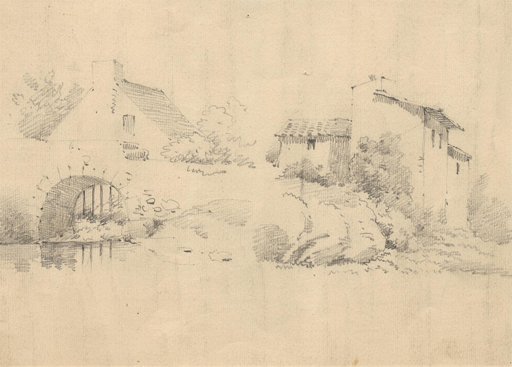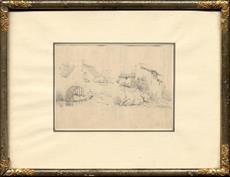 kresba tužkou, určeno přípisem na reversu, paspartovano, zaskleno