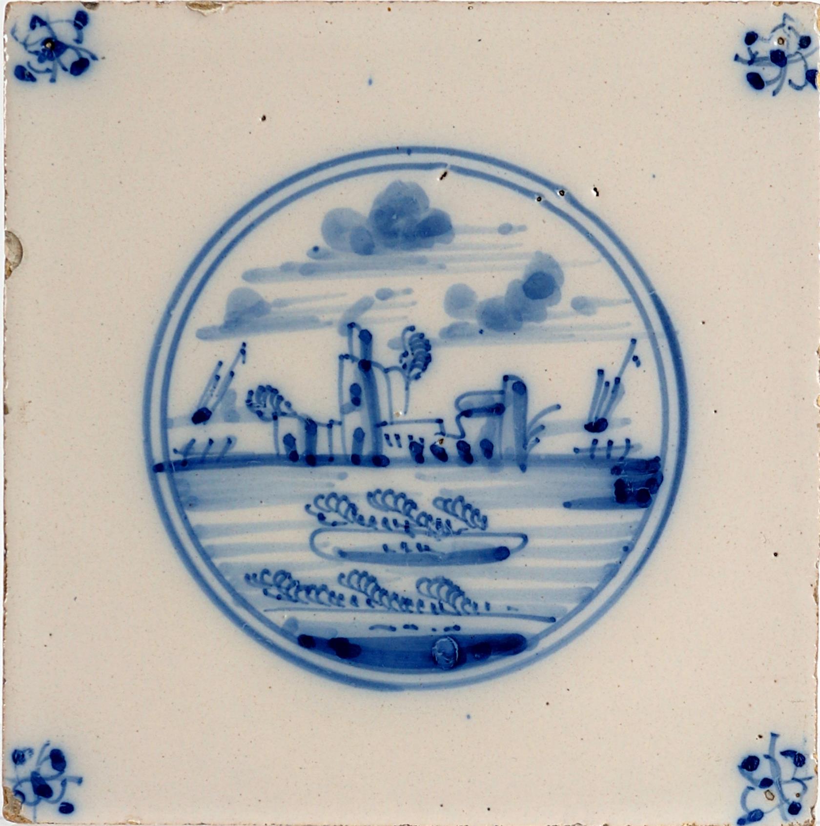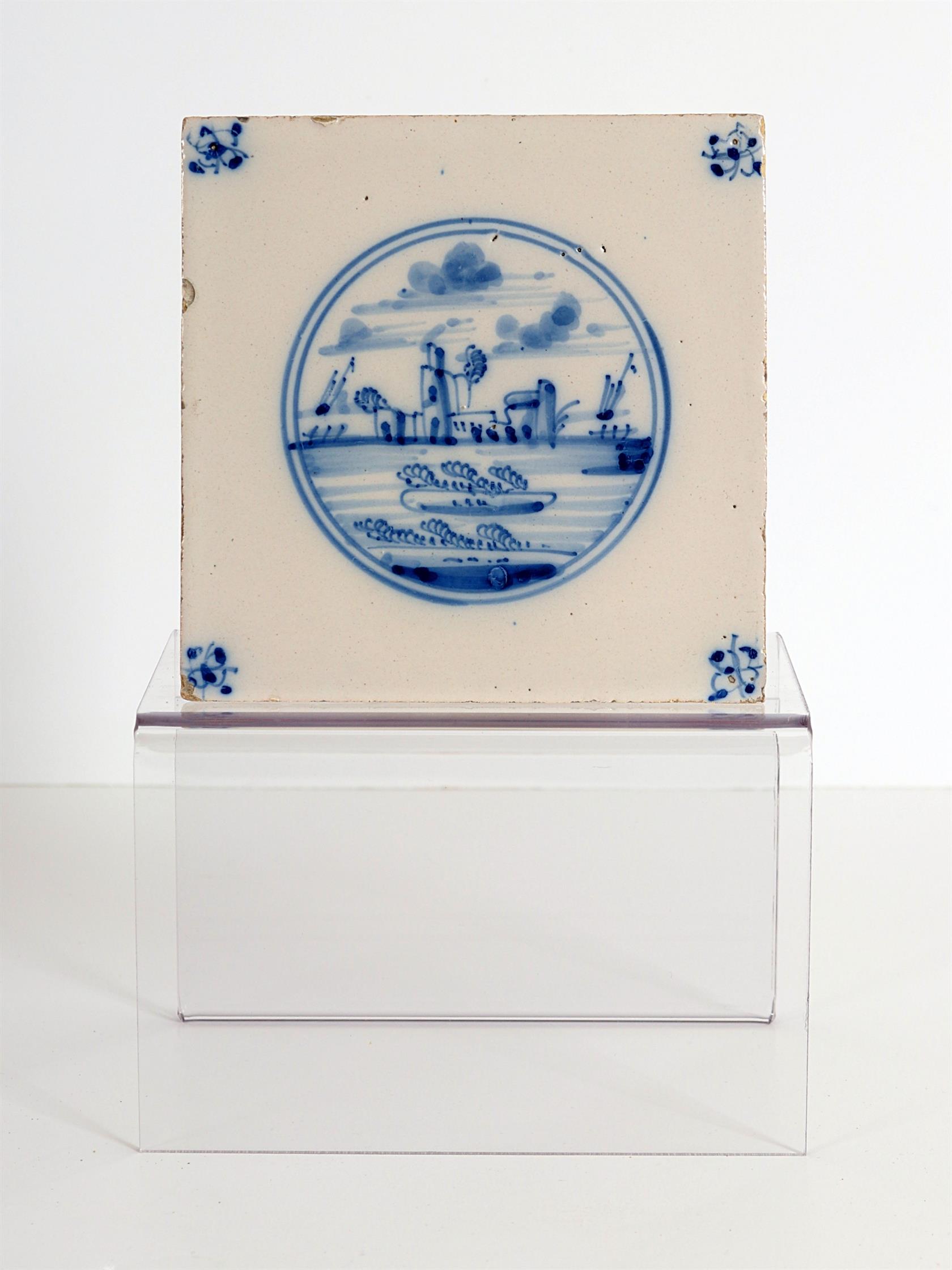 fajánský kachel, modrobílá ruční malba, původ: Delft, Holandsko, 18. století