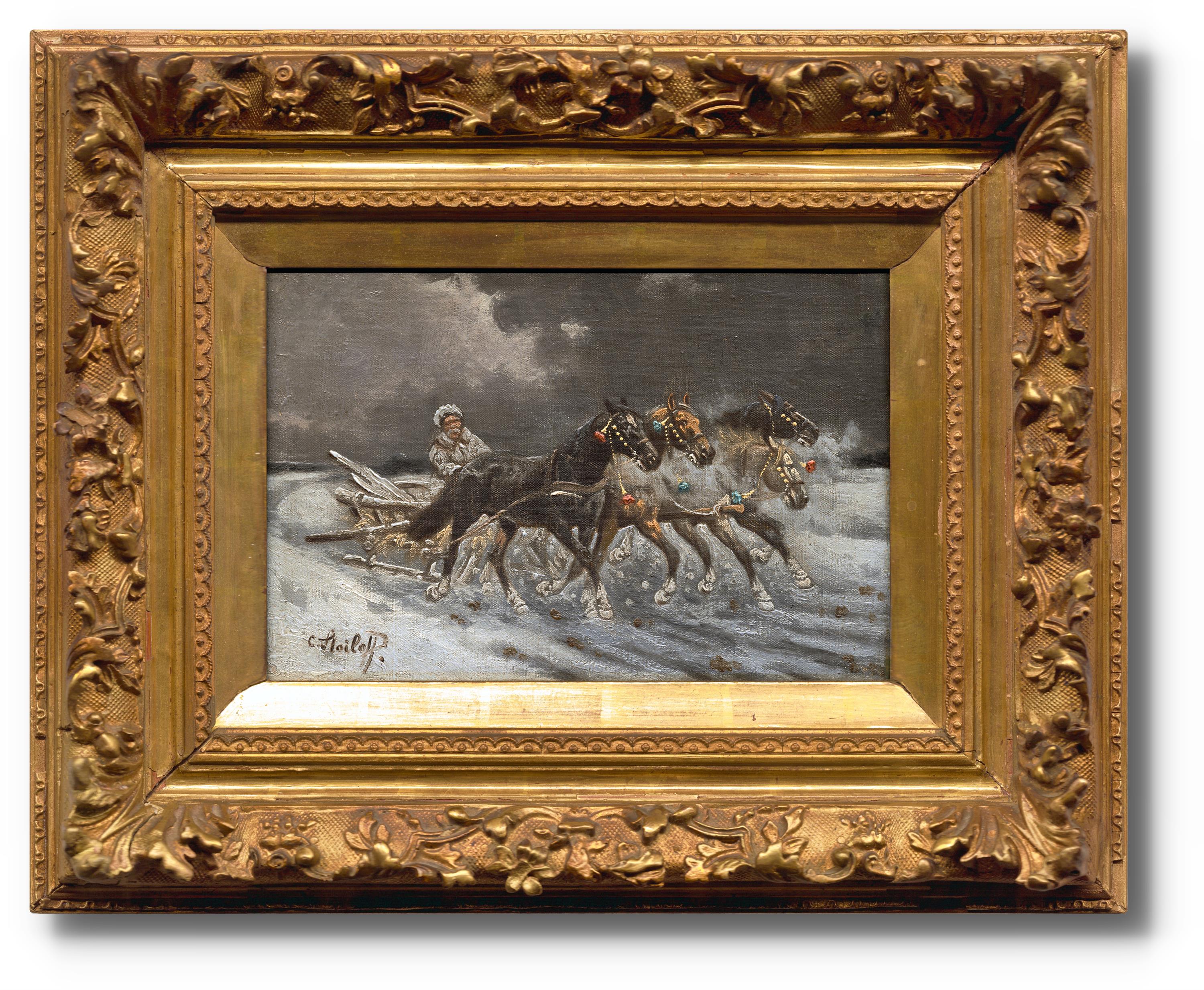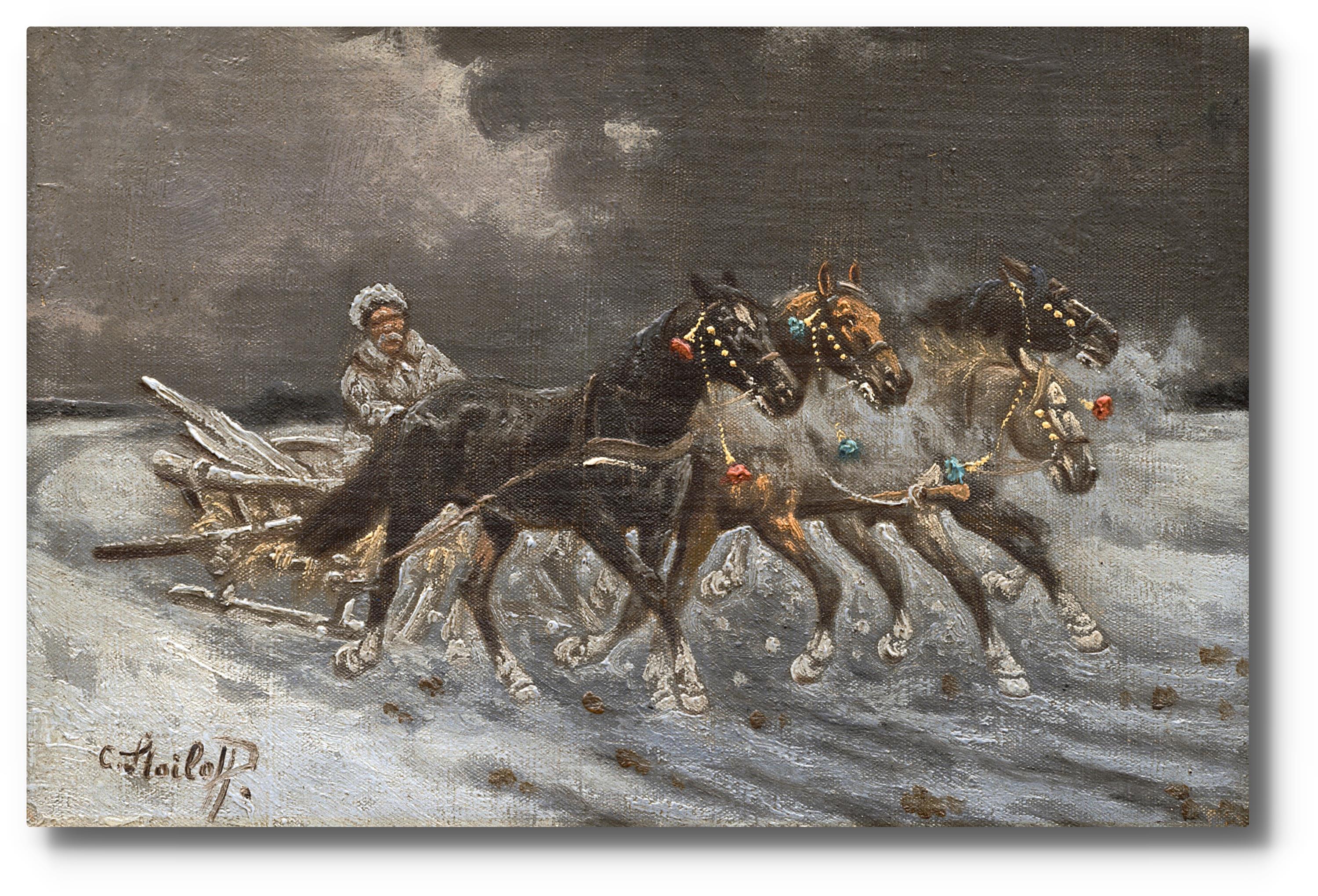 Čtyřspřeží v zasněžené krajině