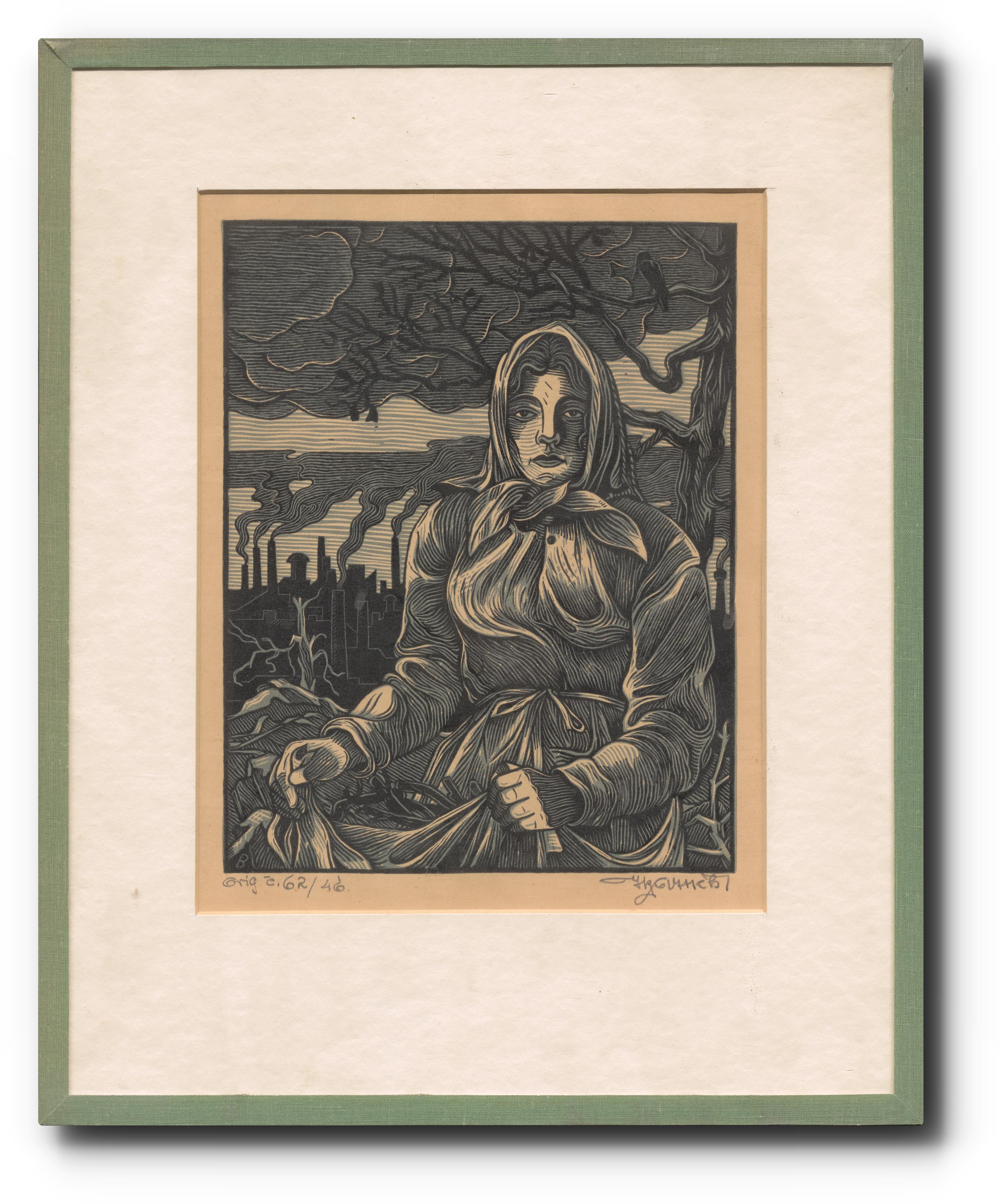 Signováno tužkou vpravo dole, značeno 62/46, paspartováno, zaskleno a rámováno.
