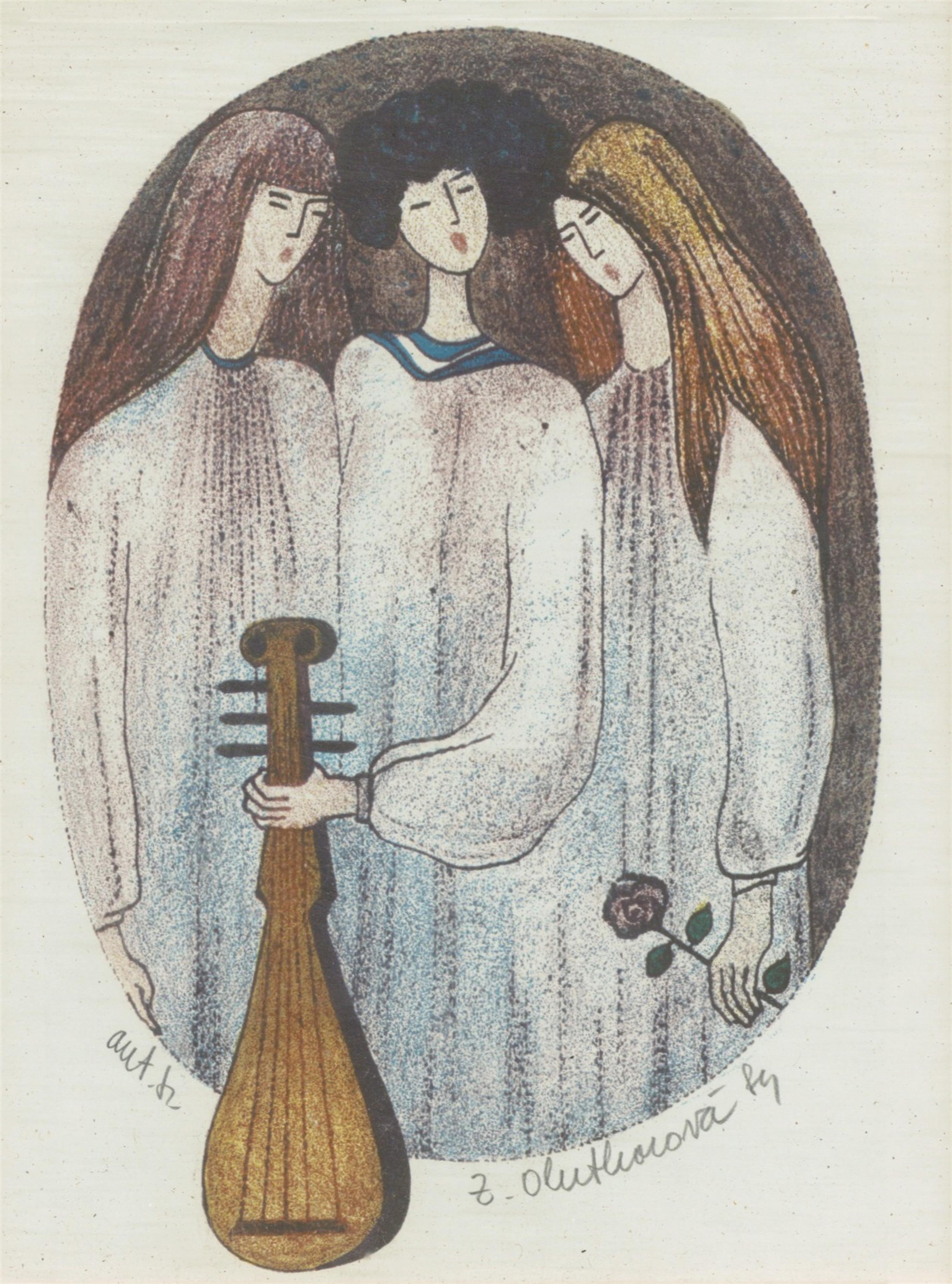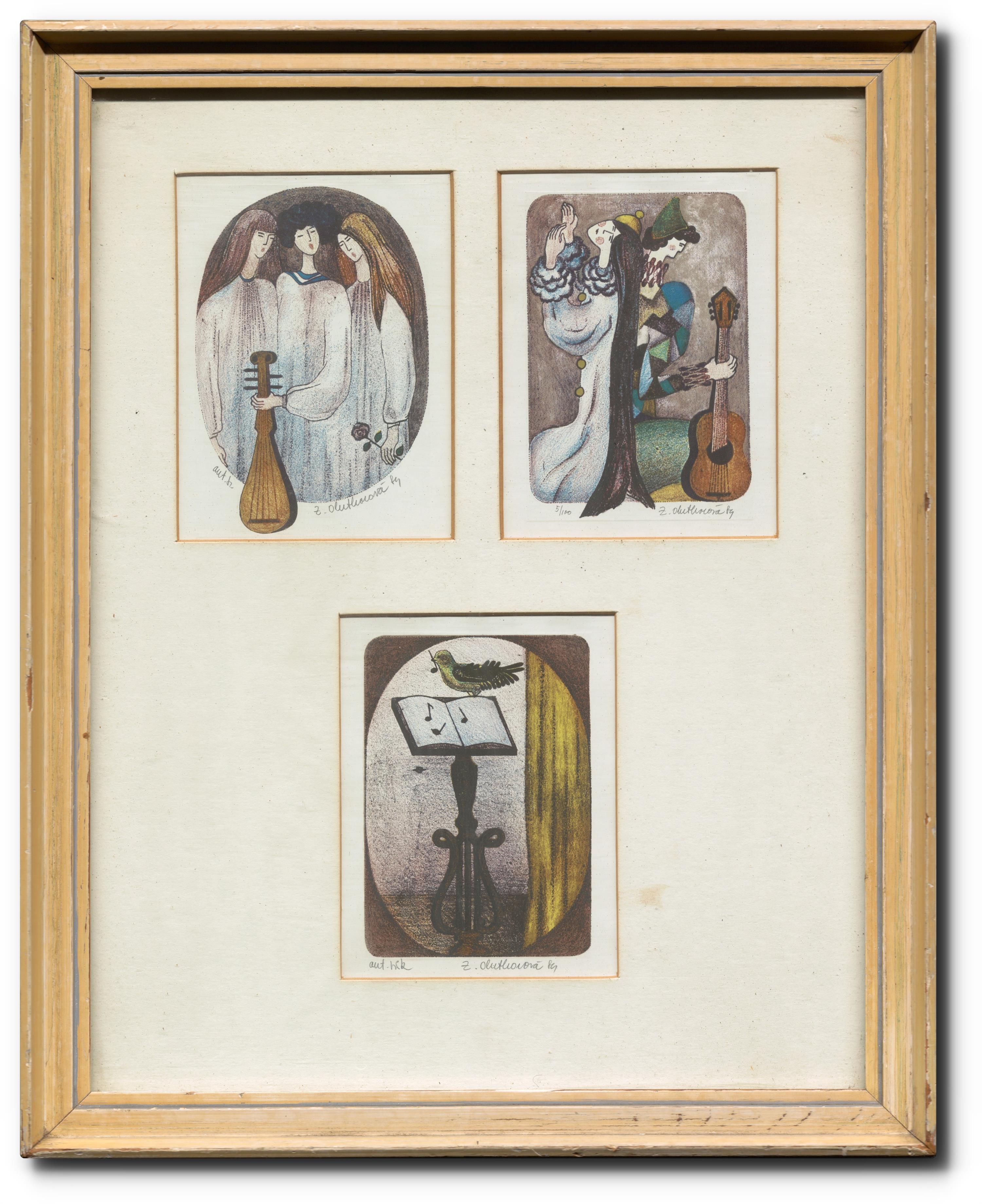 tři kusy litografií, paspartováno, zaskleno, na reverzu autorský štítek, rámováno