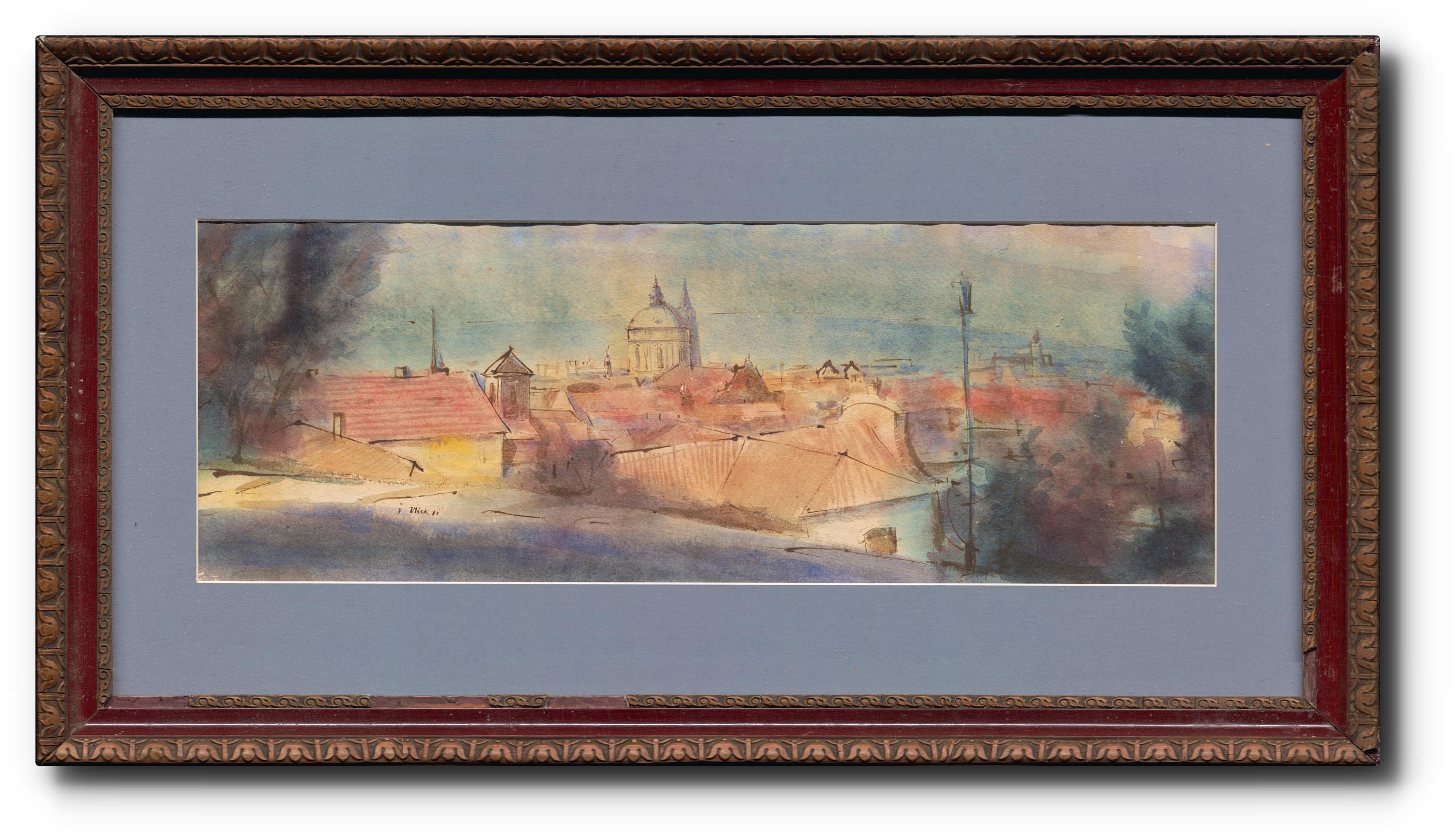 Signováno a datováno vlevo dole, paspartováno, zaskleno a rámováno.