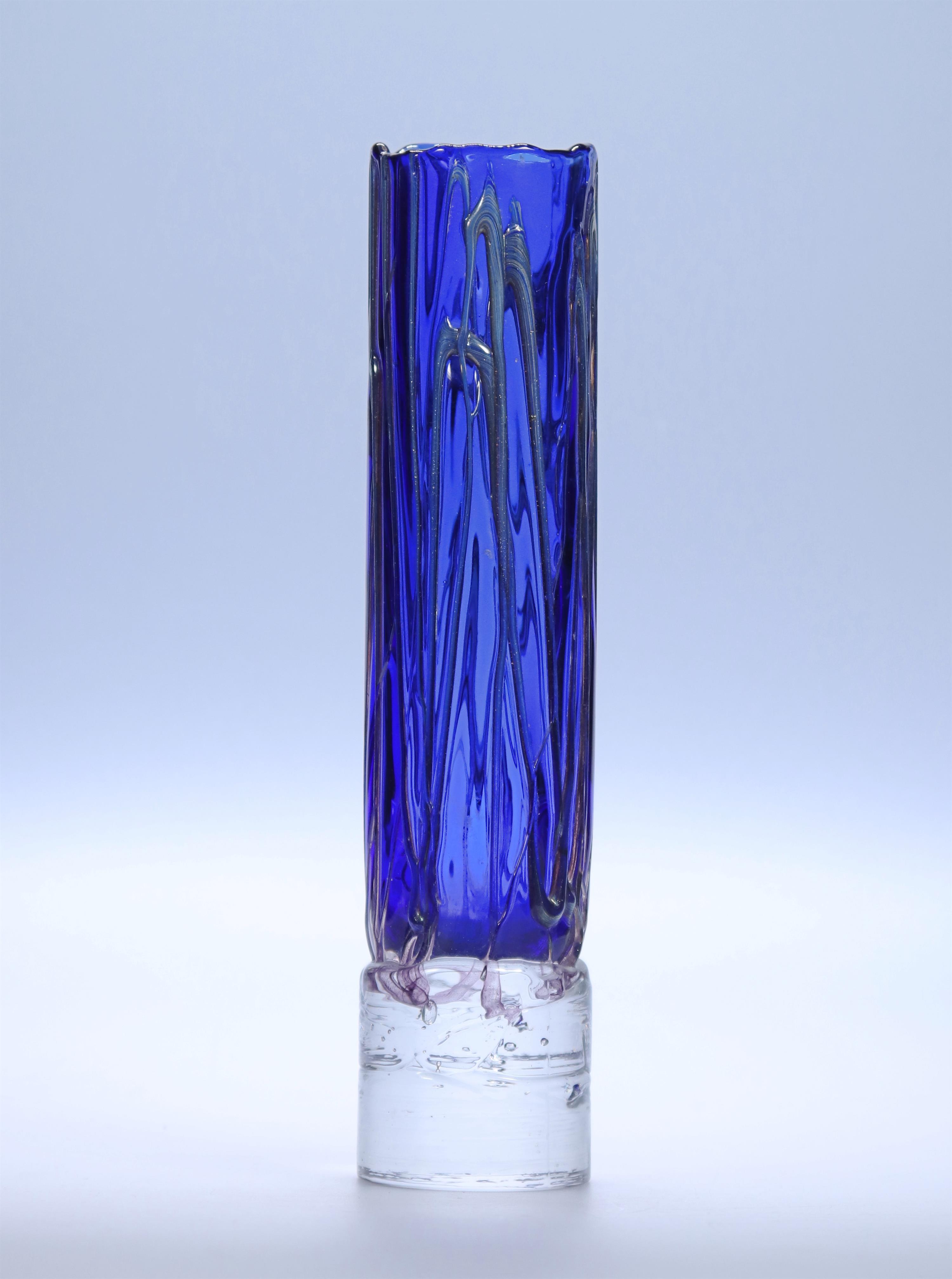 Křišťálové, kobaltově modré a stříbřité, hutně tvarované sklo Autor modelu : Jiří Beránek ( nar. 1954 ) , Glass atelier Beránek