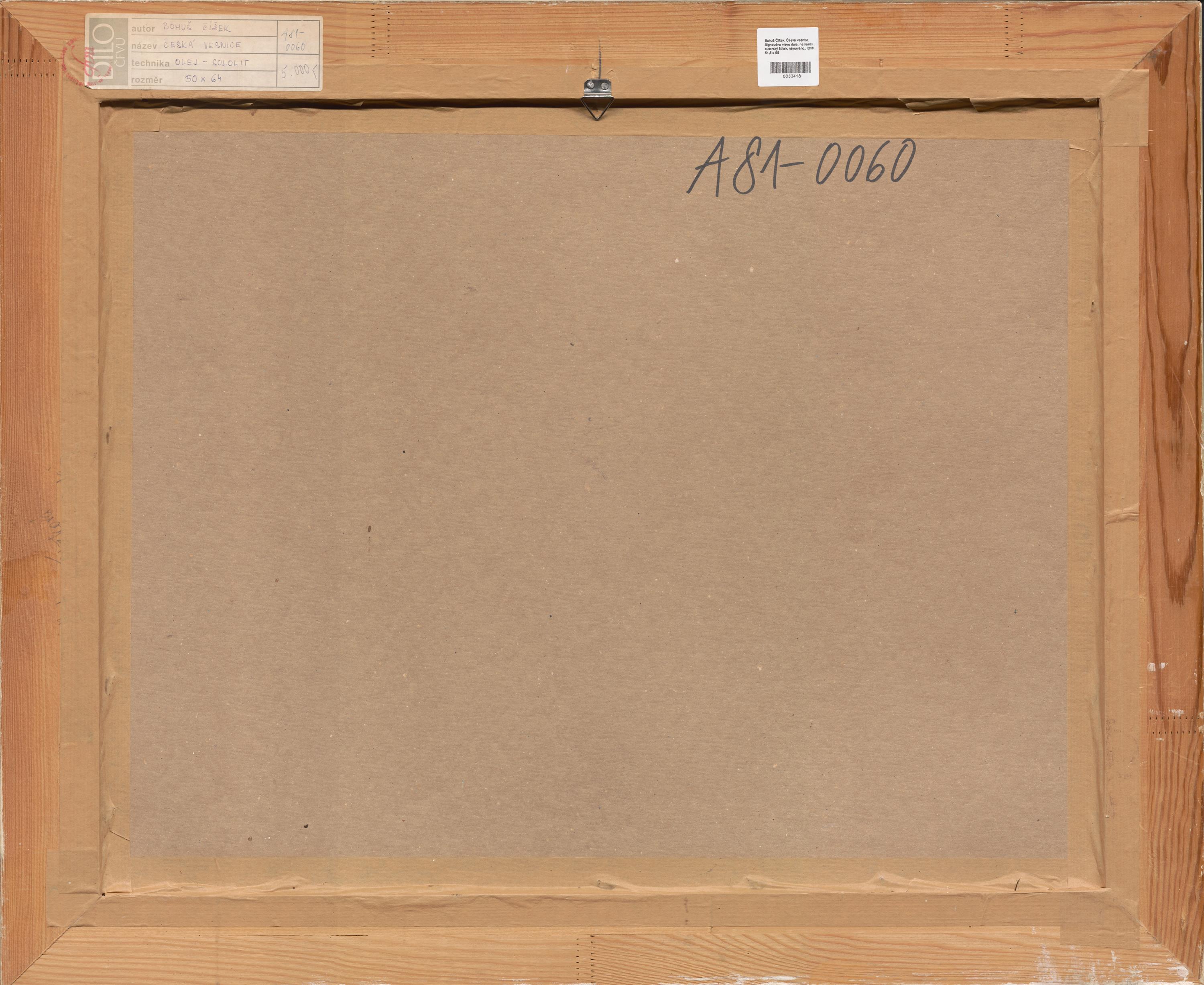 Signováno vlevo dole, na reversu autorský štítek, rámováno.
