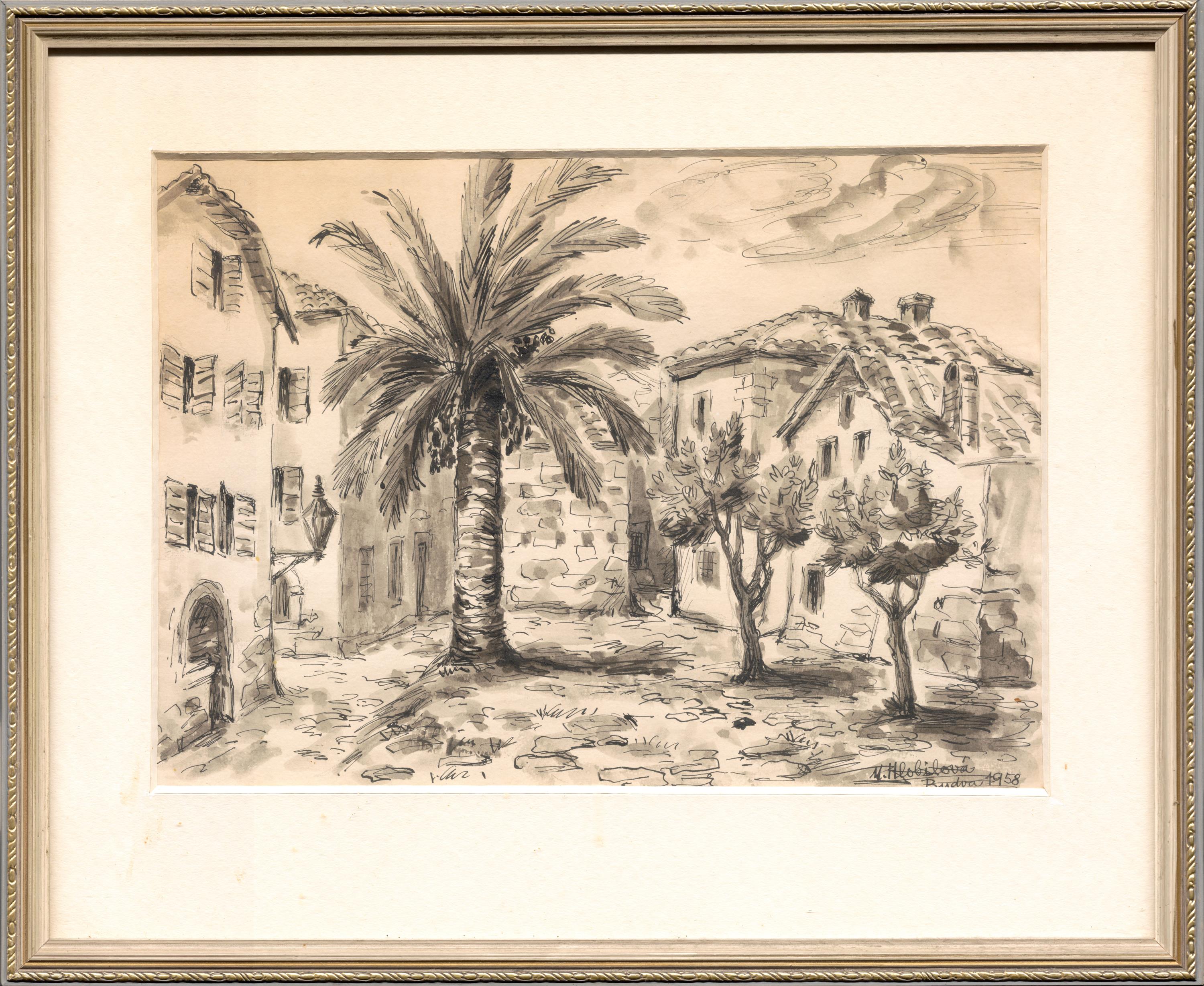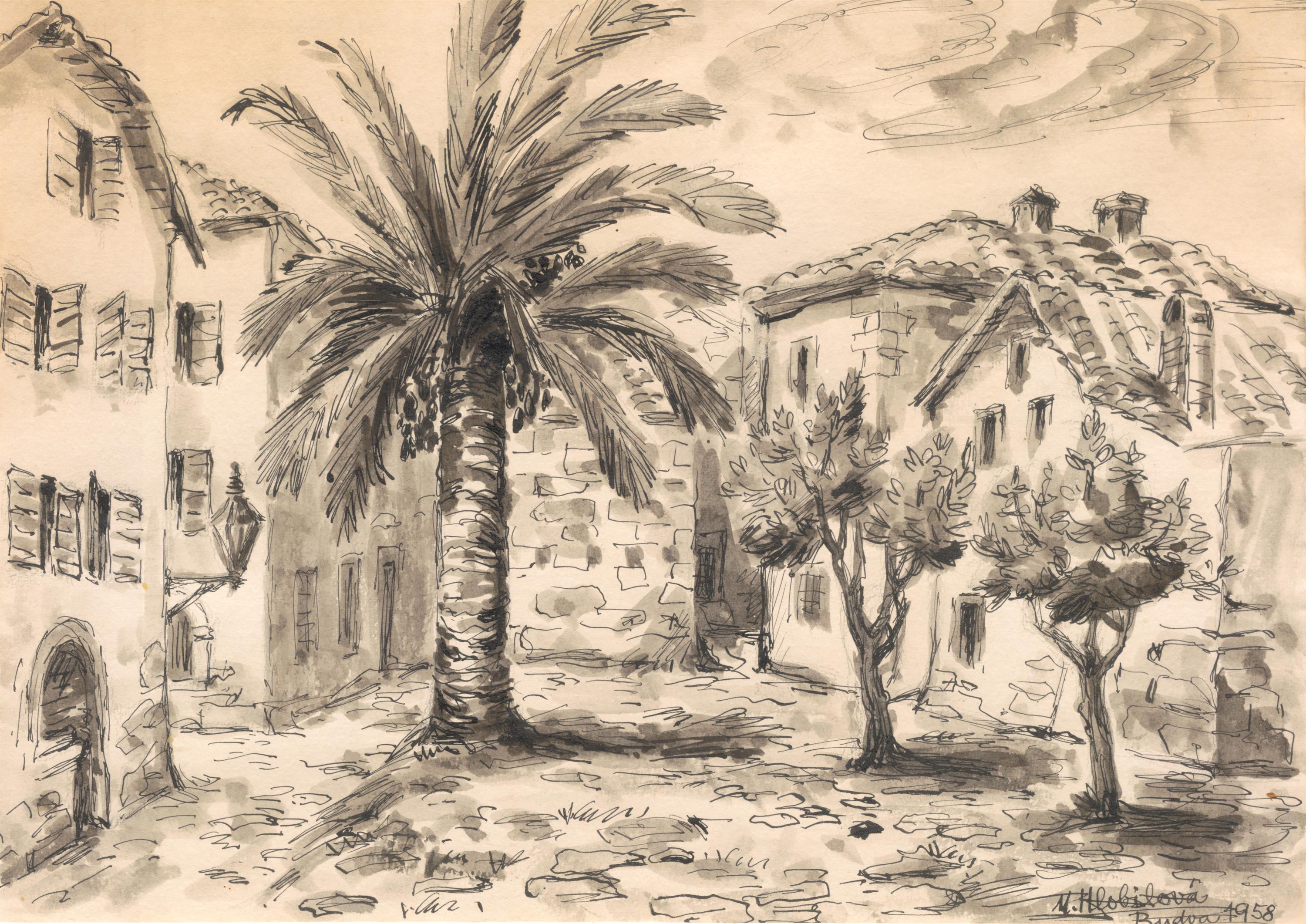 Technika: tuš, datace: 1958