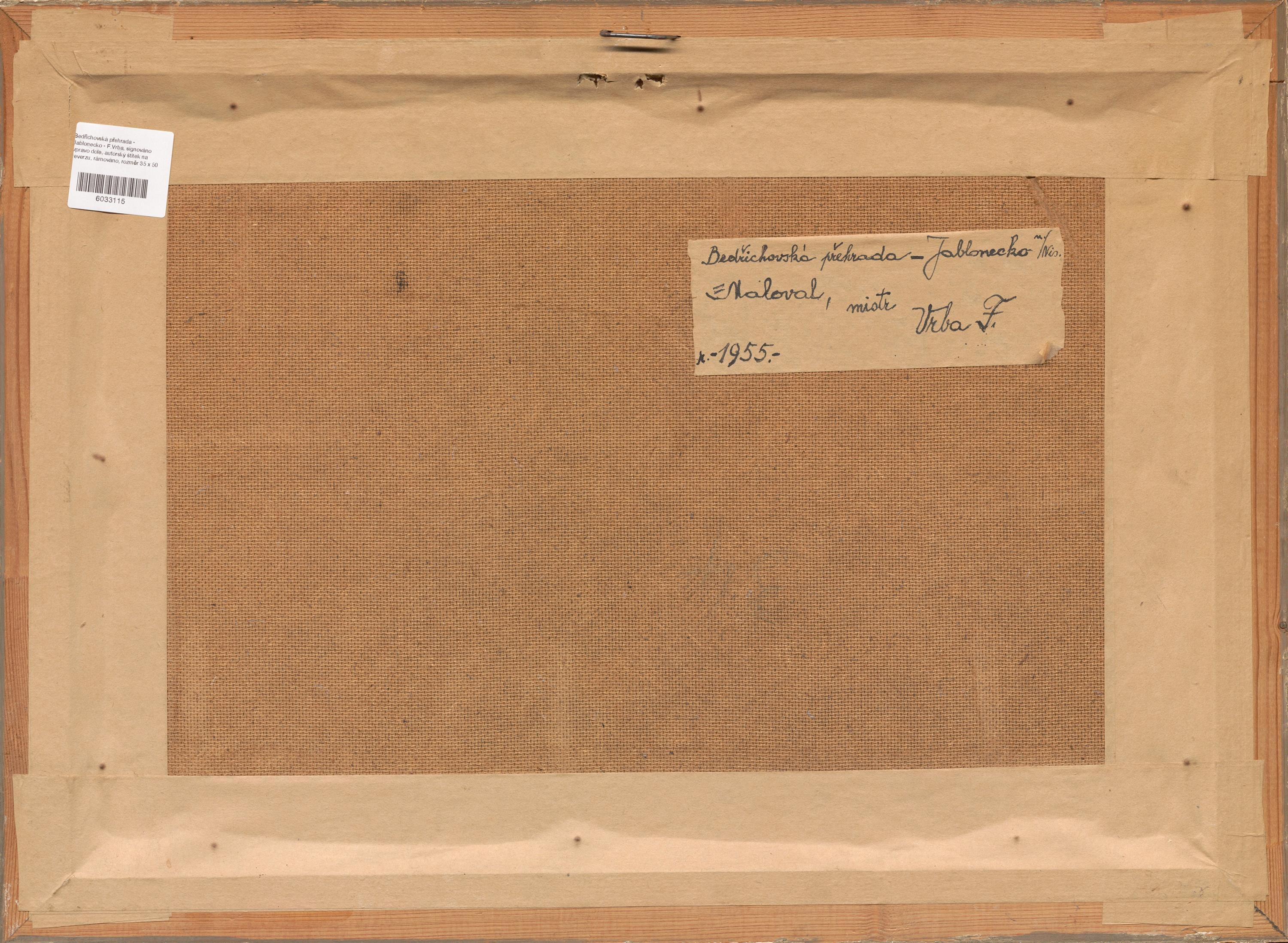 signováno vpravo dole, autorský štítek na reverzu, rámováno