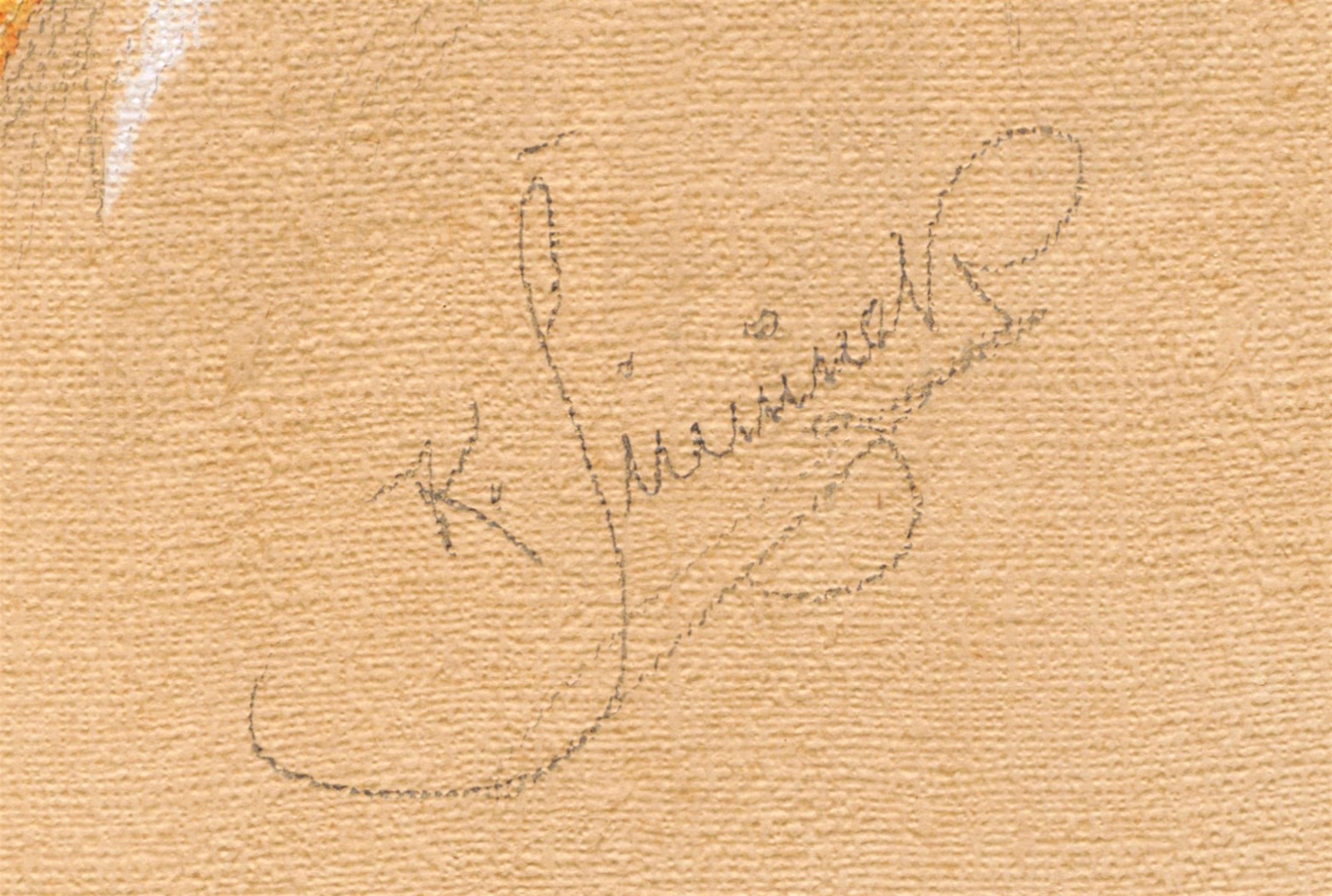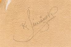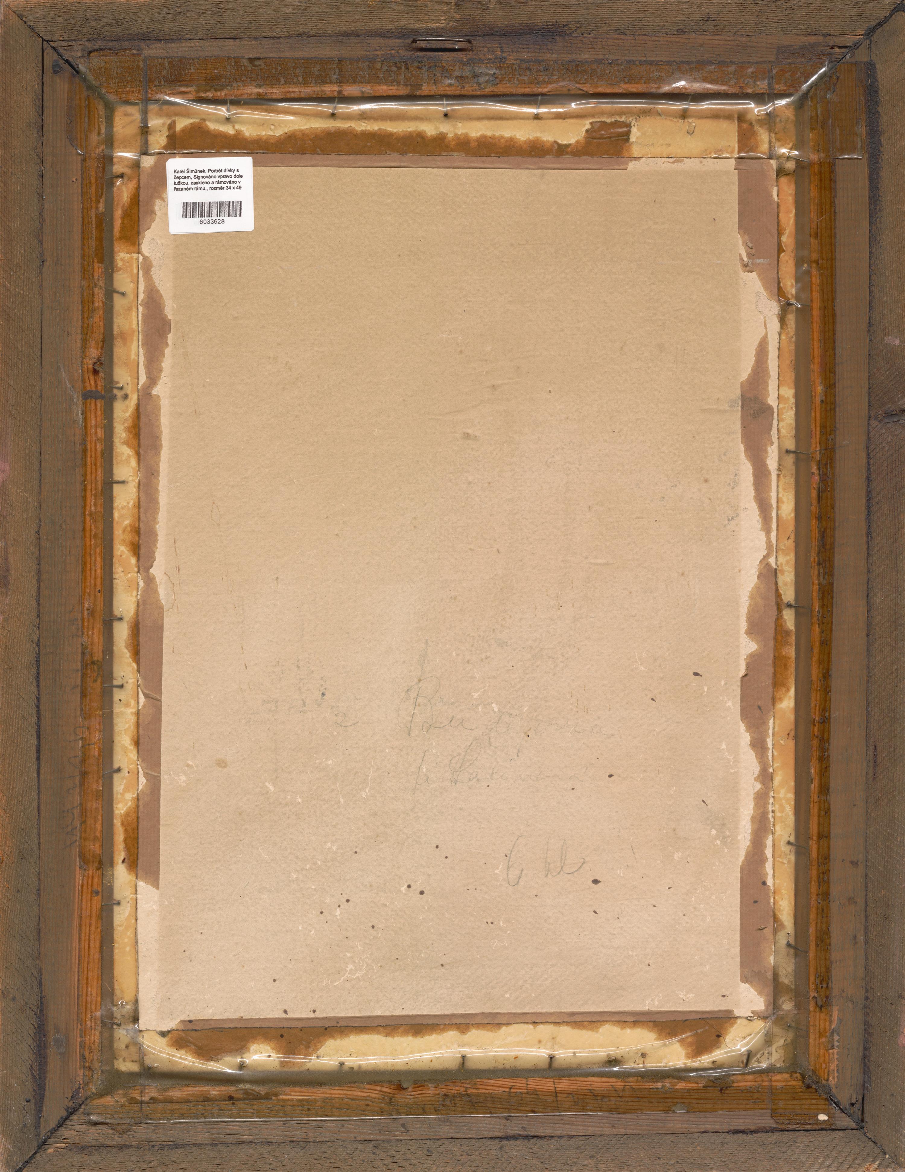 Signováno vpravo dole tužkou, zaskleno a rámováno v řezaném rámu.
