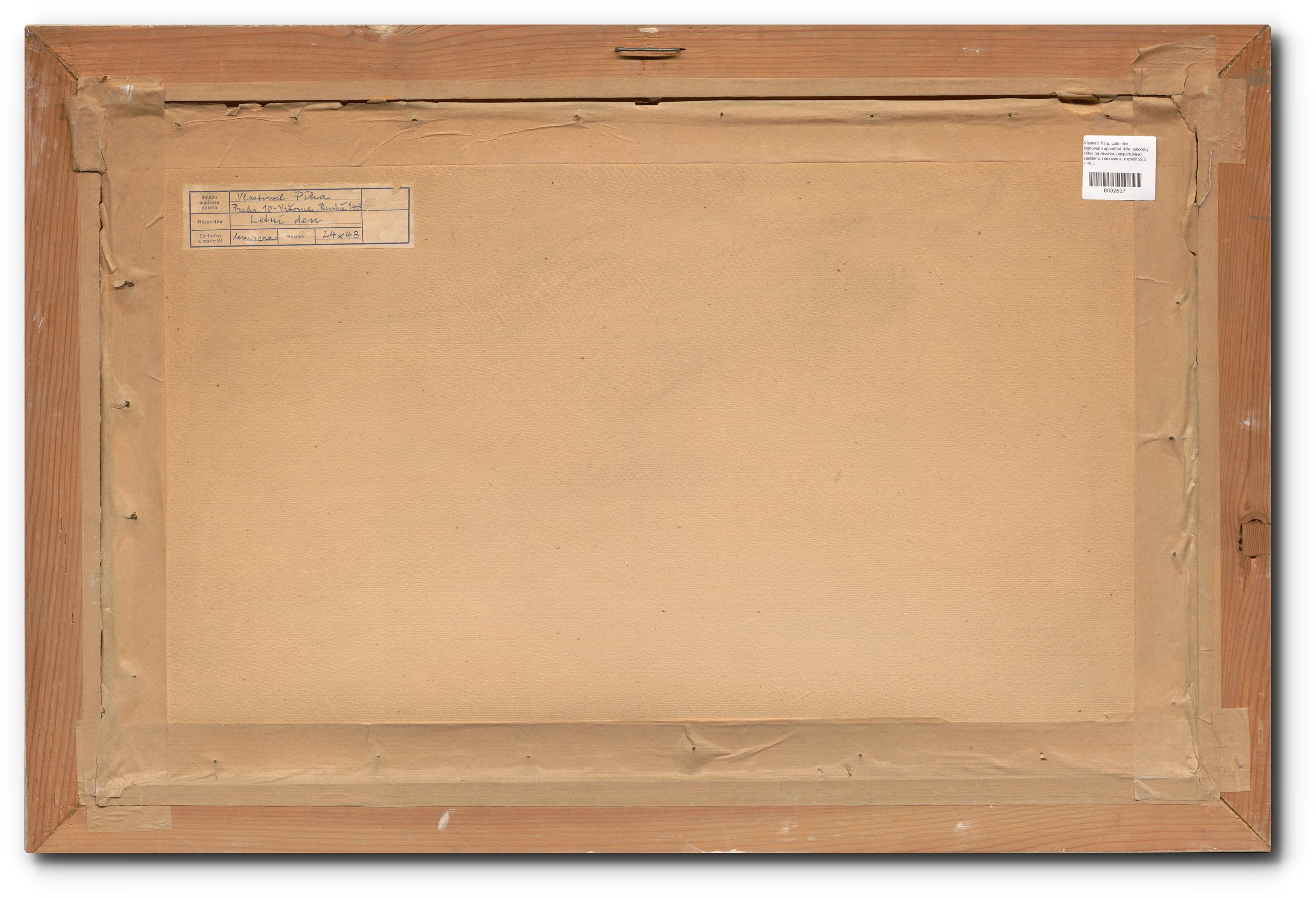 signováno uprostřed dole, autorský štítek na reverzu, paspartováno, zaskleno, rámováno