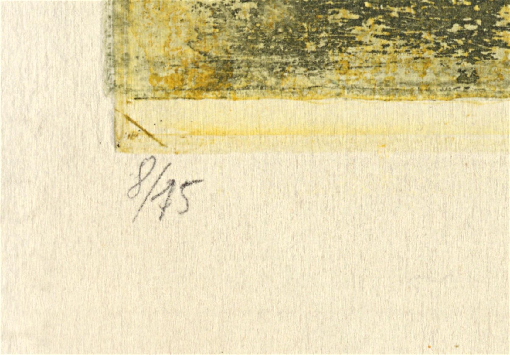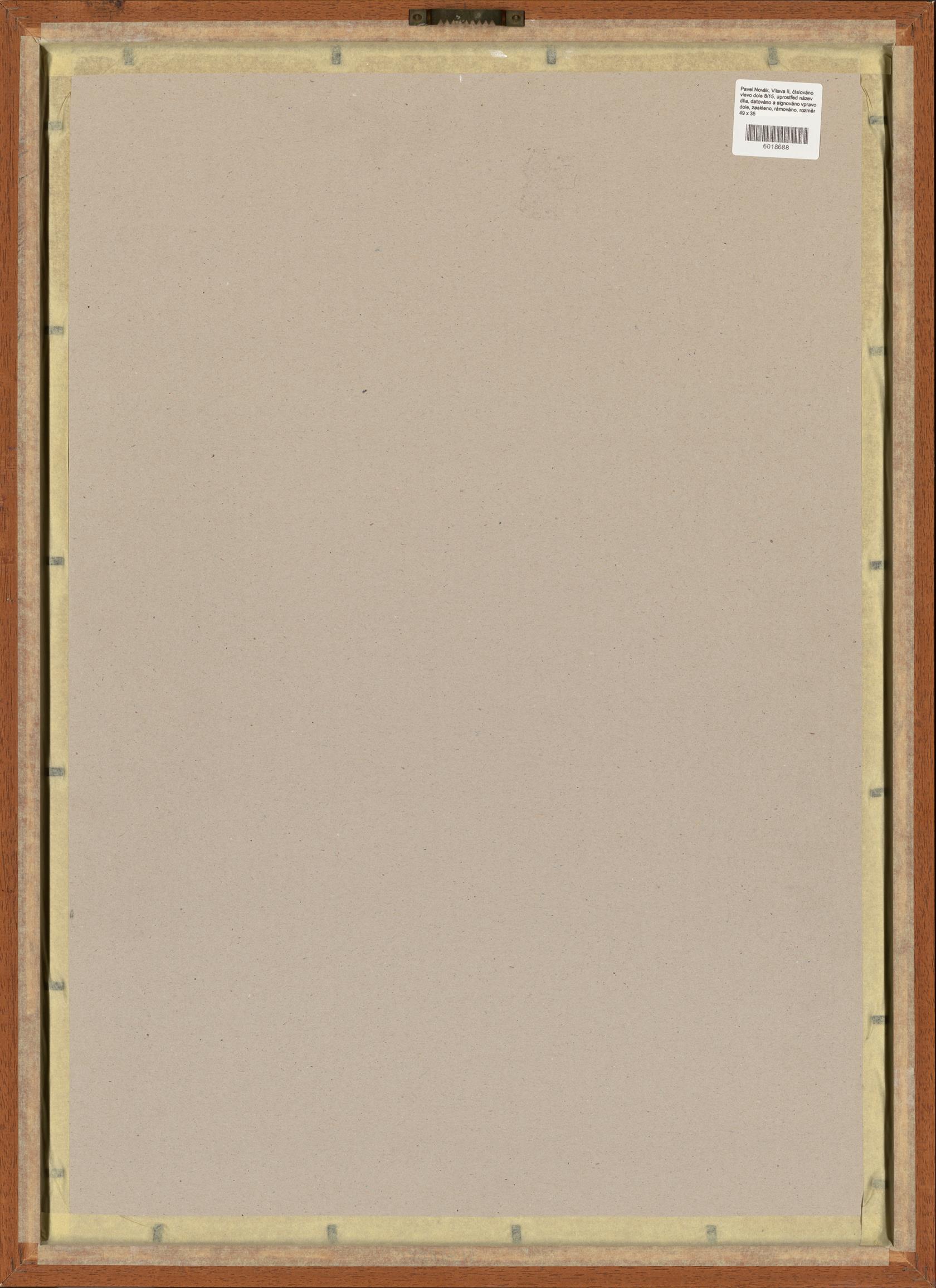 číslováno vlevo dole 8/15, uprostřed název díla, datováno a signováno vpravo dole, zaskleno, rámováno